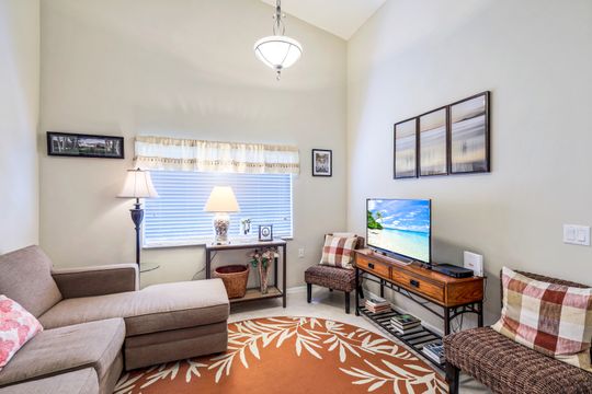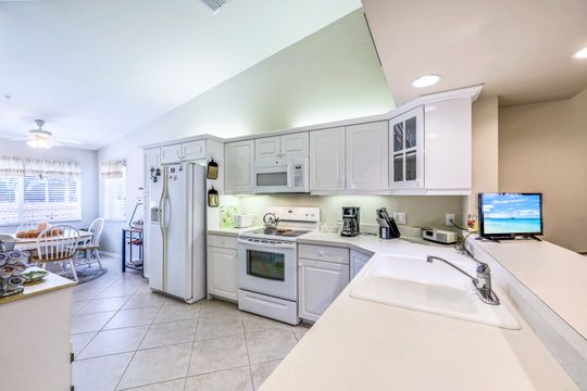 Sensational second floor 3-bedroom end-unit. Cathedral ceilings, Tiled, Excellent view of Lake & Fountains, Great Community.