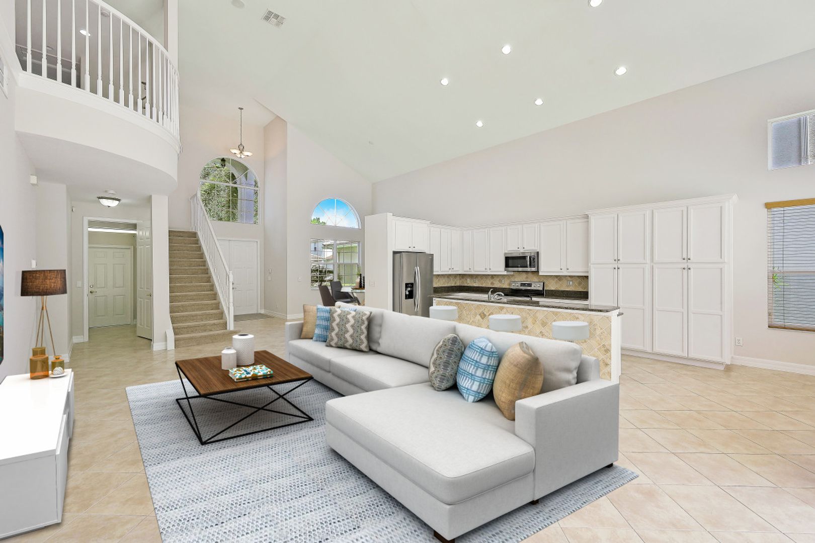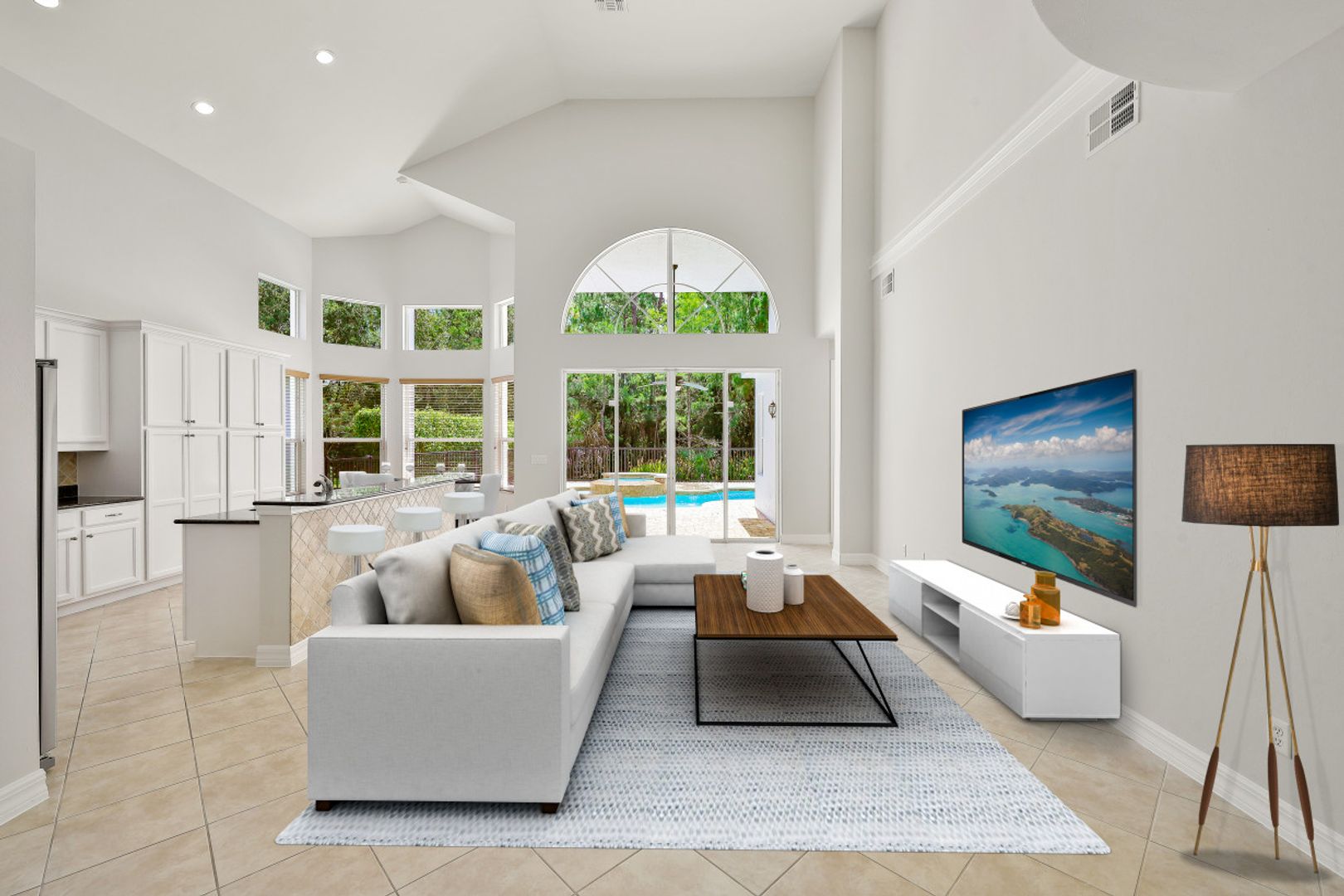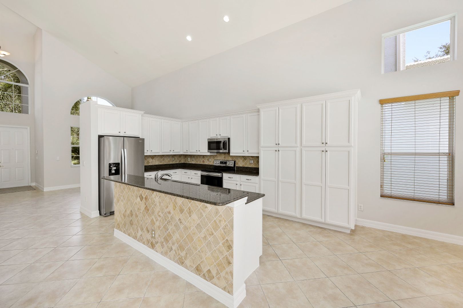 PRIME NORTH NAPLES LOCATION! This impressive "Ibis" is an entertainer's dream home with 20' vaulted ceilings and open & airy great room style floorplan with 5 Bedrooms, 3 full baths, 2 car garage, and 2735 Sq Ft under air. The master suite is on the ground floor along with an additional bedroom and full bath. Enjoy the Florida sun around the custom heated pool/spa/sunshelf or al fresco dining under the covered lanai area. A long list of special features include: NEW ROOF (2022); fresh interior and exterior paint (2022); NEW HVAC (2021); New refrigerator and dishwasher (2021); new pool motor (2022); new bath light fixtures; and more! "Club at Saturnia Grande" offers resort pool, hot tub, lap pool, kiddie pool, saunas, fitness center, billiards room, ball room, 4 tennis courts, basketball court, and more! HOA fees include landscaping, irrigation water & system maintenance, clubhouse amenities, two security gates, alarm monitoring, cable TV, internet (fiber optics), and phone for just $507/month! A RATED SCHOOLS - Laurel Oak Elem, Oakridge Middle, Gulf Coast HS.
