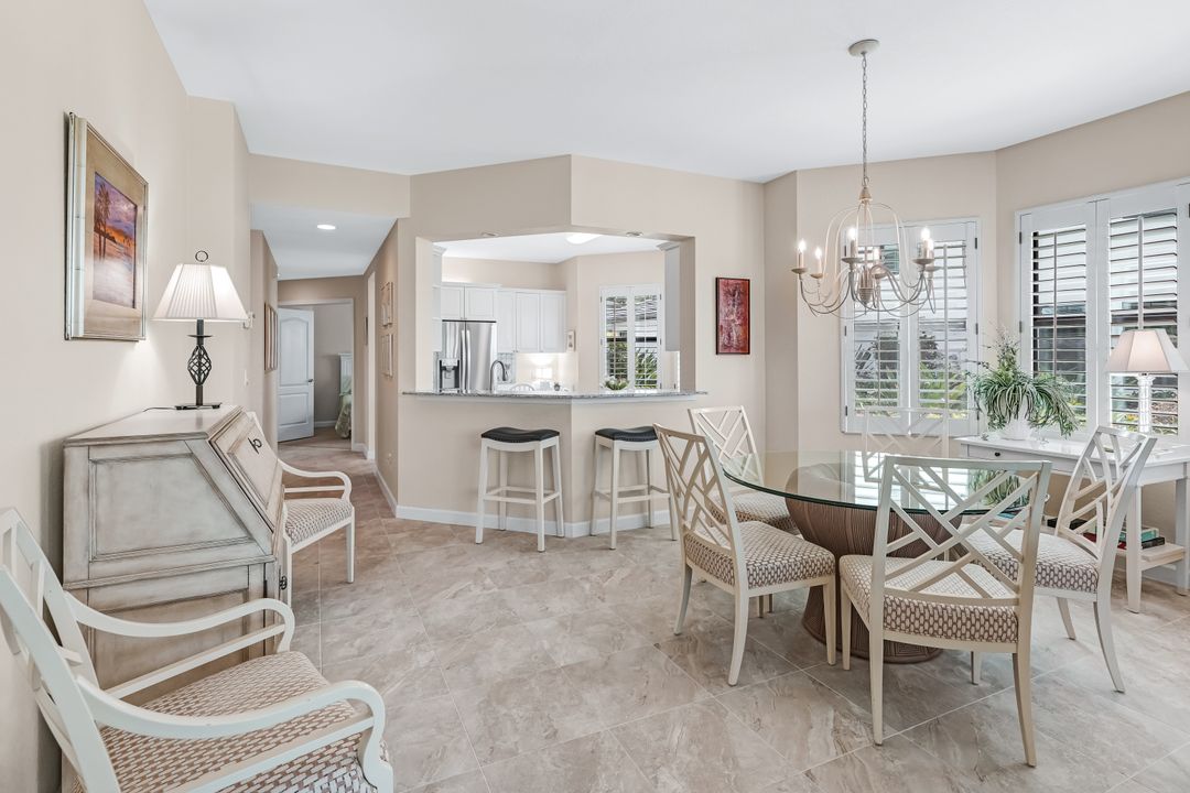 Tucked at the end of a quiet cul-de-sac in the gated enclave of Ravenna at Pelican Marsh, this first-floor garden residence offers a refined balance of privacy, natural light, and scenic surroundings. As a sought-after southern corner unit, the home is filled with sunlight throughout the day, with evening sunsets reflected across the lake.