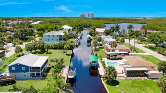 BOAT LOVERS -- this is your opportunity! DIRECT GULF ACCESS with BOAT DOCK right in your own back yard! Only 10 min to GULF! Cozy 3 BR, 1 BA single family home situated on Extra WIDE LOT. This home is in one of Bonita Spring's most desirable neighborhoods & has so much to offer! NO HOA FEES here! As you enter the home, you will be impressed by the LARGE, open living area. The possibilities are endless with this home! Kitchen has been recently updated with beautiful gray-wash cabinets, new counter tops and a stunning skylight to bring in more natural light. All bedrooms are ample in size & comfy: they share an updated bathroom PLUS option to add a 1/2 bath (plumbing & wiring in place). Step outside & enjoy your screened in lanai w a/peaceful canal view. Home upgrades feature NEW impact resistant windows recently installed in living, great room & bathroom, Solar hot water, metal roof is ONLY 5 years old, and SO much more! Minutes away to shopping, beaches & airport. This home is absolutely READY for your personal touch. Make it yours today!