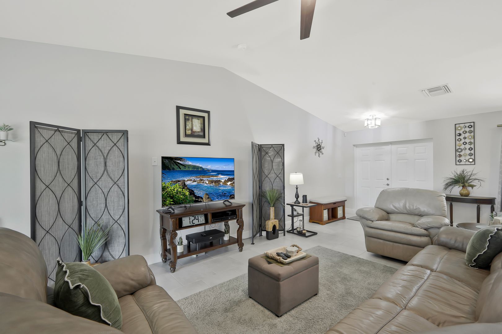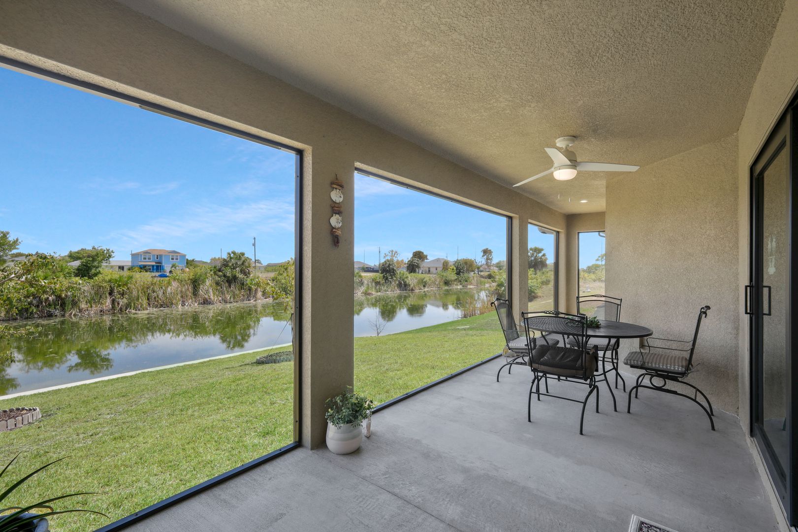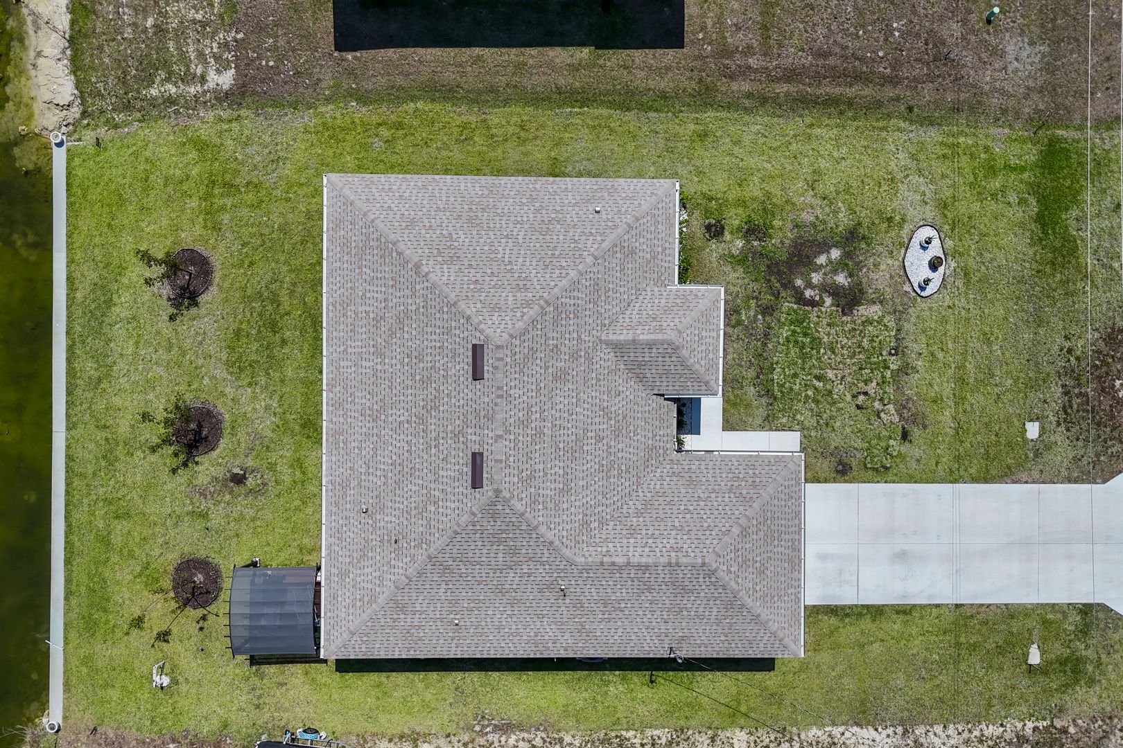 Welcome to this beautifully crafted newer construction home on a wide freshwater canal in the rapidly growing Northeast Cape Coral area. Offering 3 bedrooms, 2 bathrooms, and over 1,700 sq ft under air, this home combines modern design with everyday functionality. Step inside to an open-concept layout featuring 18-inch tile throughout the main living areas, creating a clean and cohesive feel. The kitchen is designed to impress with granite countertops, soft-close cabinetry, and a full suite of Whirlpool appliances. The split-bedroom floor plan provides privacy, while the spacious owner’s suite serves as a true retreat. Enjoy a large walk-in closet and a spa-like bathroom complete with an oversized walk-in shower. Additional highlights include carpeted bedrooms for comfort, ample natural light, and a layout that maximizes space and flow. Enjoy true indoor-outdoor living with a large screened-in lanai overlooking the canal—ideal for relaxing, entertaining, or enjoying peaceful water views year-round. The backyard offers plenty of room to add a pool or customize your outdoor space to fit your lifestyle. NO FLOOD ZONE! Freshwater canals are perfect for kayaking, fishing, and taking in the natural surroundings. Convenient access to shopping, dining, parks, and hiking. Enjoy all that SWFL has to offer!