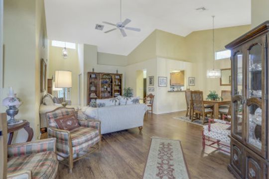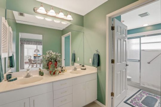 Welcome HOME! Enjoy this beautiful well-maintained 3 BR, 2 bathroom, 2 car garage home! Situated in the charming community of the Greens at Bonita Springs, this home has it all plus more! And it's the perfect home to enjoy year round or seasonally! As soon as you step into this home you will fall in love; features include vaulted ceilings, great room, wood look flooring in main living areas & bedrooms, tile in kitchen/bathrooms, & carpet in the master bedroom/2nd BR. The charming kitchen boasts beautiful granite counter-tops and stainless steel appliances. Kitchen is open to the main living area. There is SO MUCH room in this home! Manual accordion shutters on most windows offer convenient storm protection. Take advantage of the additional square footage that was created by enclosing the lanai space, making this one of the larger homes in the Greens at Bonita Springs! But don't worry -- there is still plenty of outdoor lanai space where you will enjoy the sea breeze all winter long! LOW HOA Fees include lawn/land maintenance & community pool. 15 mins. to Bonita Beach, 10 mins. to Coconut Point, restaurants & dining. Very close to the intl. airport! This one won’t last long!