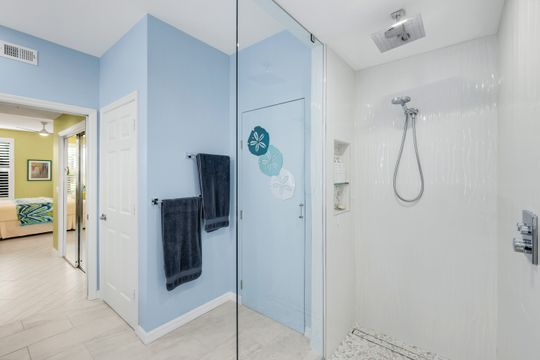 Expansive golf course views create a peaceful backdrop for daily living, enjoyed from the extended lanai overlooking lush fairways, manicured greens and mature landscaping. This inviting outdoor space offers a front-row perspective of the course while providing a private setting to relax and take in the surrounding scenery. The primary bedroom sliding glass door was recently replaced with a new impact-resistant slider, and all windows have been updated to impact-resistant windows, part of the broader improvements taking place throughout Creekside Crossing as the community continues installing new impact windows and sliders. From the moment you step inside, the level of finish and care is immediately evident, creating a truly move-in ready residence that makes a striking first impression. Two beautifully remodeled bathrooms anchor the list of improvements, complemented by wood-look tile flooring in the bedrooms and guest bath, plantation shutters, updated ceiling fans and lighting fixtures and California-style closets that enhance both functionality and design. With these upgrades already completed, this three-bedroom condominium allows the next owner to simply settle in and begin enjoying the lifestyle. A complete list of property upgrades is available upon request. Located within the welcoming community of Creekside Crossing, residents enjoy a friendly neighborhood atmosphere with the convenience of two separate community pools, both within comfortable walking distance, offering multiple options for relaxation and recreation. As part of the renowned Pelican Landing, residents enjoy an exceptional array of amenities, including a 34-acre private island beach park accessible by water shuttle, tennis center, pickleball courts, fitness center, kayaking and canoeing, sailing center, bocce courts and extensive walking and biking paths, all set within a beautifully preserved natural environment.