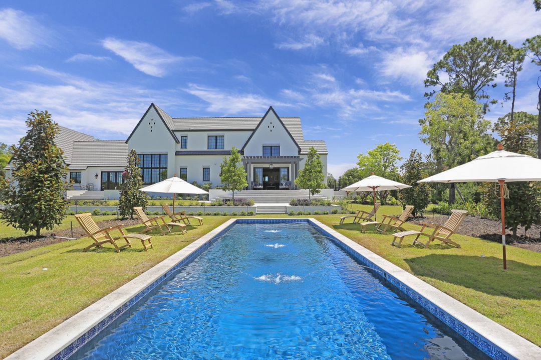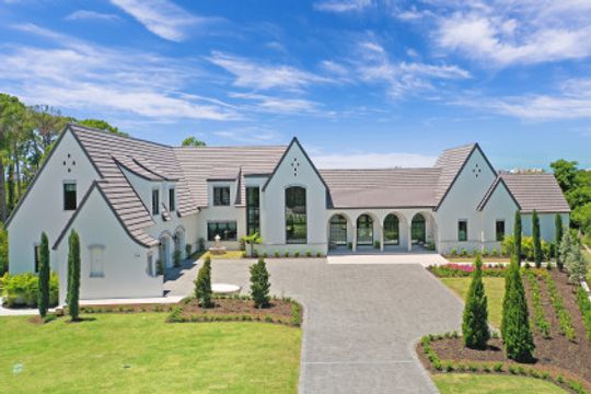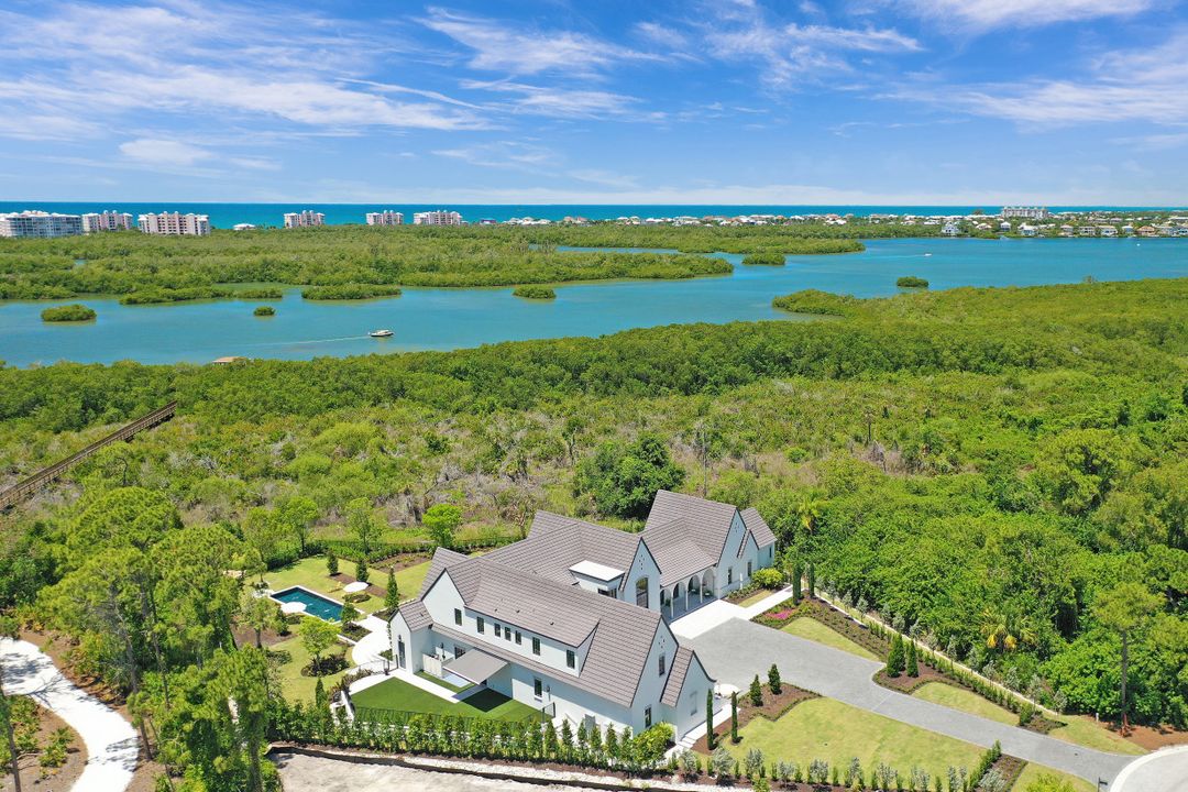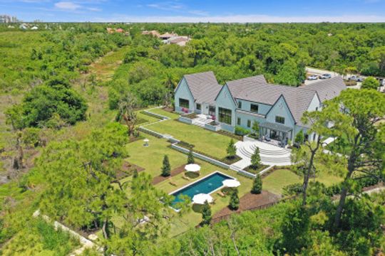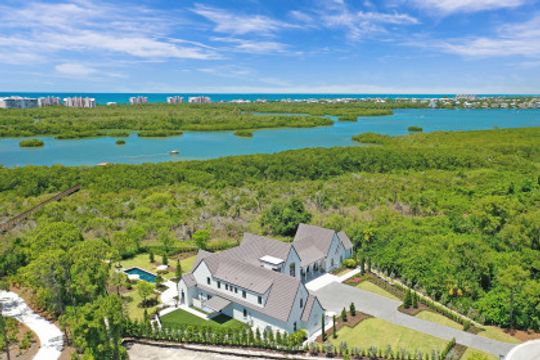 Located in the Audubon Country Club in North Naples and built by The Williams Group, this newly constructed McAlpine-inspired estate is a meticulously curated oasis that embodies tranquility. Move through this 5+bedroom, 6-bathroom masterpiece atop imported stone flooring, and bask in the beauty of the arched windows, cathedral ceilings, and opulent finishings that elicit a modern art deco flare, featuring striking nickel medallion wall tiling and scrollwork plaster ceilings. Relax into the hum of the water features on this nearly one acre property, including two fountains and a reflecting pond-inspired pool trimmed in Italian tile. Custom statues and antique calcium travertine designs punctuate the landscape, which has over 4,000 plantings bearing flowers to display in the kitchen flower emporium. With a bird sanctuary, mosquito abatement system, preserved estuary at the property’s edge, and Stealth Acoustic invisible speakers installed throughout, no detail was spared in planning this habitable work of art. The Audubon Country Club is a private golf community offering a fitness center, tennis courts, dining, and more
