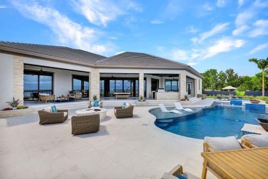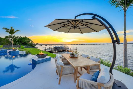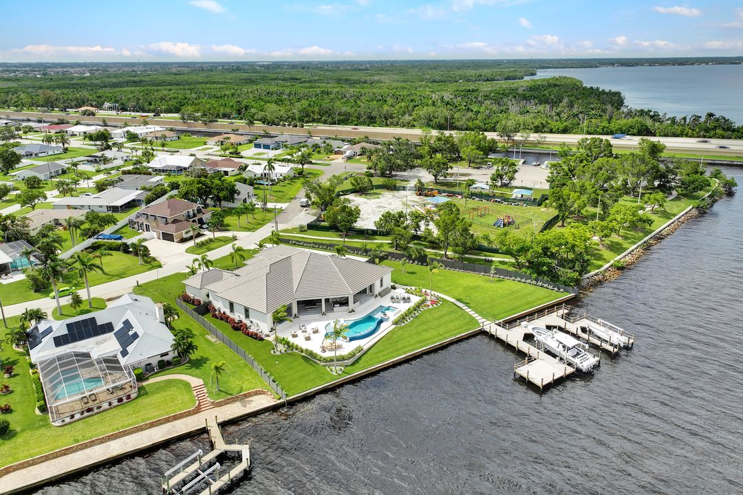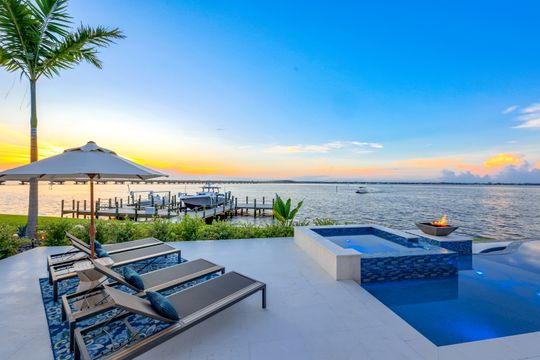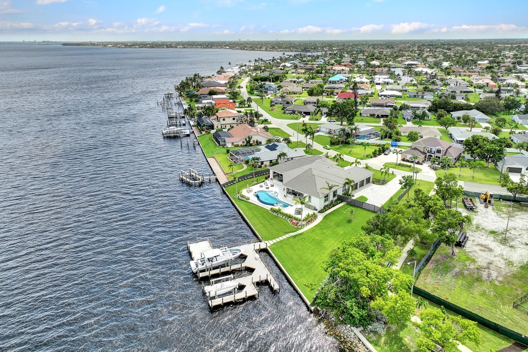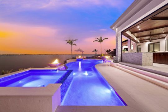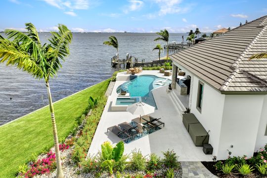 Luxury New Construction on a sprawling ¾ acre Riverfront Estate. This 2023 Koolgler Home features 5 Bedrooms each with en-Suite full bathrooms, a stunning home office, 6 bathrooms, and an oversized 4 car garage. Control 4 Smart Home encompassing 7,200 SF of total living space and 4,680 under-air. Overlooking Cape Coral’s Intra-Coastal Waterway you will enjoy miles of spectacular views, boats traveling in the distance, magical sunrises, along with Dolphins and Manatees frequenting your backyard.