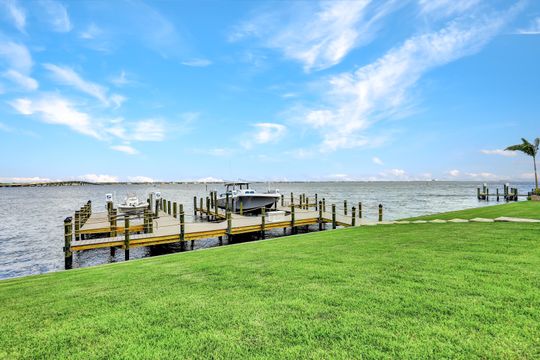 BOATERS An extensive dock with custom lighting, 10,000 pound & 25,000 pound lifts along with guest parking at the dock. This is true fast Direct Access. Instant open water access with NO canals, locks, or low fixed bridges.