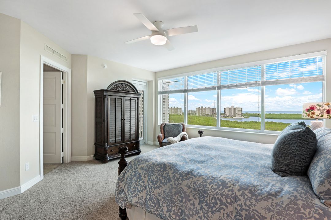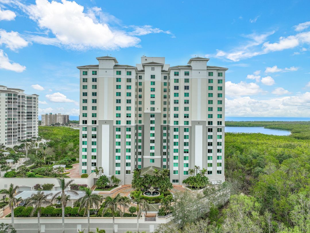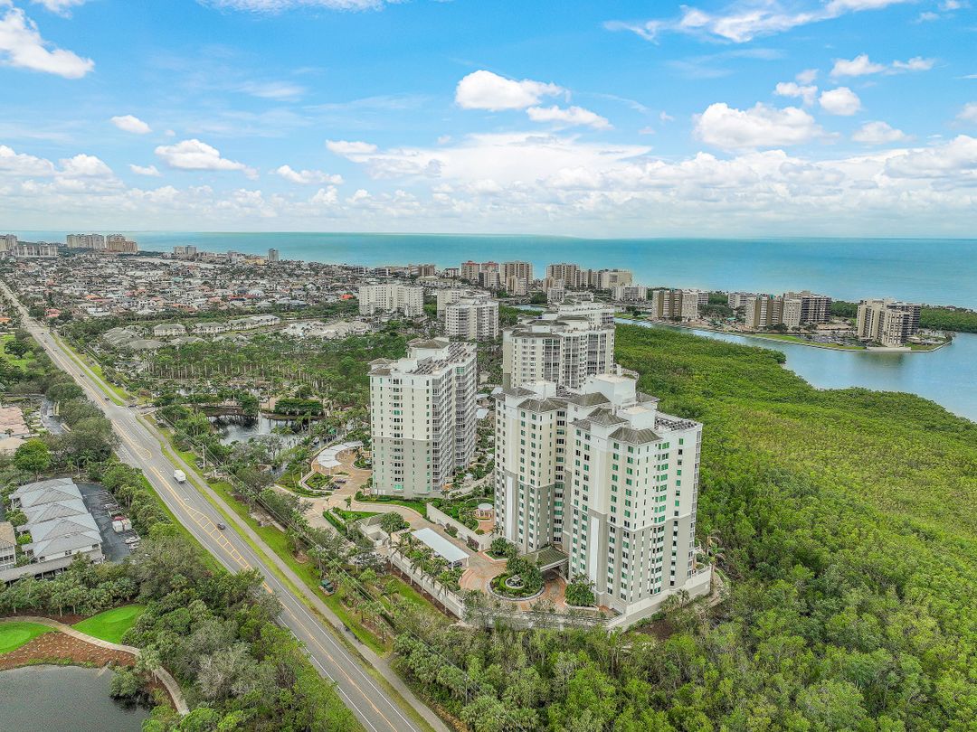 Stunning light and bright southwest end unit with magical views over the Gulf of Mexico and Old Collier golf course to the east. Secured elevator offers private entry directly into residence, gourmet kitchen with natural gas cooktop, stainless steel appliances, wine cooler, 2 deeded under-building parking spaces, and extra AC storage. In high demand, this residence offers a poolside 1BR cabana with full bath and kitchenette, included in asking price, but could be sold separately if so desired by Buyer. Spectacular amenities at "The Club" include upscale yet relaxed indoor and outdoor dining, a gorgeous resort-style pool, wellness and fitness center with an expansive exercise room, massage, physical therapy, a tennis program for every level of player, pickleball, and a game room with billiards, ping pong and shuffleboard. Grande Preserve offers full concierge services including handyman services, housekeeping, IT assistance, auto wash & detail, dry cleaning, pet sitting, event tickets, dinner reservations, tee times and more... The Floridian Beach Club private membership offering direct Gulf-front luxury is transferable with this residence.