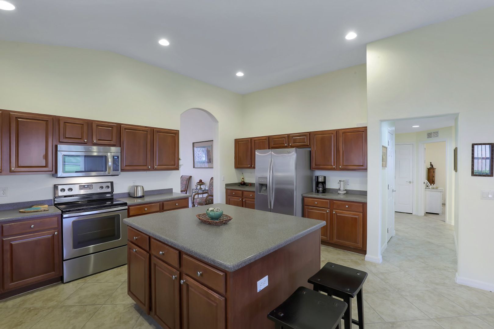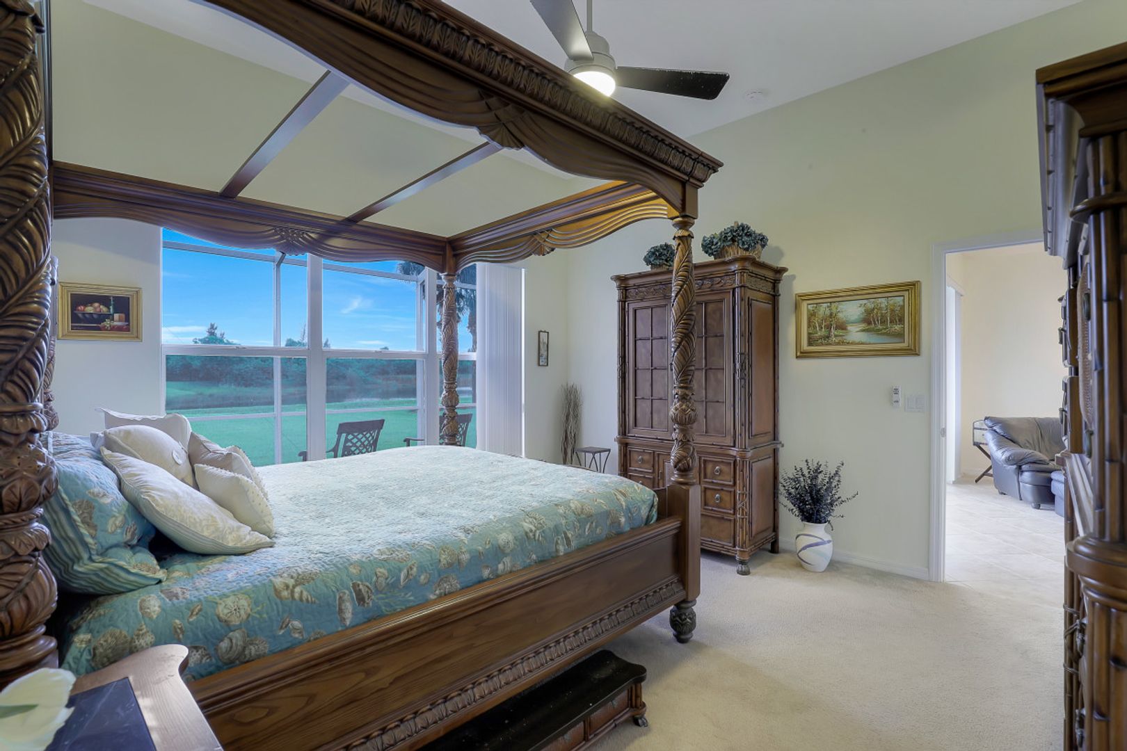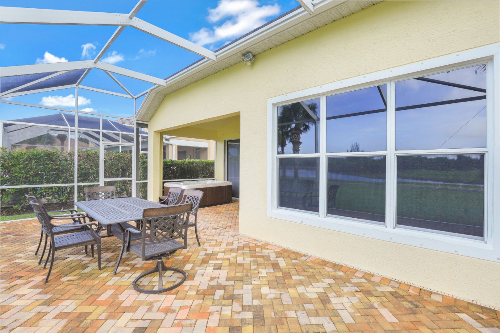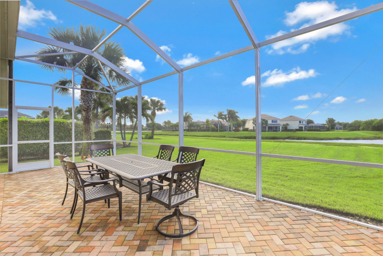 Sandoval Lake Front Home! 4 bedroom and open floor plan means plenty of room for family and friends in this move in ready home. The formal dining area offers ample room for a table of eight with room to spare. There's plenty of storage and counter space in the island style kitchen which opens to the great room area both overlooking the tranquil lake view. Oversize owners suite with its picturesque window also shares in the serene lake view. Owners bath features vanity area with separate tub & shower. 3 additional guest bedrooms and a full bath. Sunny southern exposure extended brick paver lanai is a perfect space for gathering, cooking out or simply relaxing with family and friends. The large back yard is great for family fun activities or creating your own tropical oasis by installing your own pool! A home great for entertaining and relaxing!! Gated Sandoval has amenities for all ages including resort style pool, fishing pier, 2 dog parks, kids playground, bocce ball, volleyball, basket ball & tennis + miles of walking & jogging paths.