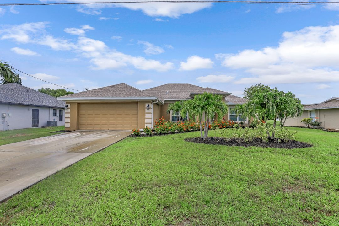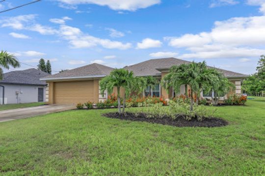 This gorgeous 4 bed, 3 bath home is just shy of 2300 sq ft. And has tons to offer. Walk into a spacious great room floor with plenty of charm. The elegant owners suite has a dual vanity, dual closet, spa tub and a separate shower. The kitchen offers stainless steel appliances and plenty of room for entertaining along with a breakfast bar and breakfast nook. Cathedral ceilings, tile and warm tones can be found throughout the whole home. Outside you will find a lovely lanai with a pool bath that meets a huge backyard with even more room for guests and their activities or even a pool. Location of this property gives you great access to the variety of amenities Cape Coral has to offer, Veterans Pkwy is convenient access to multiple stores, Ft Myers and Chiquita Blvd will lead you south to local restaurants, nightlife, parks and more. All thats missing is you!