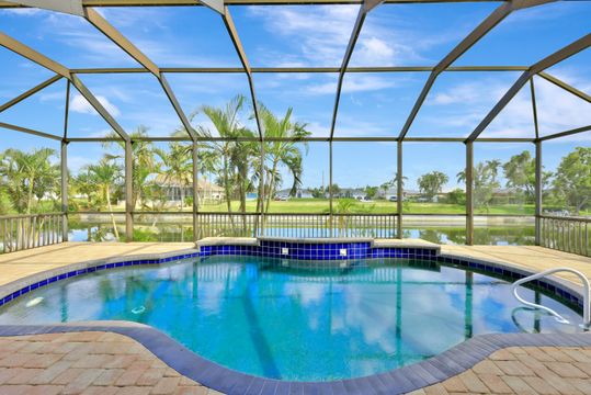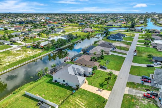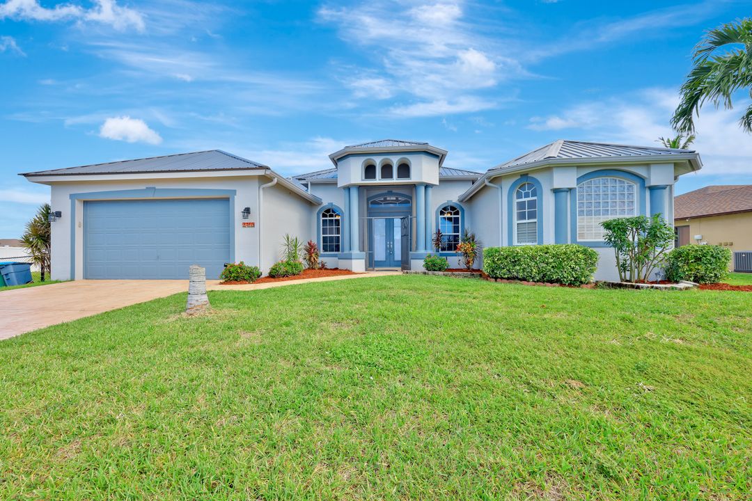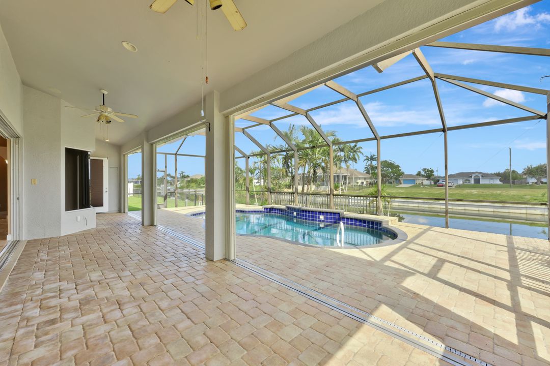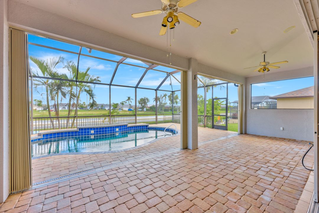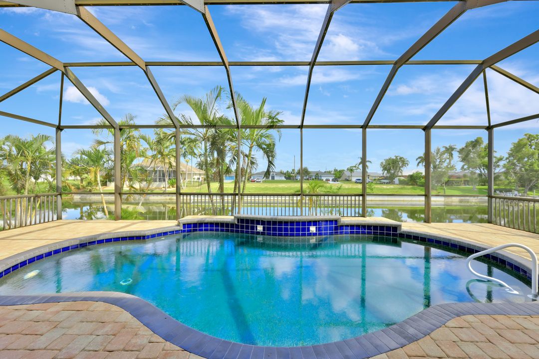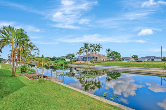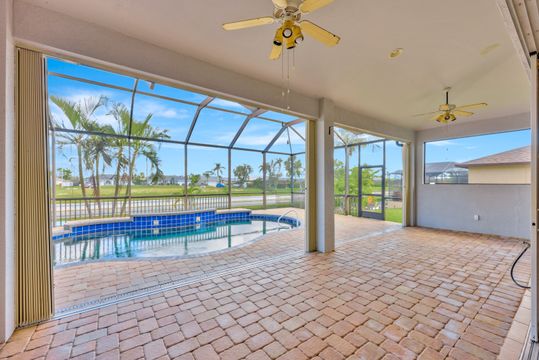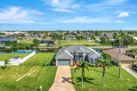 Motivated and Priced to sell! Fresh Water Pool Home on HUGE Fenced In Triple Lot! Nestled in sunny SW Cape Coral this 3BR, 2BA encompasses 2210 sqft of living space overlooking the Aries Canal. Recent Updates in 2023 Include - New Metal Roof, Pool Screen, Gutters, Pool Tile & Coping, Fresh Interior and Exterior Paint & Travertine Floors Refreshed. Step inside & you are greeted by the warm open floor plan, formal dining, spacious den, shimmering travertine flooring & high ceilings. The kitchen w/granite countertops is complemented by newer stainless steel appliances, plentiful cabinet space & nook area overlooking the pool & canal. The master suite is a private retreat w/double vanities, a luxurious soaking jetted tub & custom-designed closets, perfectly accentuated by the oversized walk-in shower. Outdoor living here is nothing short of spectacular. The expansive screened-in lanai invites you to unwind in the shade while overlooking the pavered pool area & canal. Dive into the heated pool, complete with mesmerizing waterfall feature & let the worries of the world wash away. Finally the oversized lot can be utilized as dog yard, kid play area OR dream big & build your own extended RV/toy garage in the future! Call today!