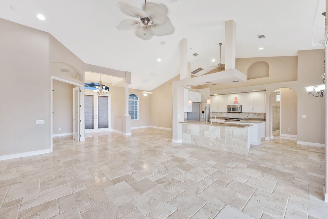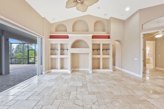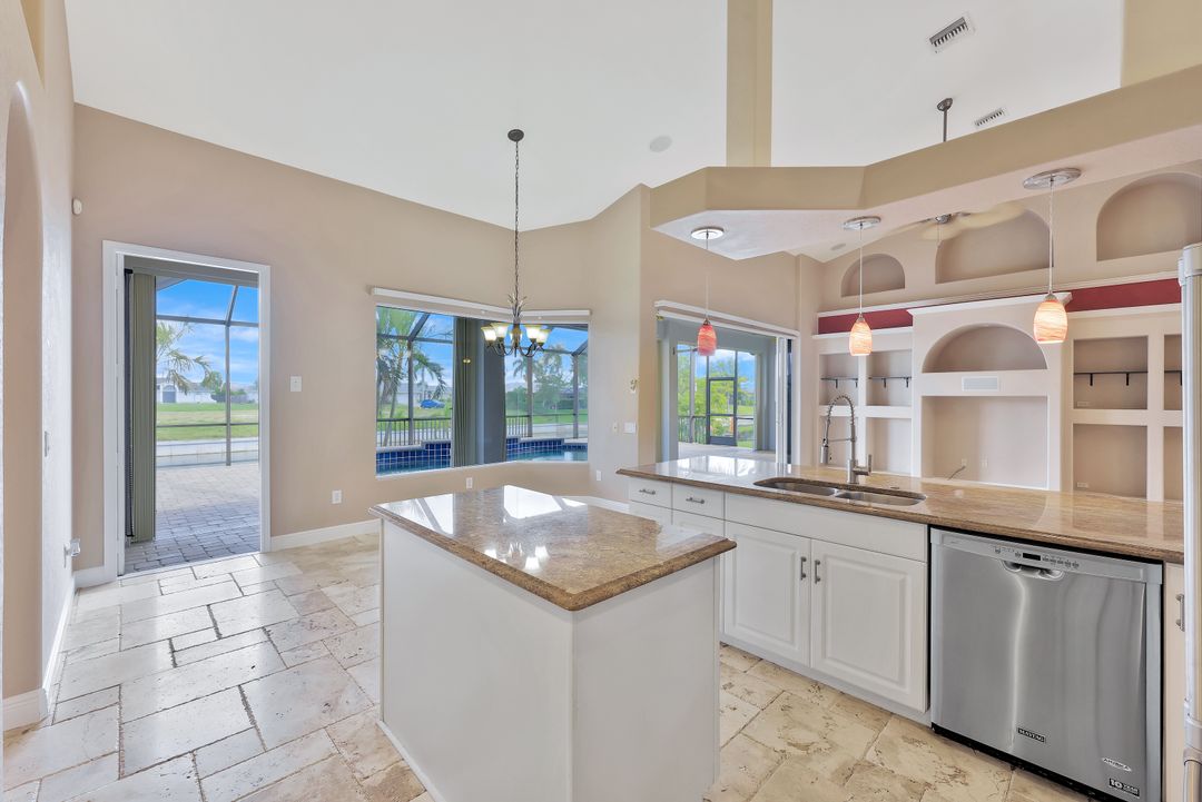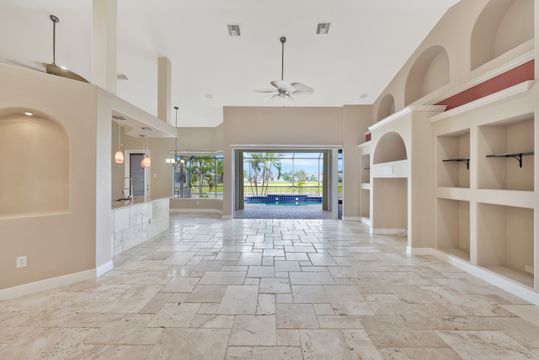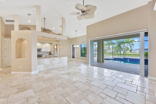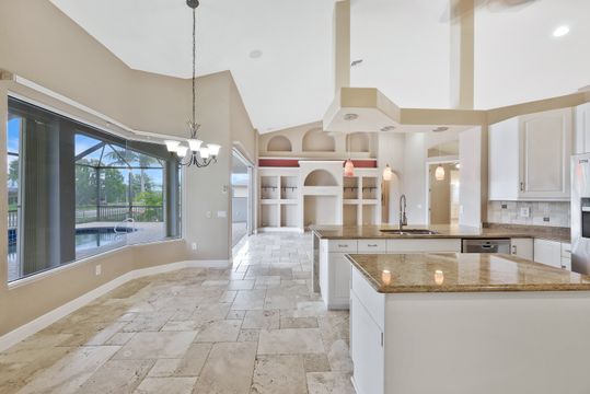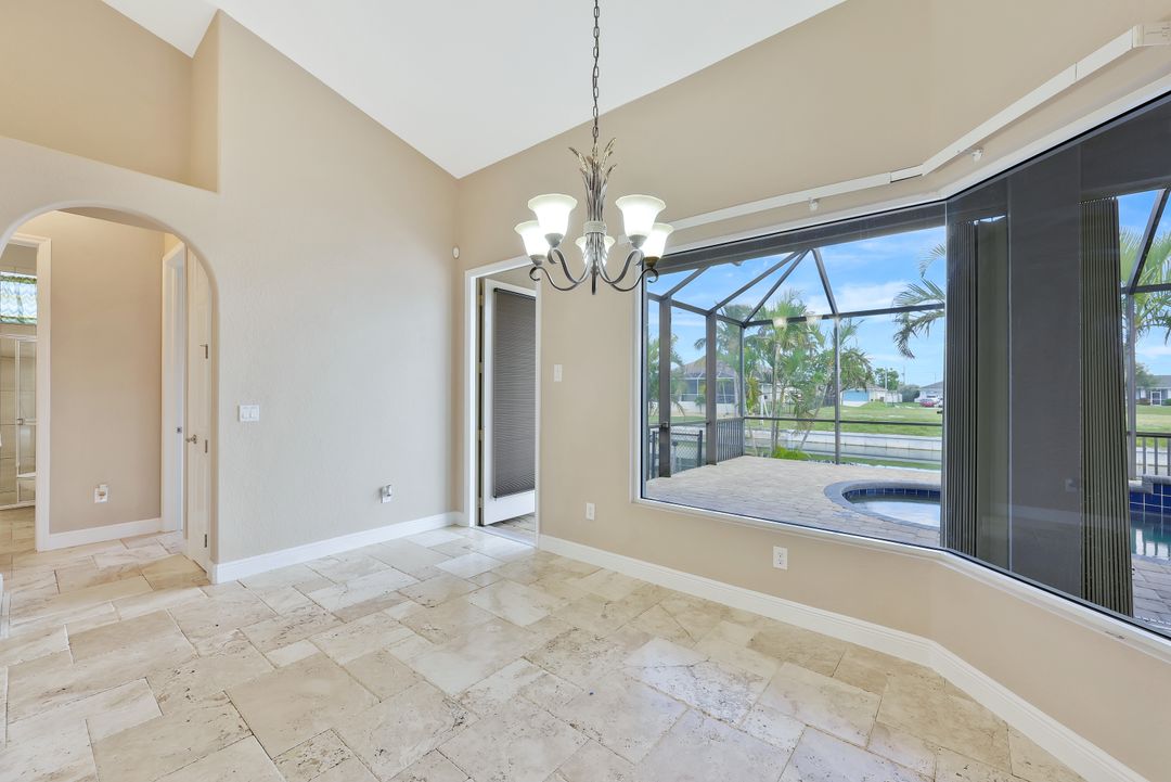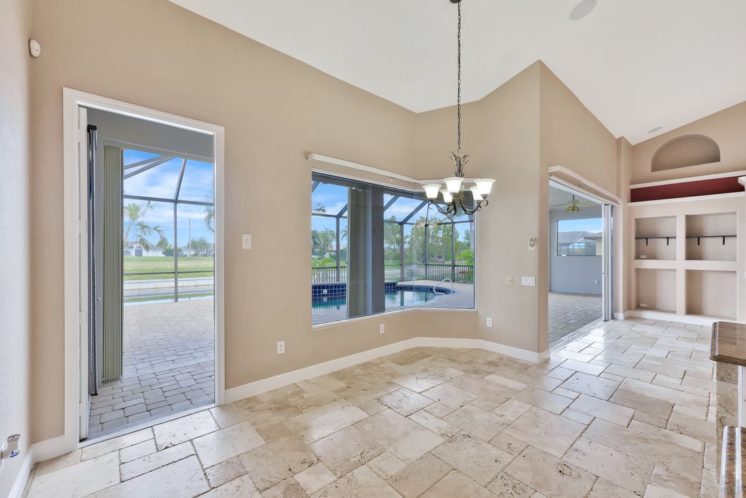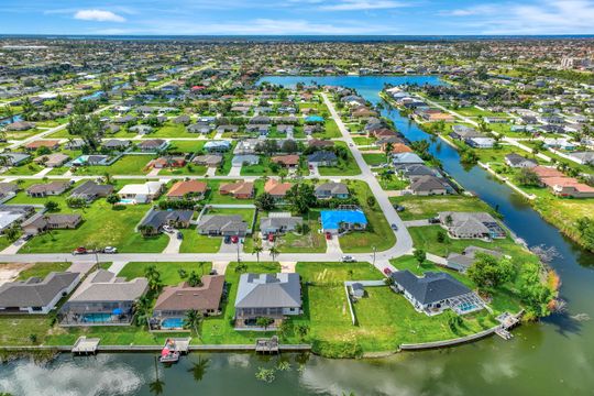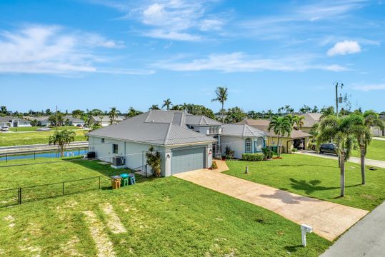 Motivated and Priced to sell! Fresh Water Pool Home on HUGE Fenced In Triple Lot! Nestled in sunny SW Cape Coral this 3BR, 2BA encompasses 2210 sqft of living space overlooking the Aries Canal. Recent Updates in 2023 Include - New Metal Roof, Pool Screen, Gutters, Pool Tile & Coping, Fresh Interior and Exterior Paint & Travertine Floors Refreshed. Step inside & you are greeted by the warm open floor plan, formal dining, spacious den, shimmering travertine flooring & high ceilings. The kitchen w/granite countertops is complemented by newer stainless steel appliances, plentiful cabinet space & nook area overlooking the pool & canal. The master suite is a private retreat w/double vanities, a luxurious soaking jetted tub & custom-designed closets, perfectly accentuated by the oversized walk-in shower. Outdoor living here is nothing short of spectacular. The expansive screened-in lanai invites you to unwind in the shade while overlooking the pavered pool area & canal. Dive into the heated pool, complete with mesmerizing waterfall feature & let the worries of the world wash away. Finally the oversized lot can be utilized as dog yard, kid play area OR dream big & build your own extended RV/toy garage in the future! Call today!