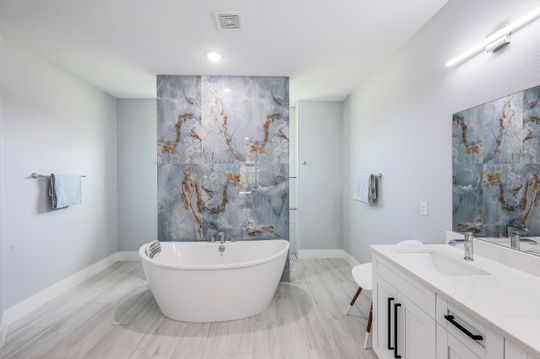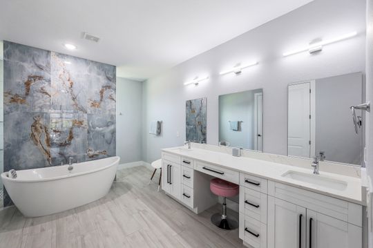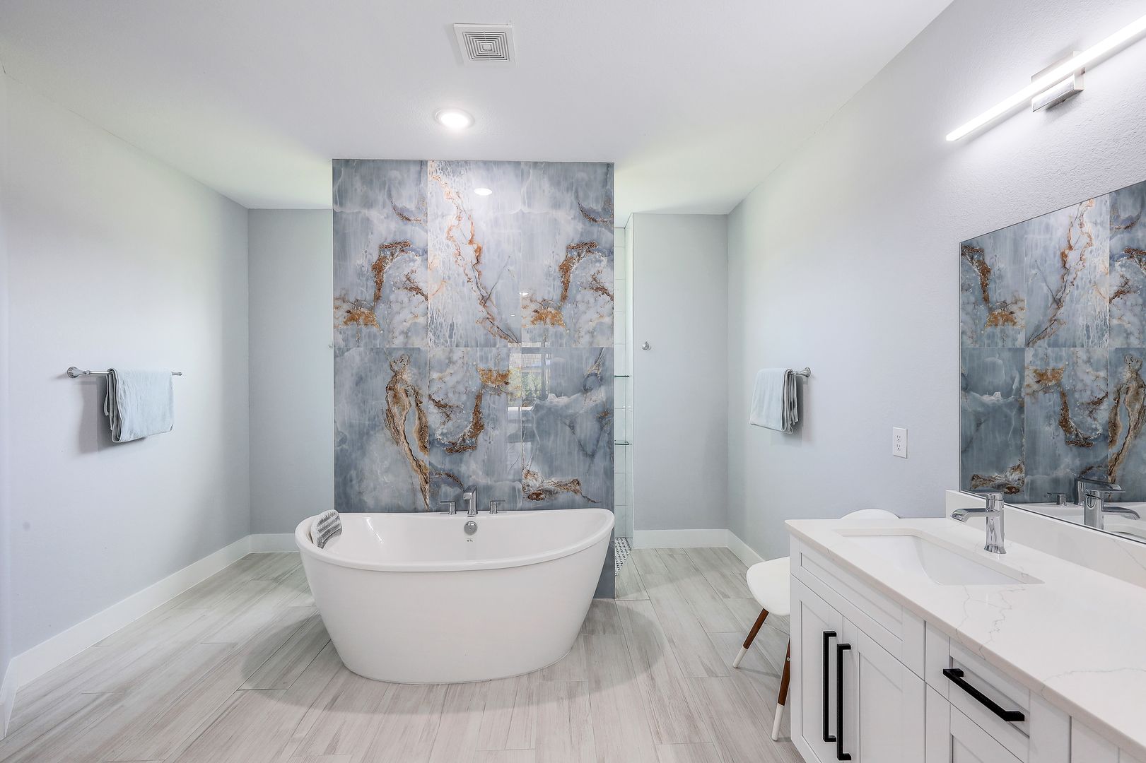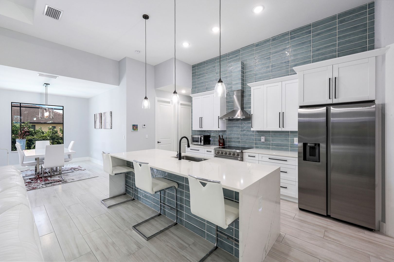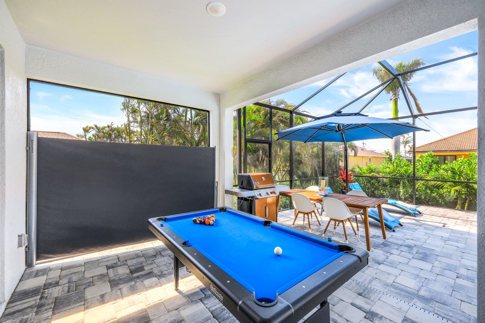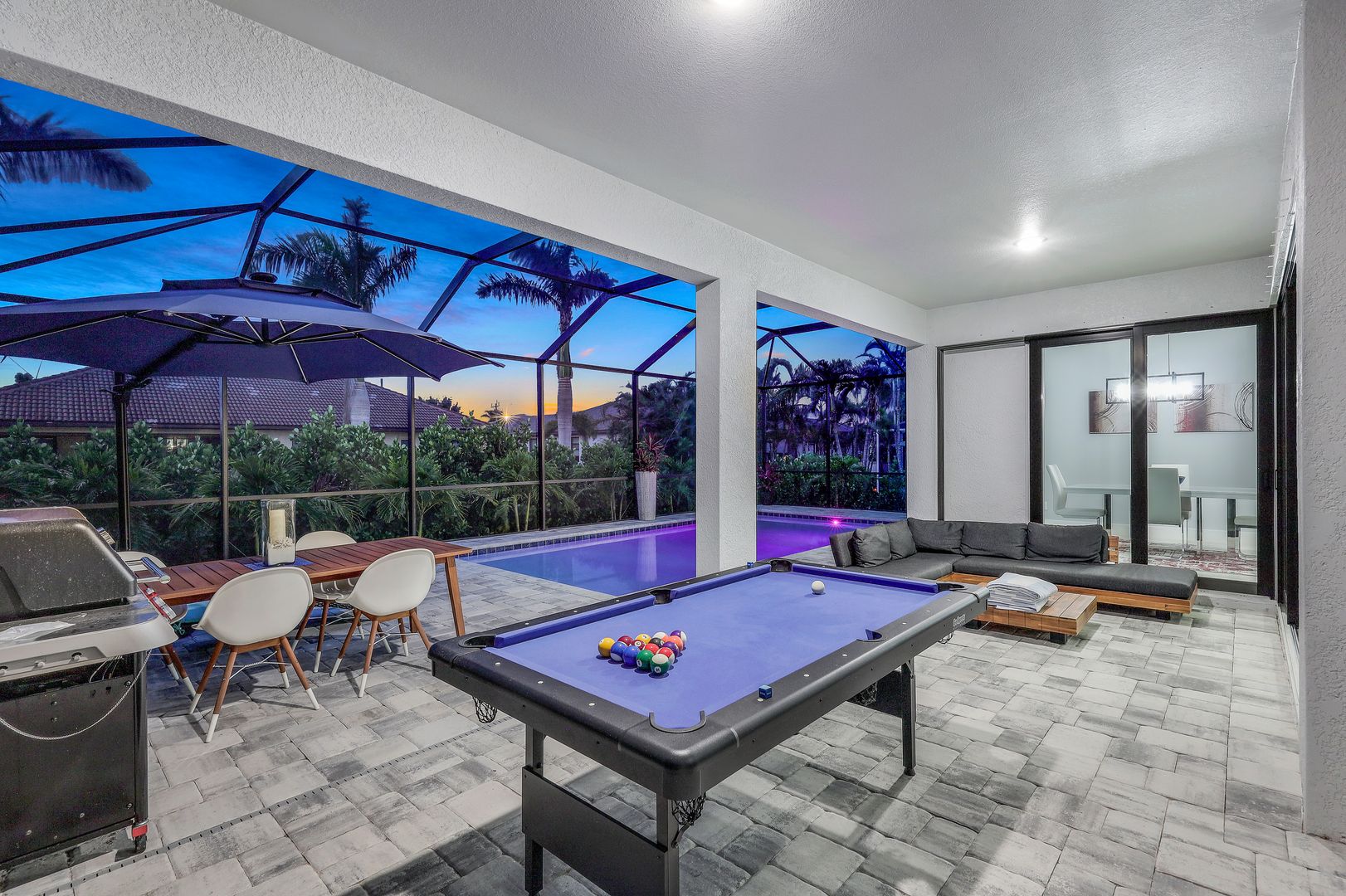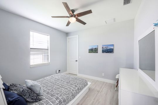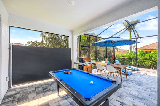 Stunning 1 year old Pool Home in SW Cape Coral! Loaded with features rarely found in new homes, this 3 Bed 2 Full Bath with an Office/den is perfect! Modern & inviting w/ 12 ft coffer ceilings in the living room, 9.4 ceilings in the bedrooms, porcelain tile throughout (no carpet), custom wood storage in every closet & pantry, and high-end lighting & fans. Relax in the living room w/ feature wall & fireplace with lots of natural light from the double sliders. Kitchen features waterfall quartz island, stainless appliances, upgraded professional stove, and tile backsplash all the way to the ceiling! Den/Office includes a sliding barn door for privacy and12 ft Coffer Ceiling. Master suite overlooks the pool & magnificent spa bath with floor to ceiling glass tile, dual vanities, 2 walk-in closets w/ wood shelving. Spare bedrooms w/walk in closets. 1200 SQFT Patio with extra deep Saltwater Heated & Lighted Pool overlooking tropical palms and $7,500 added lush clusia & Palm Trees for privacy! Home built high 9.5 Elevation - safe from flooding. Quiet neighborhood by high-end waterfront homes, the area's best restaurants, shopping, schools, and the new Sands Park & walking trails nearby!