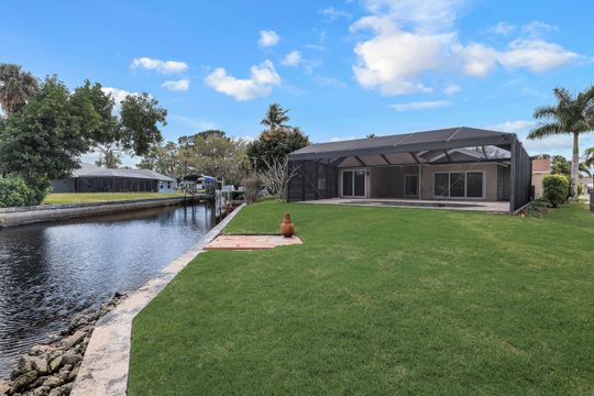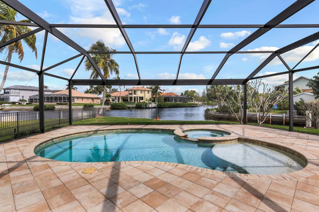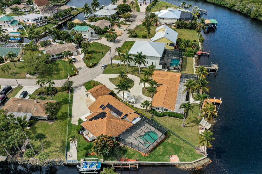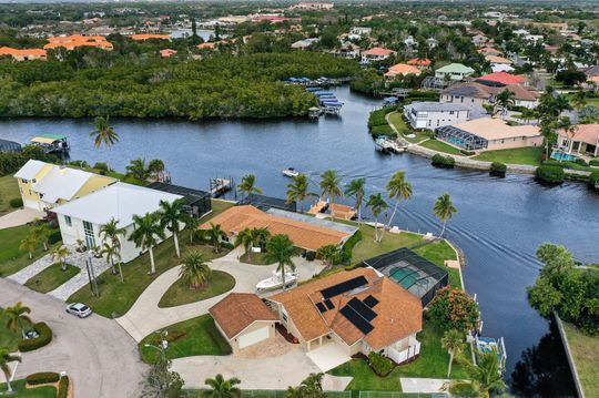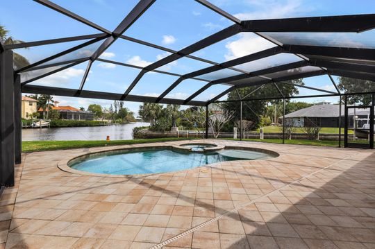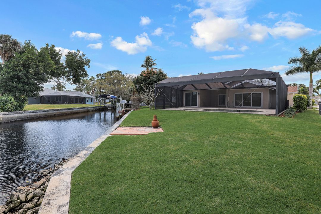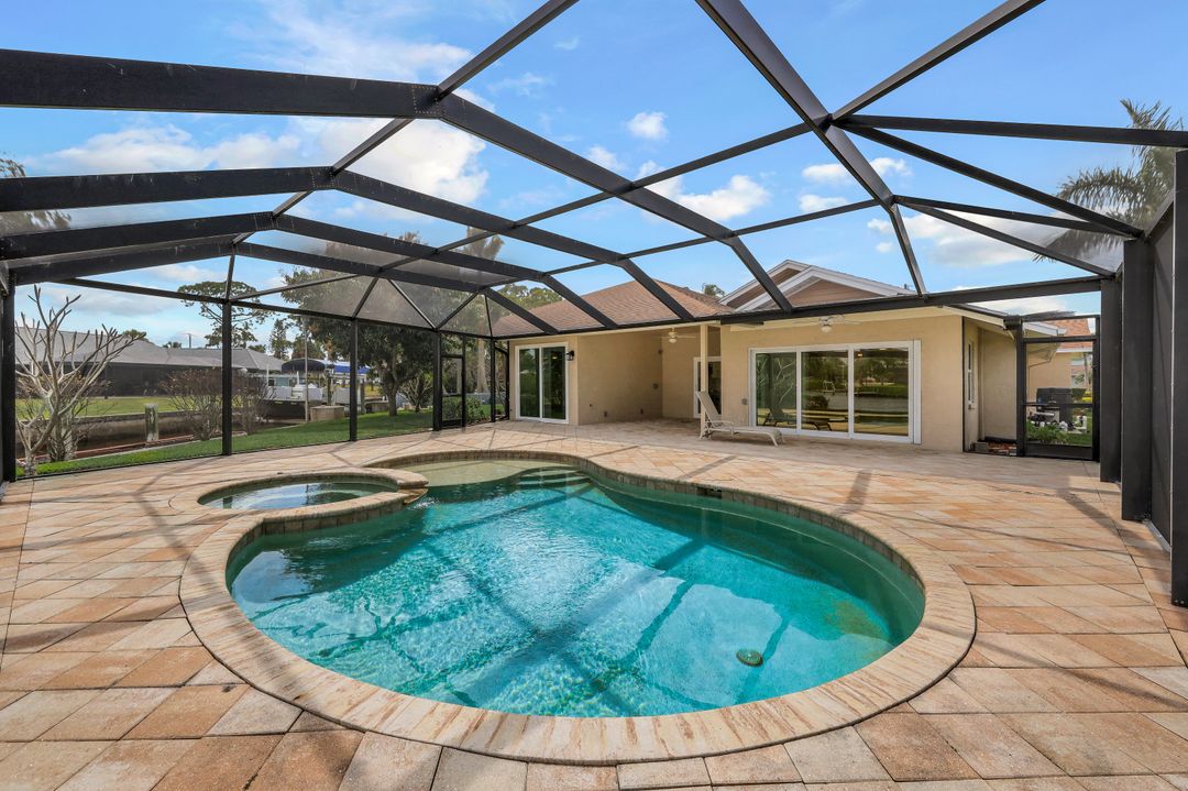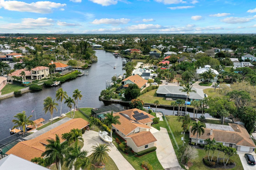 Fantastic Imperial River front home offering dramatic water views with 165 feet of river and canal frontage. This spacious home has been renovated throughout featuring a beautiful new kitchen with new stainless steel appliances, quartz counter-tops and glass tile backsplash. The home has an active solar powered photovoltaic system keeping your electric bills to a minimum. Plus there is a master bedroom & den addition in 2016 that features a deluxe master bath with a large walk-in steam shower, custom mounted vanities and backlit mirrors. Also, the 2 car garage was added in 2014. The home has been fitted with Impact resistant windows & doors, new interior doors, trim and base, new water heater, upgraded electric service and new roof in 2022. The expansive pool area features a custom built swimming pool & spa, paver pool deck and picture window pool enclosure all added in 2014. The large covered lanai has plenty of room to add an outdoor kitchen. Spacious backyard for outdoor activities. The boatlift was new in 2015, dock is currently under construction.