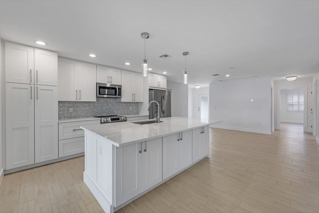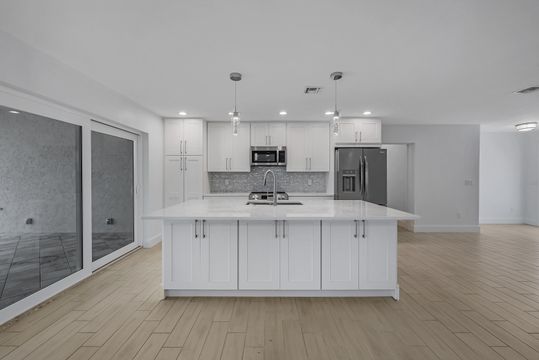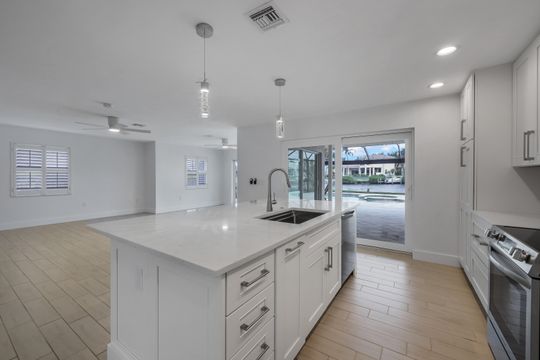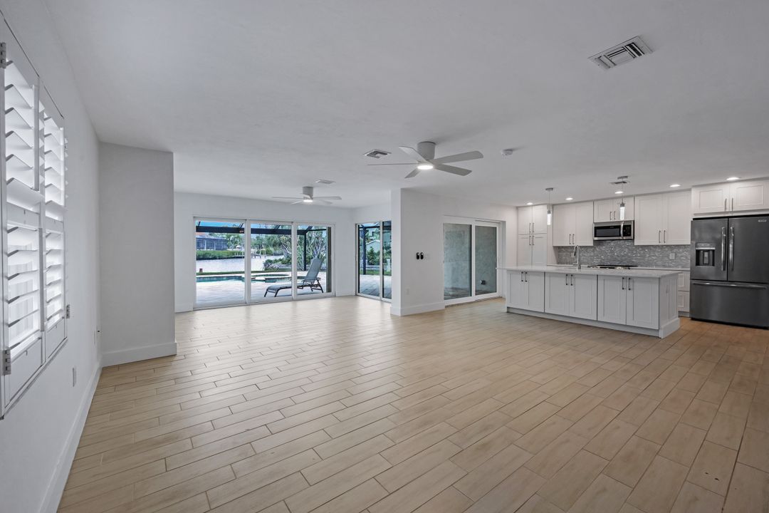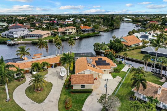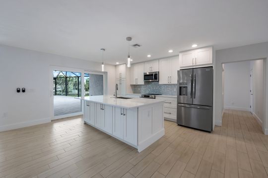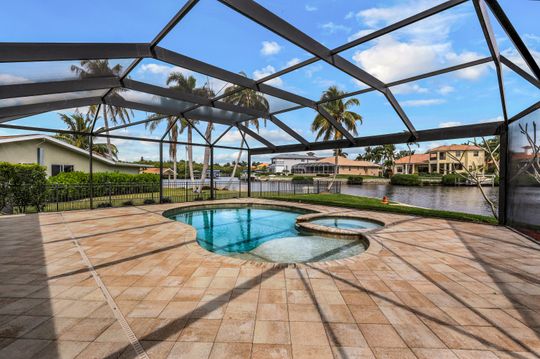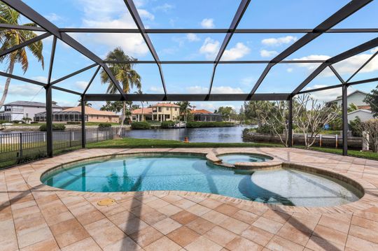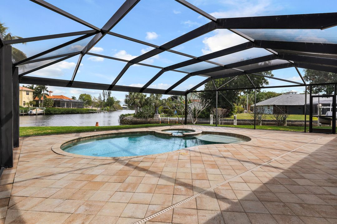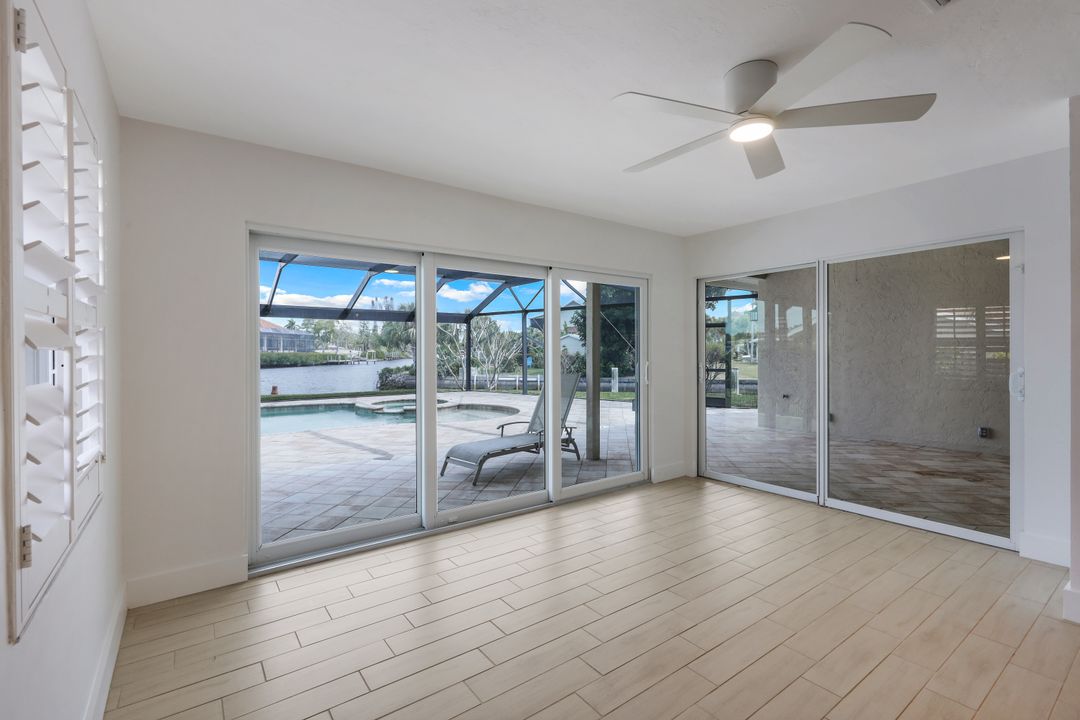 Fantastic Imperial River front home offering dramatic water views with 165 feet of river and canal frontage. This spacious home has been renovated throughout featuring a beautiful new kitchen with new stainless steel appliances, quartz counter-tops and glass tile backsplash. The home has an active solar powered photovoltaic system keeping your electric bills to a minimum. Plus there is a master bedroom & den addition in 2016 that features a deluxe master bath with a large walk-in steam shower, custom mounted vanities and backlit mirrors. Also, the 2 car garage was added in 2014. The home has been fitted with Impact resistant windows & doors, new interior doors, trim and base, new water heater, upgraded electric service and new roof in 2022. The expansive pool area features a custom built swimming pool & spa, paver pool deck and picture window pool enclosure all added in 2014. The large covered lanai has plenty of room to add an outdoor kitchen. Spacious backyard for outdoor activities. The boatlift was new in 2015, dock is currently under construction.