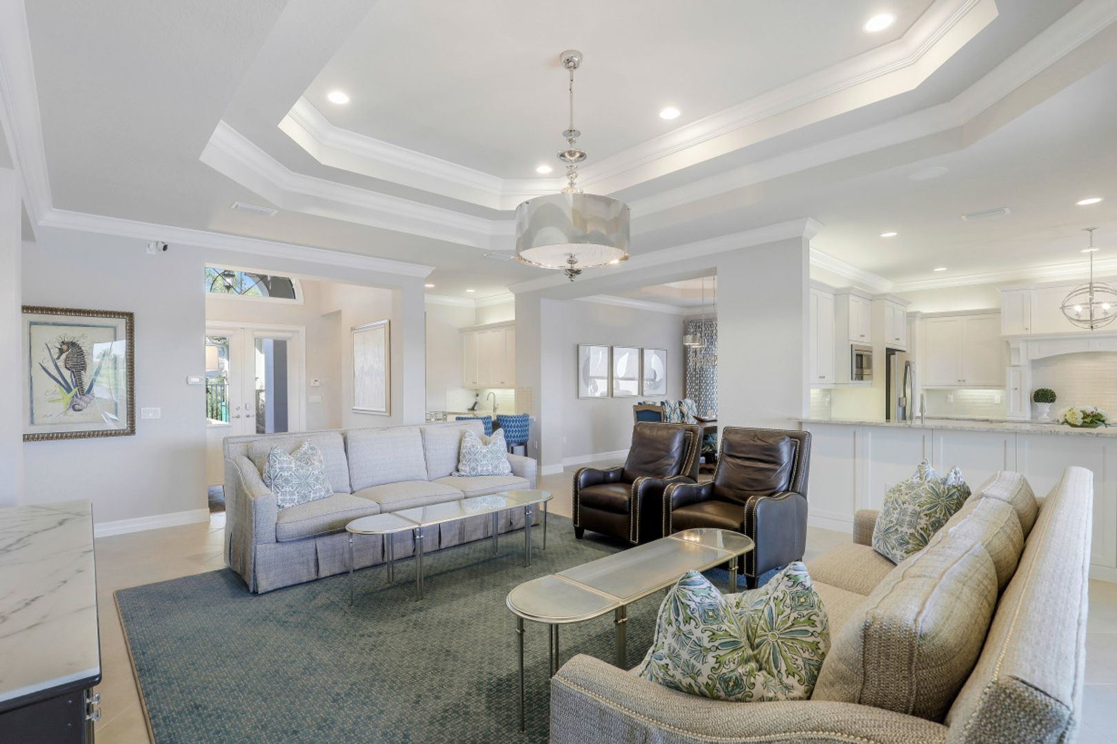 This FURNISHED Model Quality "Carlyle" is situated on an extra wide lot with easterly views over the lake! A custom heated salt water pool with infinity spa and travertine marble deck lend itself for pool parties and al fresco dining. Inside, you will find an open Great Room style floorplan including formal Dining Room, "Model View" kitchen with center, Level V Cabinets, and WET BAR! There is also a "Club Room" that serves as an excellent entertainment area or home office. The two Guest Suites each have their own bath & walk-in closet. Other fine appointments include upgraded cabinets (with soft close) throughout, Granite & Marble countertops, crown molding, closet cabinets throughout, 24" diagonal Porcelain tile floors throughout (no carpet anywhere), custom window treatments including motorized shades, special order lights/fans, AC garages, and more! Riverstone's clubhouse features Resort Pool, Lap Pool, Kids Water park, Indoor & Outdoor Basketball Courts, Tennis Courts, Fitness Center, Billiards Room, Social Hall, Pool Cabanas. Full-Time Social Director! Located just 2 min to I75, 15 min to the Beach/Mercato/41. 20 min to Downtown Naples/Miromar Outlets, & RSW Airport.