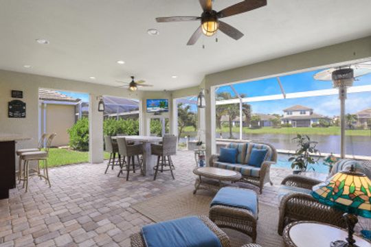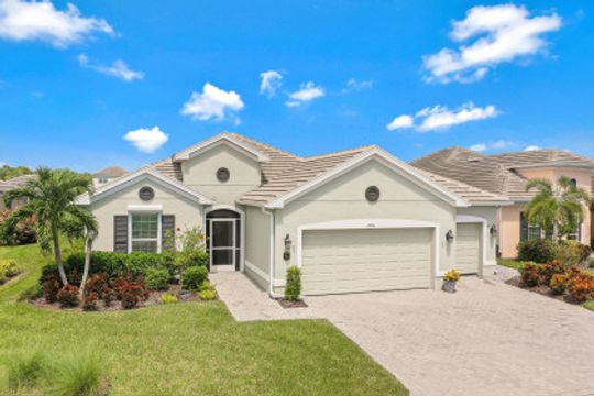 This is it! The most sought after Sandoval Floor Plan, with over $230,000 in Upgrades throughout, and more impressive than any Model. The most Discriminating Buyers will love all the bells and whistles. The Gourmet Kitchen has Beautiful Quartz Counter tops, 42-inch Cabinets, 2 Wall Ovens, 2 Disposals, All Top of the Line Appliances, Under Cabinet Lighting, so many Pullouts, and a Pantry. Built in 2016, the Spacious Open Floor Plan offers 3 Bedrooms and a Den, 3 Full Baths, All Tile Flooring, Tray Ceilings, a Huge Master Walk-in Closet with Built ins, Multiple Wall-mounted TVs, a Good-sized Laundry room with Laundry Tub, Security System with 10 Cameras, an Oversized 3-Car Garage with Overhead Storage, and even Soffits with Weatherproof Electric Receptacles for decorating with Outdoor Lights. Whole house Electric Hurricane Screens easily get your home ready for a storm in minutes. Come and enjoy the Gorgeous Custom Heated Pool and Spa, Summer Kitchen, Extended Lanai, and view of the Lake. The Large Covered Outdoor Living Area is great for entertaining, or providing you with the Perfect Peaceful Oasis to recharge and relax. This home is not in a Flood Zone. Conveniently located near shopping, dining, entertainment, schools, and just a short drive to Fort Myers, Beaches, the RSW International Airport, and the Punta Gorda Airport. You have to check out all of Sandoval’s World Class Resort style Amenities with Low HOA fee.