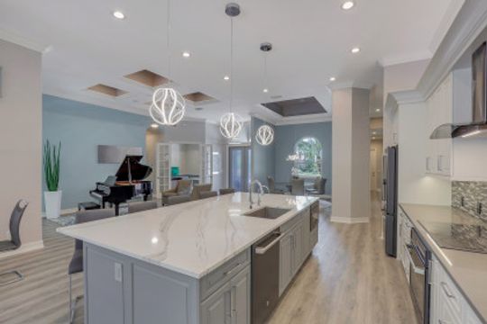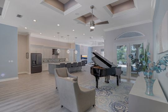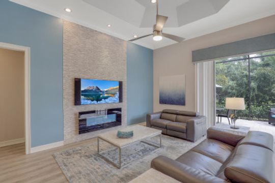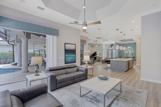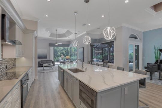 IF The benefits of a larger lot, peaceful and quiet lake and golf course views, AND being COMPLETELY Renovated is something you have been searching for; Why start from scratch with a new build when you can walk right into this home that is essentially new, with 85 feet of lot frontage? This three bedroom, plus TWO offices, (on opposite ends of the home) four full bath, 3 car air-conditioned oversized garage home has been entirely redone from top to bottom and front to back. Over $550,000 of updates including walls removed, new kitchen and baths, new hurricane Energy Shield windows, doors and 90 degree sliders, pool renovation with travertine pool deck, new lanai cage with panoramic screening, outdoor LED lighting, surround sound, fireplace, new led light fixtures, new appliances including induction stovetop, new roof, security cameras, solar roof vents, and the list goes on and on. Attention to detail is evident throughout this transformed home. Crisp, clean open sight lines for today’s living. Abundant air-conditioned cedar storage is also hard to find, but plentiful in this home that is a comfortable transitional blend. Garage is epoxied with custom cabinets that are guaranteed for life.Olde Cypress is located in desirable North Naples and is a community of only 550 single family homes. Peruse the website to see how (covid -safe) socially active, vibrant and fun the club is. Golf memberships not required, social membership is.