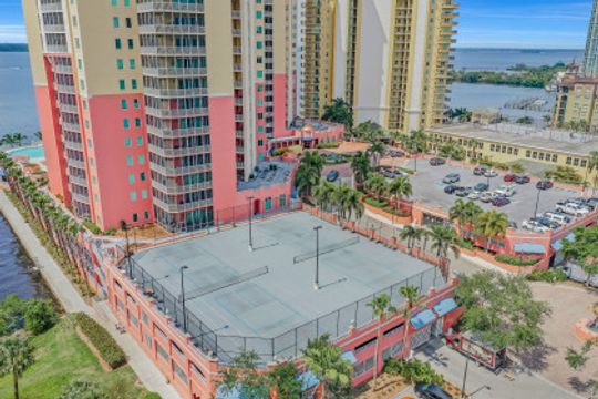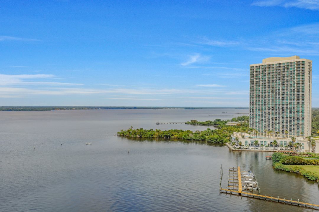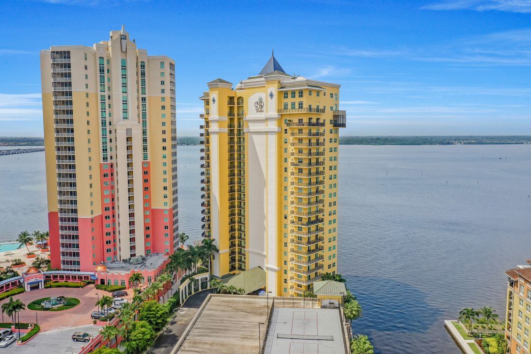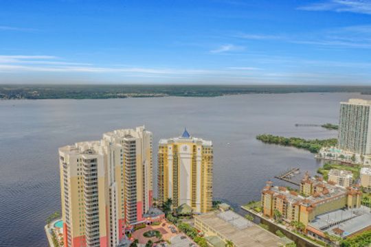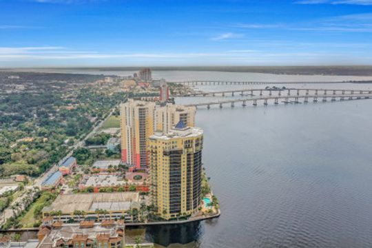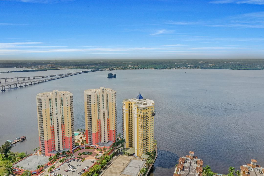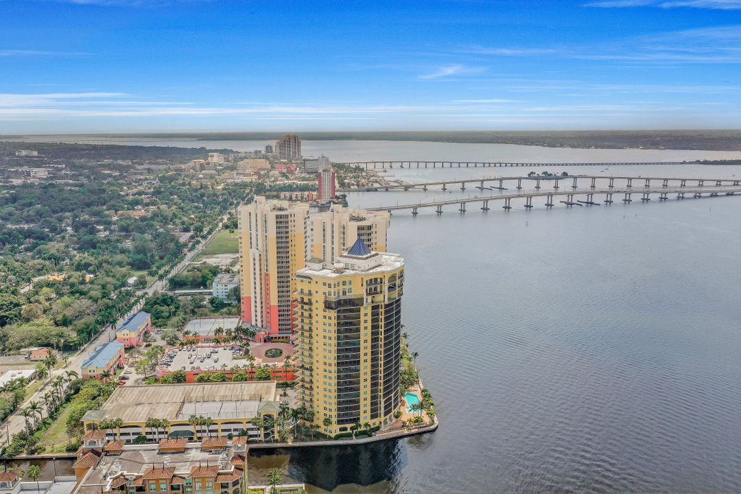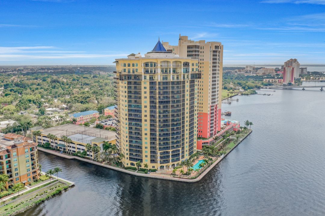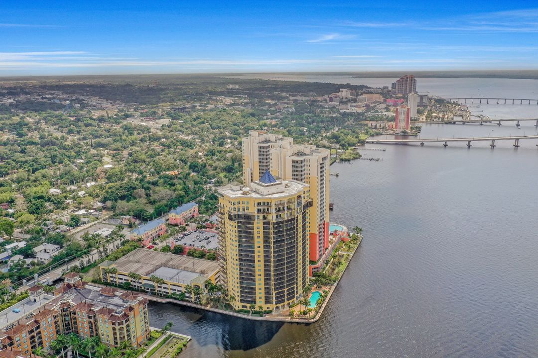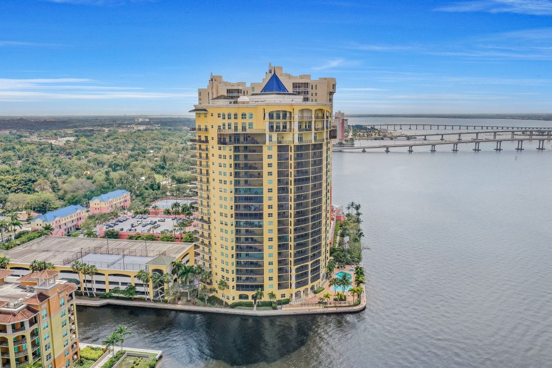 Fine river front living near the Dean Park Historic District of Ft Myers. Enjoy breathtaking sunsets over the Caloosahatchee from the balcony of this generous 4 bedroom 3 bath condo. Located on the 20th floor this corner unit features tile floor throughout, tray ceilings, an abundance of natural light and kitchen with breakfast bar overlooking the great room area. Owners suite with his & her walk-in closets shares access to the balcony and showcases a private bath with separate tub & shower and dual sinks. Three additional guest rooms and 2 full baths available for family & friends; two of which also have direct access to the balcony. Perfect for all occasions. Amenities include BBQ area, resort style community pool, fitness room, theater, concierge and more. Located just blocks from Downtown Ft Myers River Front area you are minutes from restaurants, nightlife, local shops, local theater/arts and local community events. Come check it out!