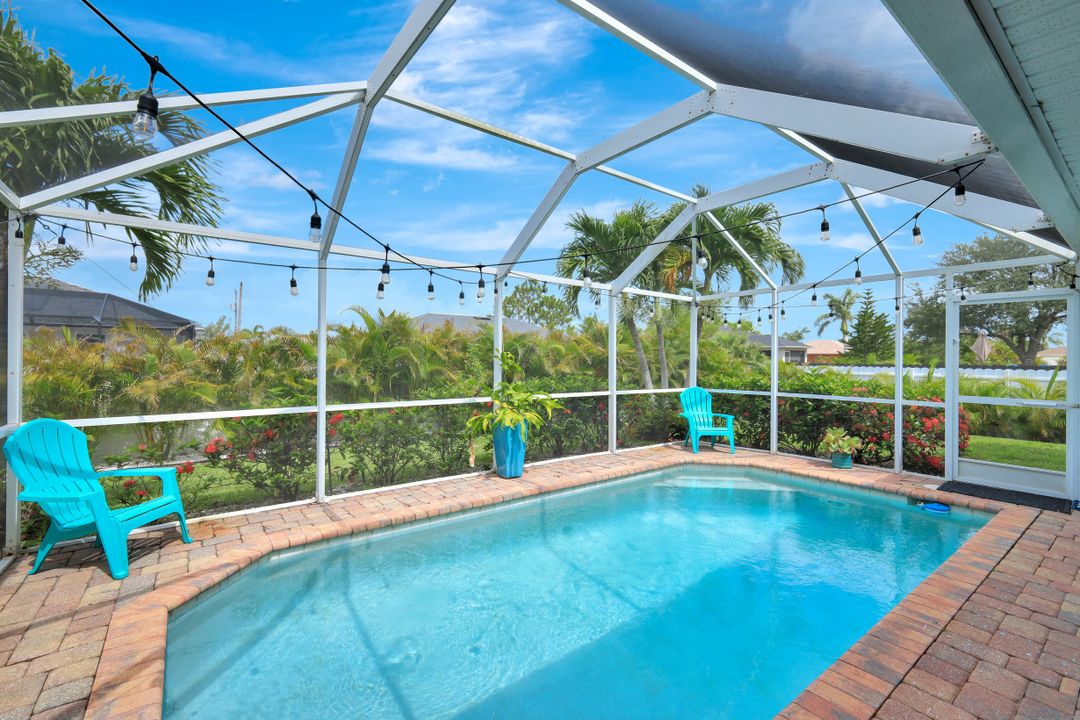 Welcome to your dream home! This beautifully UPDATED home has everything SWFL has to offer, starting with fresh exterior paint and a stylish brand new metal roof! This 4/2/2 residence with 1,712 sqft under air boasts a fresh, modern interior with new LVT flooring, stylish new fixtures, and high ceilings that create an airy, spacious feel throughout. Step into the heart of the home—the kitchen—where you'll find stunning new quartz countertops, a chic tile backsplash, and top-of-the-line stainless steel appliances. The elegant white shaker cabinets provide ample storage, while the large farmhouse sink adds both charm and functionality. The primary bathroom has just been updated in 2025, blending modern design with everyday comfort. Enjoy the best of Southwest Florida living with your own outdoor oasis. The screened-in lanai offers a perfect spot for relaxing or entertaining, overlooking the sparkling blue pool and pavered pool deck. The fenced-in backyard is a serene and inviting retreat, refreshed with brand new areca palm trees, ideal for sipping morning coffee or enjoying a game of tag with the kids. Several fruit trees add a delightful opportunity for fresh, home-grown produce, and an additional concrete pad is perfect for outdoor dining and grilling. This home is a true gem, combining modern updates with classic charm and exceptional outdoor living. PLUS: storm shutters for windows & located in Flood Zone X—no lender-required flood policy! Enjoy year-round outdoor activities, world-class fishing, and white sandy beaches right at your fingertips. Centrally located and close to EVERYTHING—don’t miss your chance to own your own slice of paradise. Call and schedule your private tour today!
