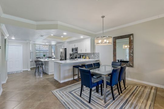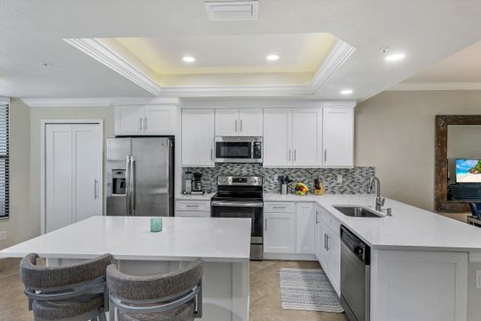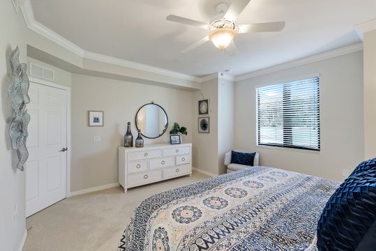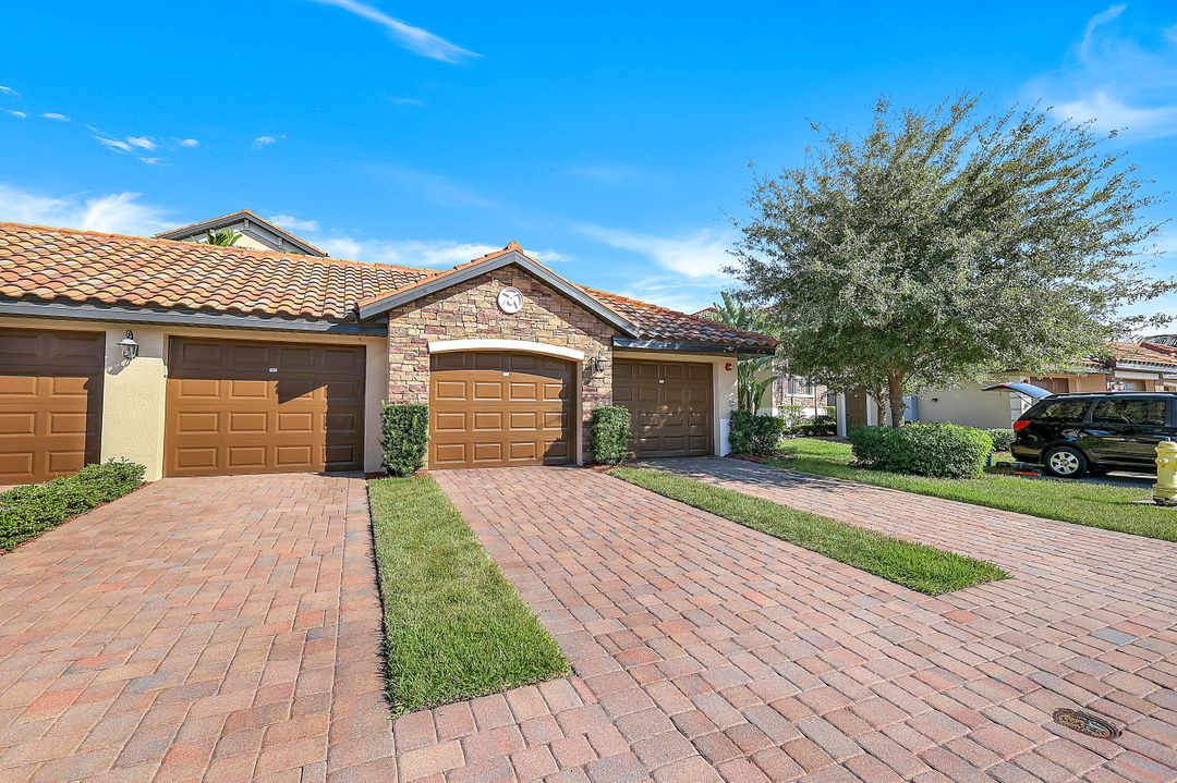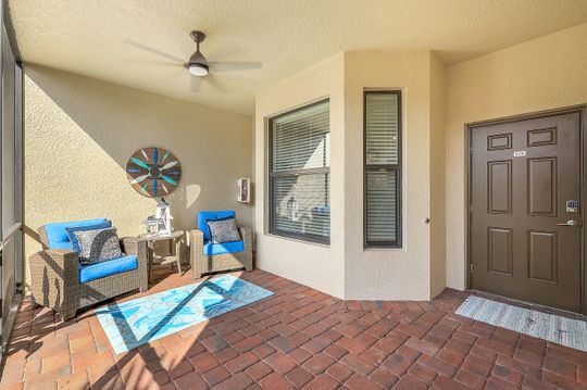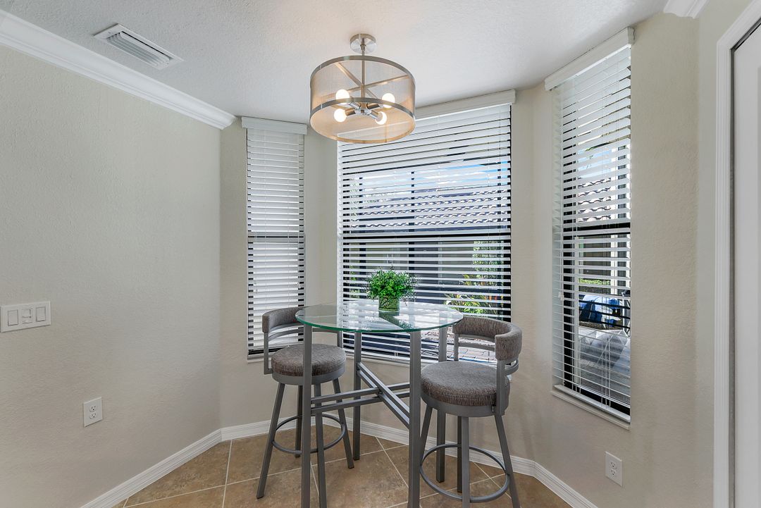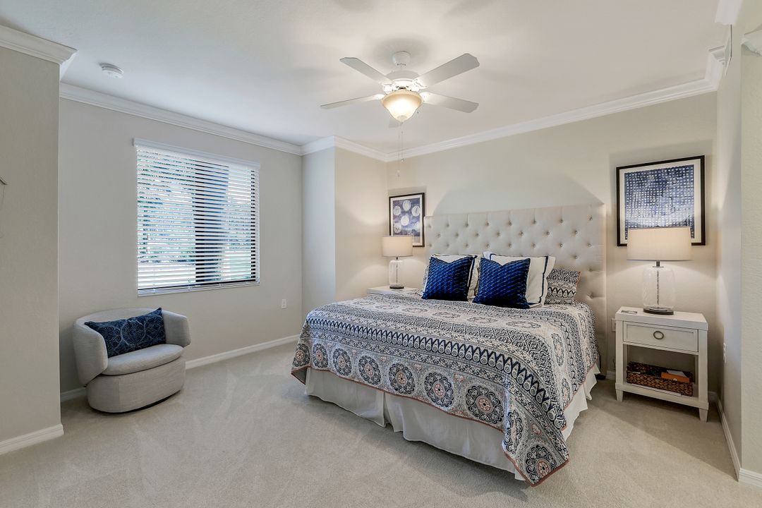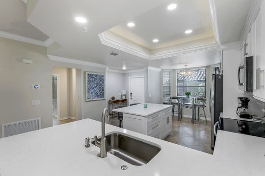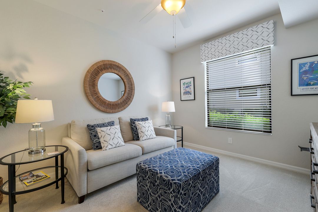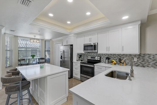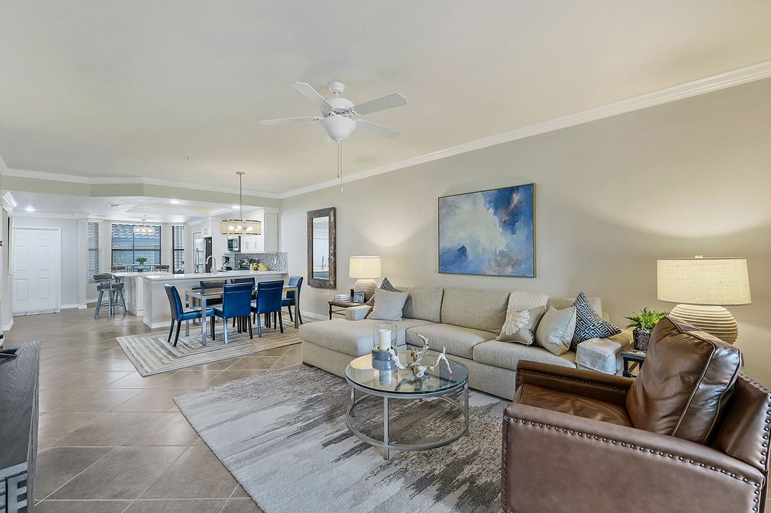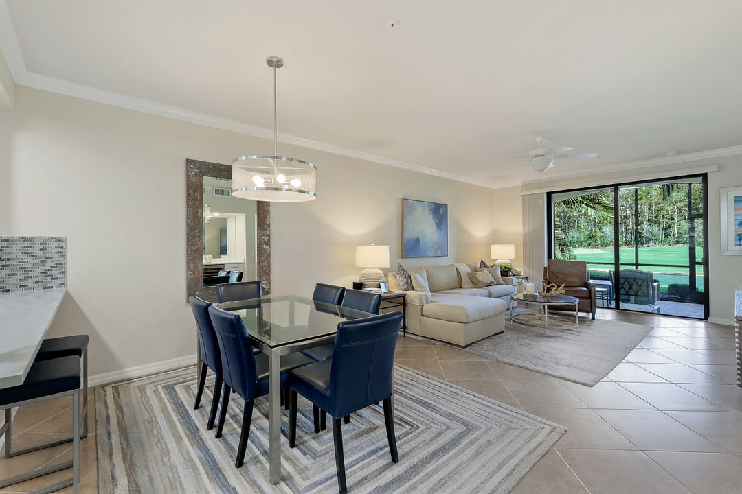 GOLF INCLUDED with this stunning, end unit veranda condo conveniently located on the first floor. Boasting breathtaking sunrise views over the golf course from your rear lanai, while the front lanai offers relaxing sunset views, both screened in. With 2 bedrooms, 2 bathrooms, and a flex room, this unit offers comfort and flexibility. The kitchen and baths have all been updated, featuring stylish white cabinets and beautiful quartz countertops. Additionally, the condo includes a one car garage just steps away and perfect for storing your Florida toys and auto. Amenity Rich Bonita National offers 18 competitive holes of golf with putting green and aqua range, lighted har-tru tennis courts, a state-of-the-art fitness facility, complete with exercise rooms. When it's time to relax, you can utilize the full service salon and sauna. For sheer fun there's the lagoon pool complete with waterfall, lap lanes, poolside cabanas and bar/grill offering chair service! Enjoy a more formal dining fare in the opulent clubhouse with game and meeting rooms, lockers and more!