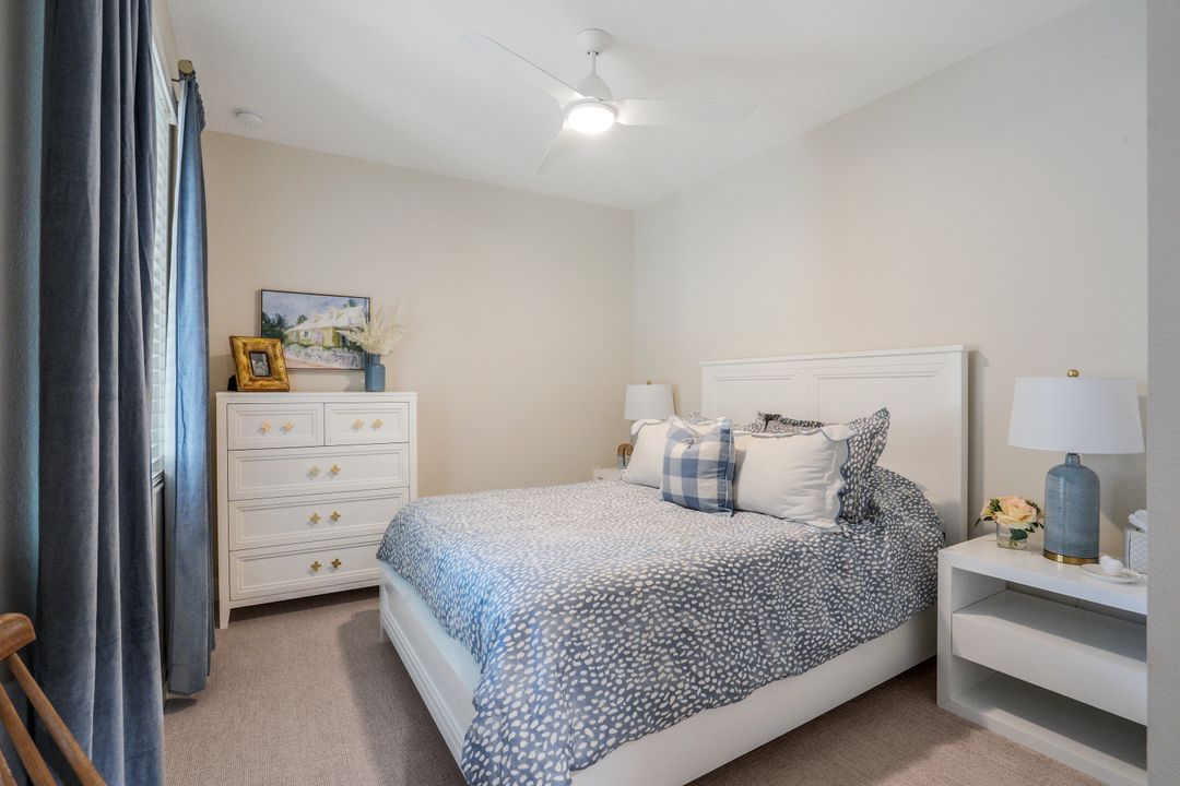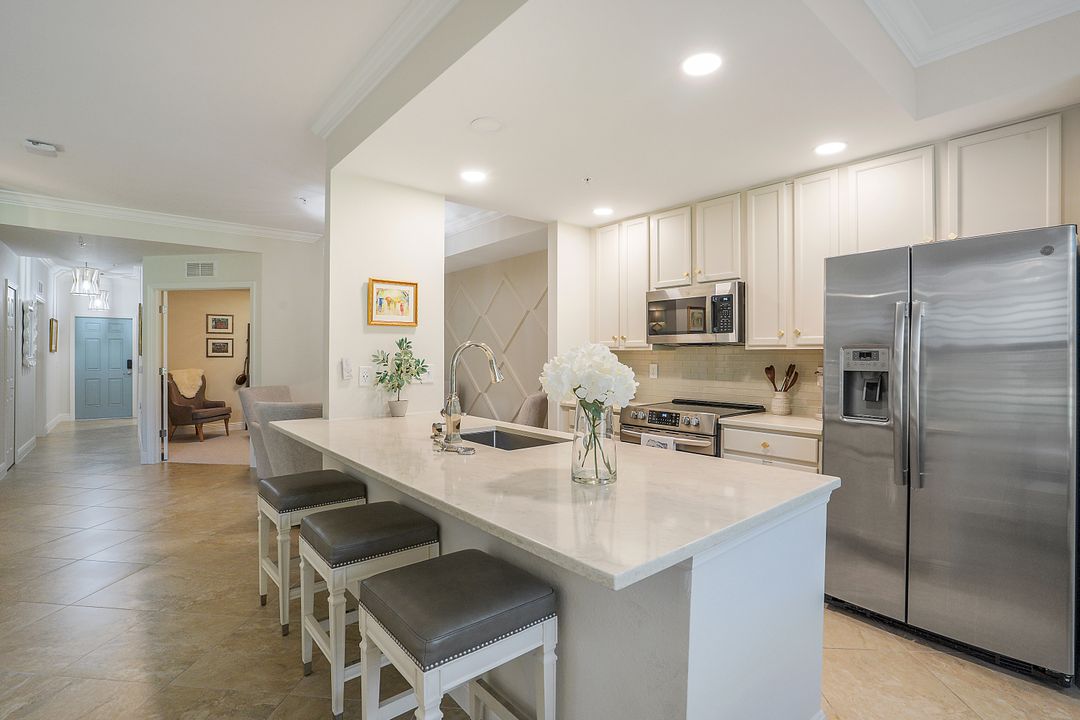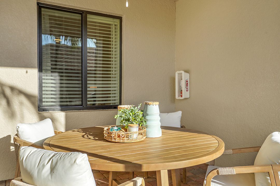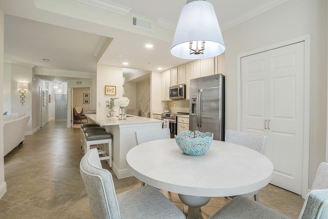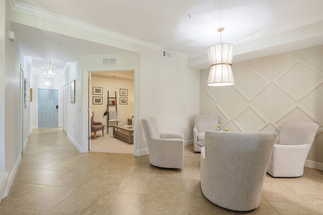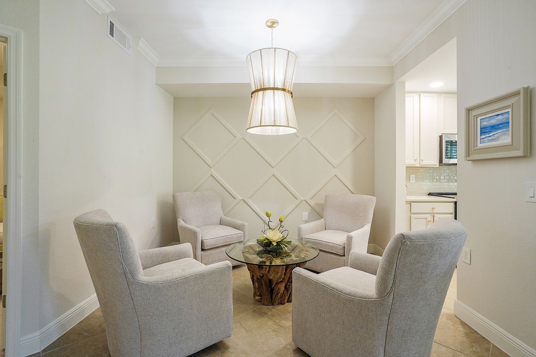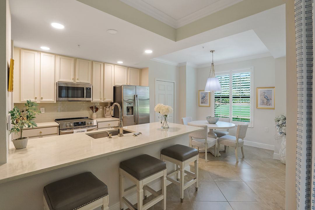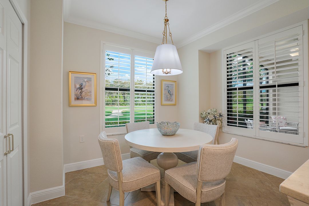 SOCIAL MEMBERSHIP. Welcome to the beautiful Bonita National Golf and Country Club! Nestled in a prime location, this veranda condo offers the perfect blend of elegance, social living and breathtaking views. As you step onto the rear facing lanai you'll be greeted by stunning morning vistas that will energize you for the day ahead. You will enjoy mesmerizing views of the golf course, sparkling water and lush preserve. While the front screened lanai provides a peaceful sanctuary to unwind and admire the vibrant sunsets. With first floor location, convenience and accessibility are at your fingertips. The attention to detail is evident throughout this immaculate home. No expense was spared in creating a space that resembles a model home. Custom millwork adds sophistication, and the upgraded white cabinets and countertops create a sleek and modern aesthetic. Designer finishes and custom lighting fixtures enhance the ambiance, giving each room a unique and luxurious appeal. The open floor plan seamlessly connects the great room, dining area, and kitchen, making it ideal for both relaxing and entertaining. This is more than just a home; it is a lifestyle. Furnished and ready to enjoy.