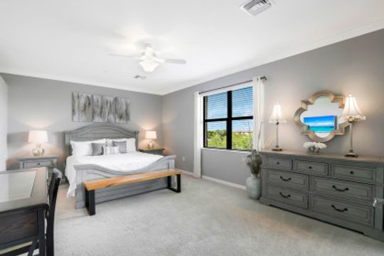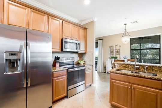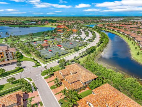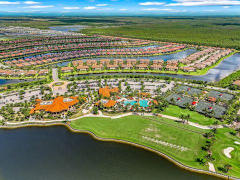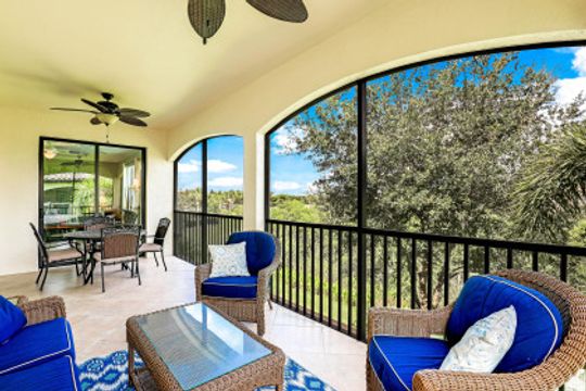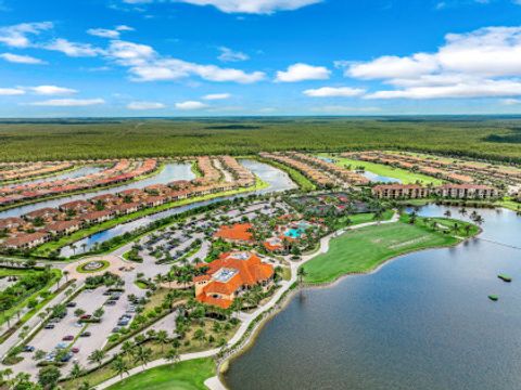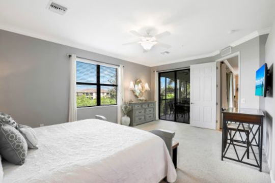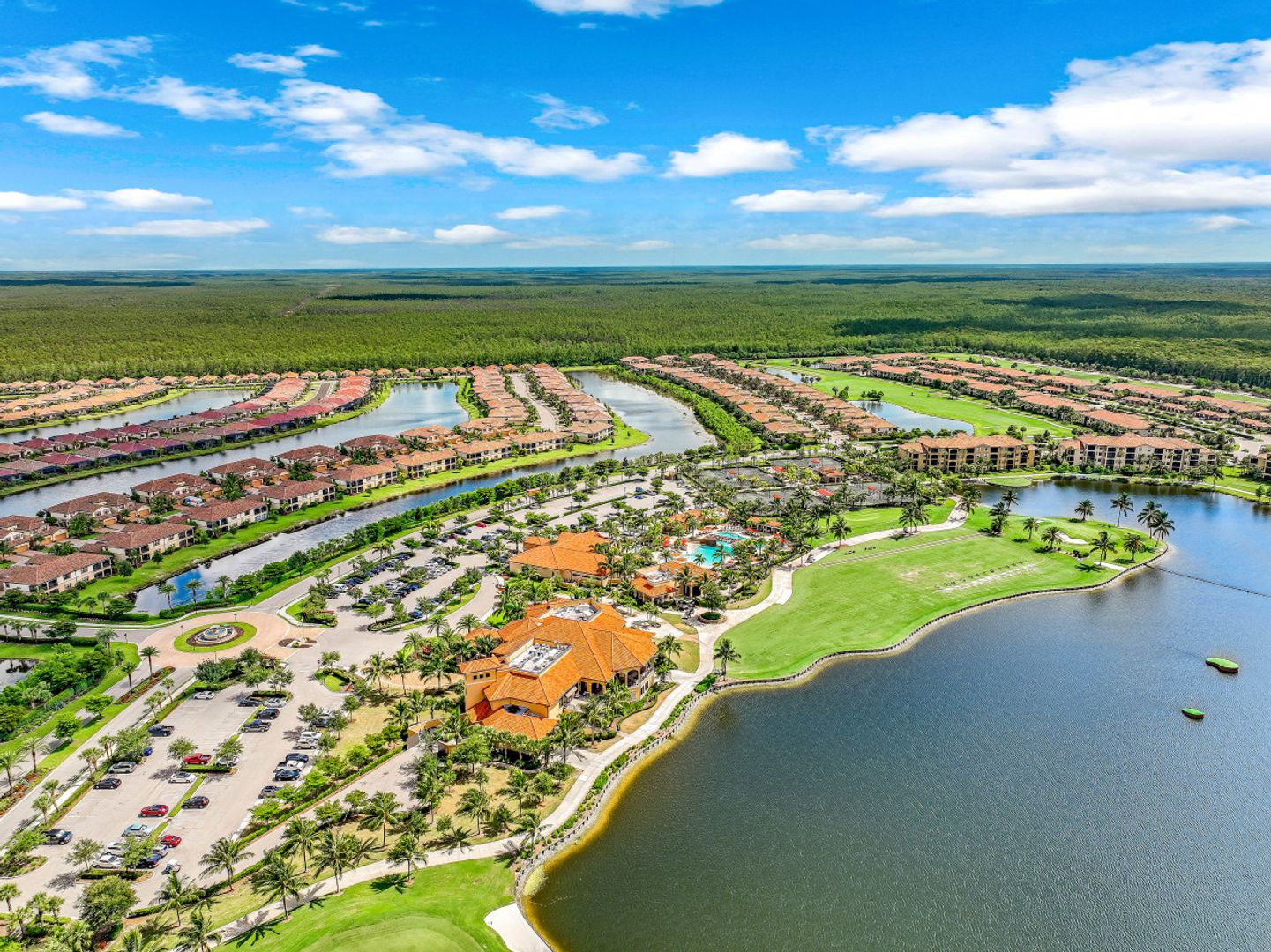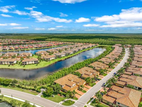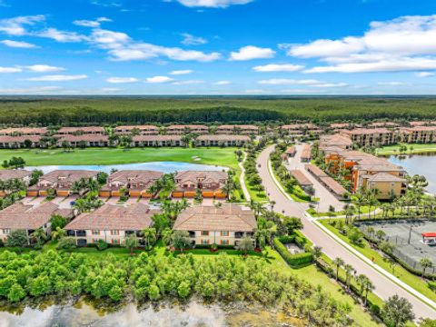 Welcome to your GOLF MEMBERSHIP coach home in beautiful Bonita National. This 2nd floor "Verona" floor plan unit is the largest floor plan available at 3 bedrooms and 2 full bathrooms. The unit is in pristine condition, and comes turnkey furnished. Enjoy gorgeous sunset views from your western exposure lanai with lake view from the 2nd story screened patio. What makes this unit so unique is the close proximity to Bonita National's world-class amenities. You can walk or bike to the 8 Har-Tru clay tennis courts, community pool, clubhouse, restaurant and cafe, U-TOPIA wellness spa, fitness center, and more. Unique features of the unit itself include a full 2 car garage with a 3rd golf cart bay, new A/C, new shower door enclosure, timeless furnishings, spacious floorpan, tile in the main living areas, and robust rental history.
