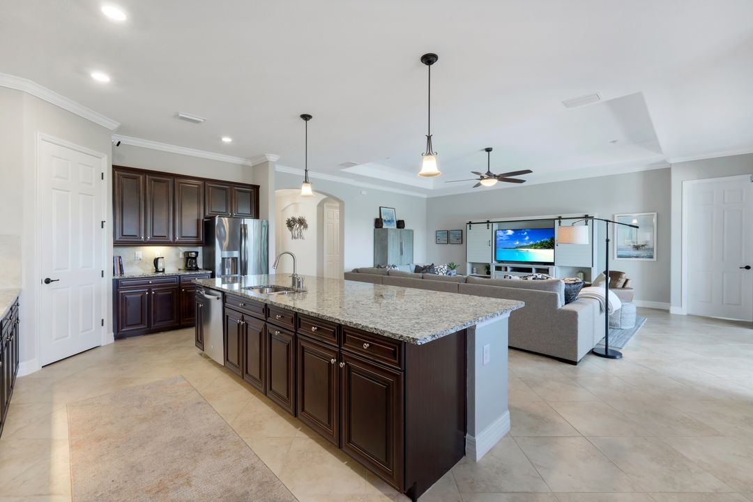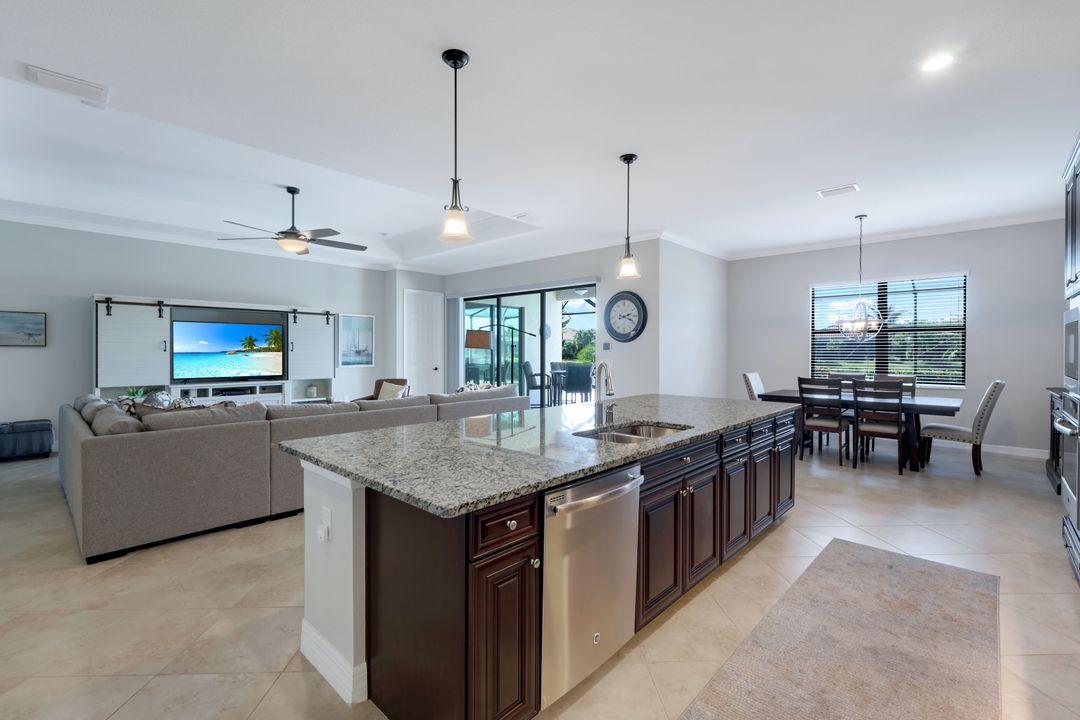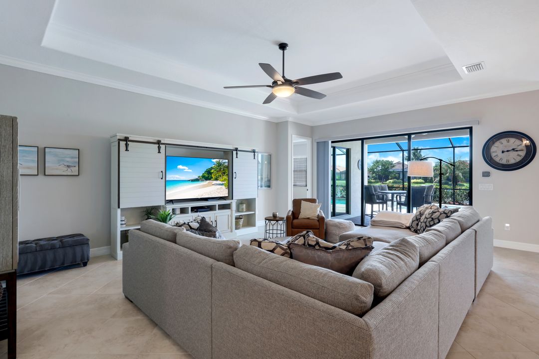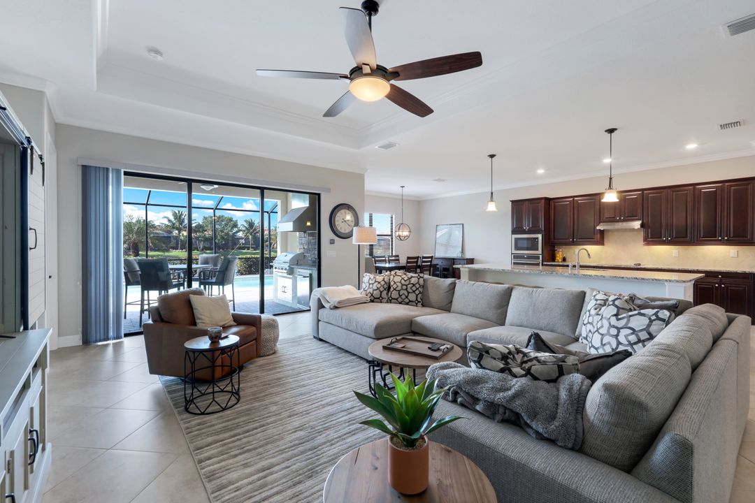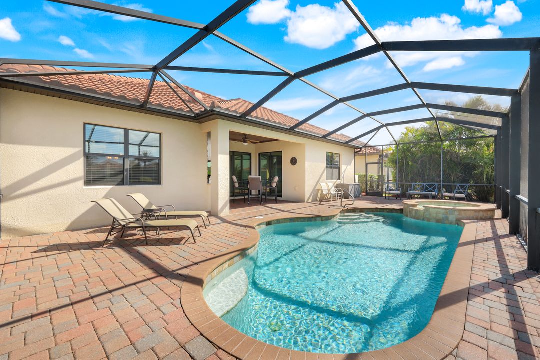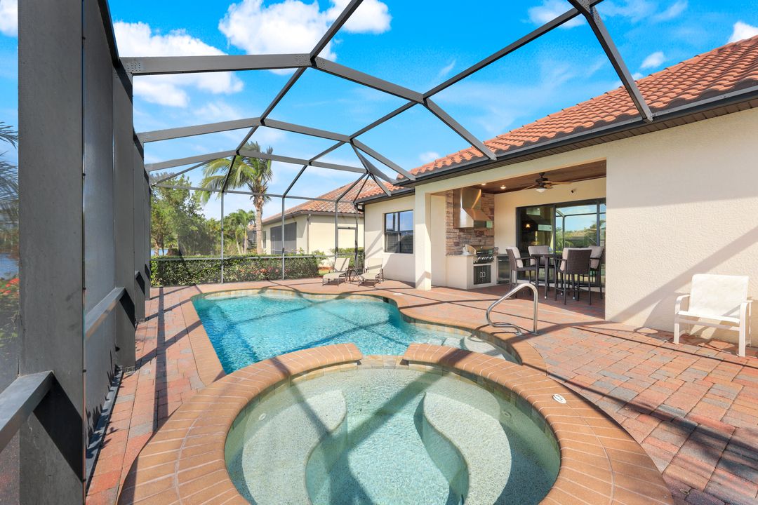 HUGE PRICE IMPROVEMENT!!! Social Membership is included with this absolutely beautiful and much coveted Summerville floorplan home. Enter through double doors to the lovely foyer offering sweeping views of the great room and incredible screened lanai to the lake beyond. Entertaining will be a breeze with a large kitchen island anchoring to the great room and formal dining room. The luscious primary suite offers two generous walk-in closets, and a wonderful bath oasis with a huge walk-in shower and double vanities. Each of the guest bedrooms is ensuite for maximum privacy and you and your guests will appreciate the split bedroom floorplan. The den is the perfect flex room ideal for office, exercise, play or yoga room. You are going to enjoy having a 3-car garage with plenty of room for two vehicles and toys! The amazing Western sunset views over the lake will be the perfect ending to the perfect day at Bonita National. Outdoor living at its finest with an outdoor kitchen, covered living space and the gorgeous pool w integrated spa, all located in the screened lanai. Amenity rich Bonita National is a superior way to spend your SWFL days, with a lagoon style pool complete with waterfall and lap lanes, poolside cabanas, bar/grill for relaxed nibbles and fresh beverages, a full fitness center with state-of-the-art equipment, exercise rooms and classes available, and then wind down at the full-service salon and sauna. The beautiful clubhouse offers a more formal fare for dining, meeting and game rooms and so much social activity there's fun and interest for all! Perfectly located, central to award winning sandy gulf beaches, downtown Bonita Springs, Fun on 5th in Naples, The River District in Fort Myers and easy access to RSW. Loads of shopping, dining, the arts, trails, and many more fun activities are easy destinations from this beautiful home.