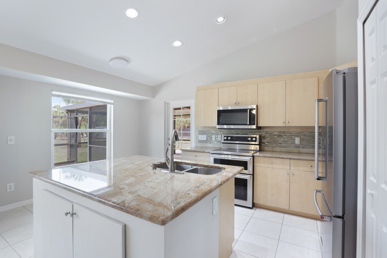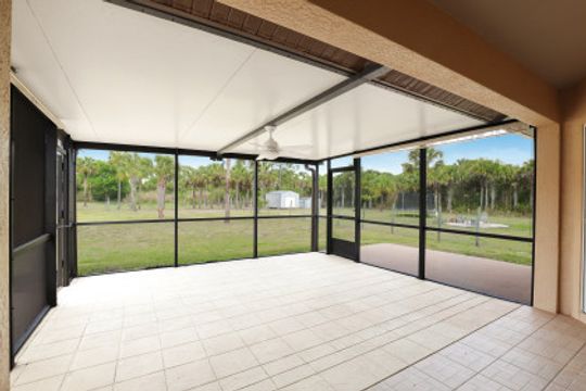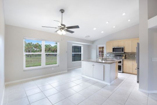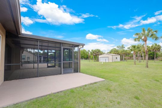 MOVE IN READY! This well maintained 3 Bedroom, Den, 2 Full Bath home offers almost 1700 sq ft under air and is situated on a mostly cleared 1.59 acre lot in Golden Gate Estates. When you walk in the front door you are greeted with vaulted ceilings which carry through the majority of the home making this home light & bright. The spacious kitchen features an oversized island, high end KitchenAid appliances, granite countertops, and tile backsplash. Fresh paint and brand new bedroom carpets. Other notable details include: HURRICANE IMPACT WINDOWS; Newer Roof (2018); Auxiliary AC (mini split) for the Master Suite; tile floors throughout the common areas; 2 car attached AND a separate 24'x25' extra storage building; New Hot Water Heater (2020); and more! The lot is fenced from the road to the back of the rear storage building.