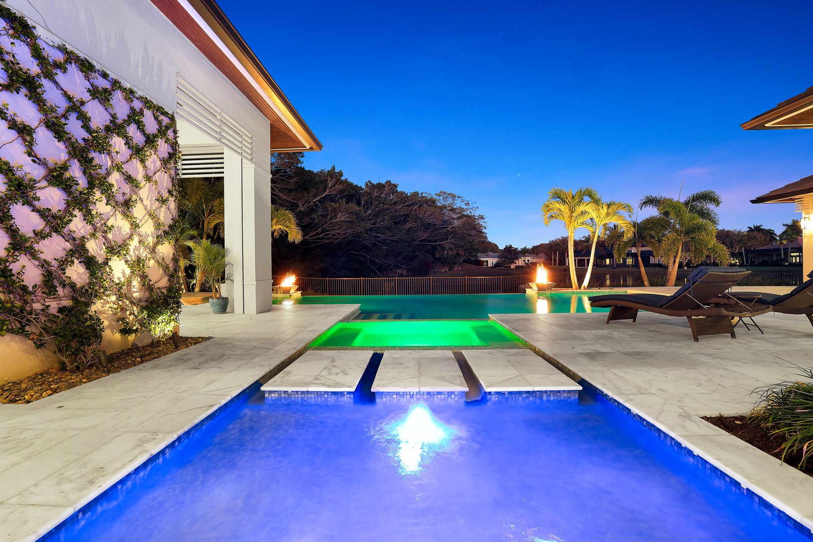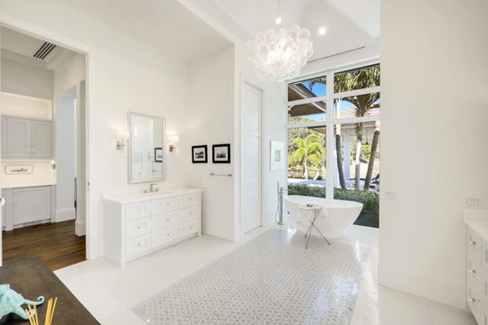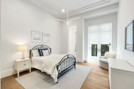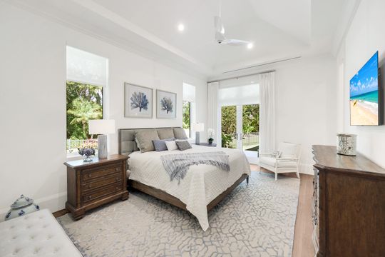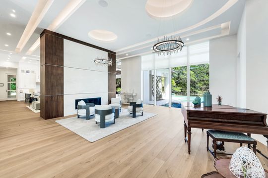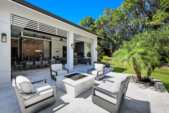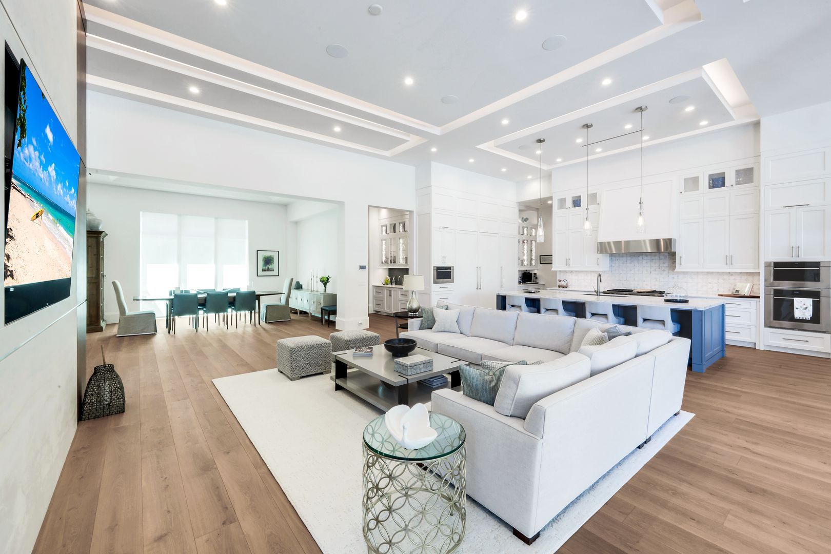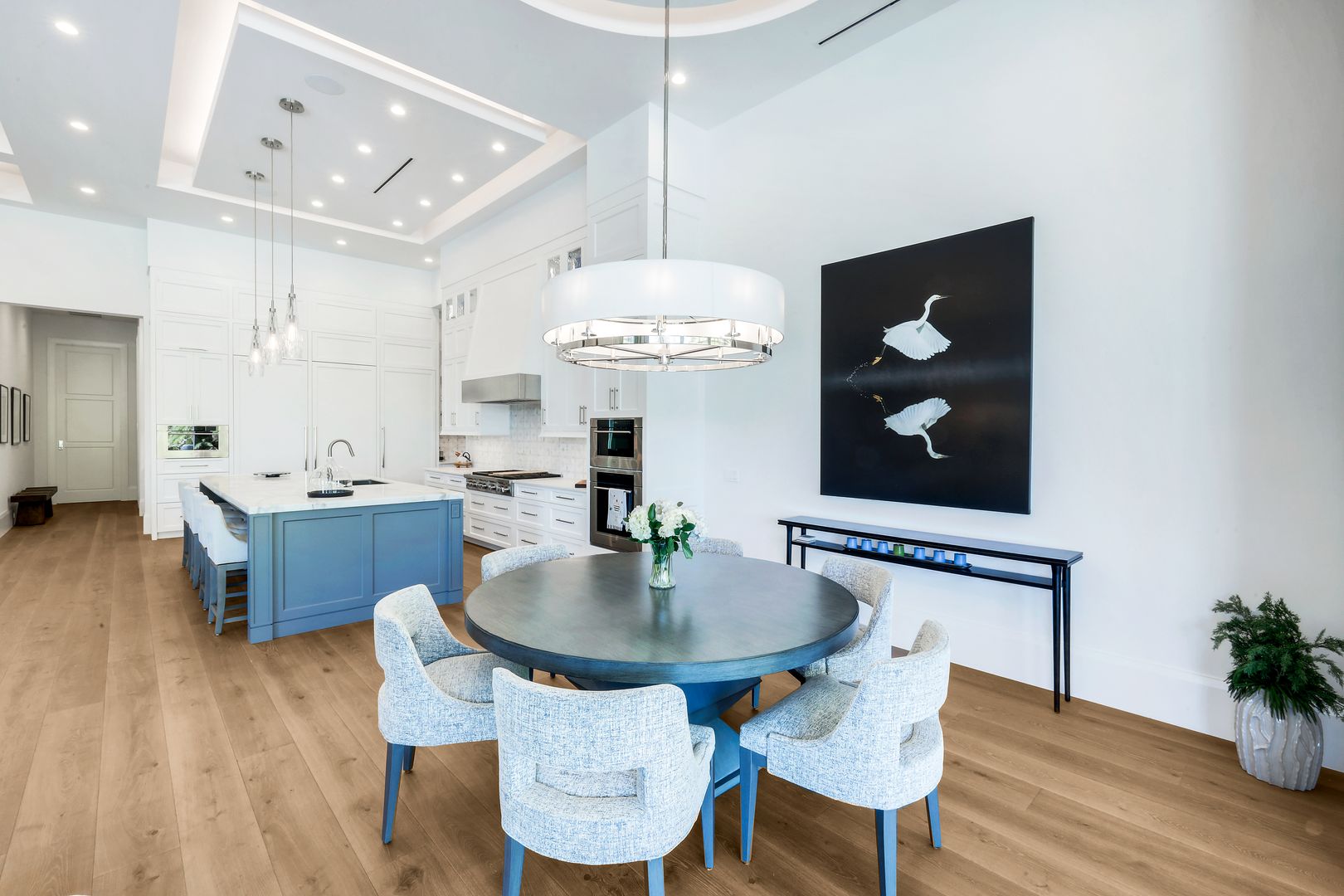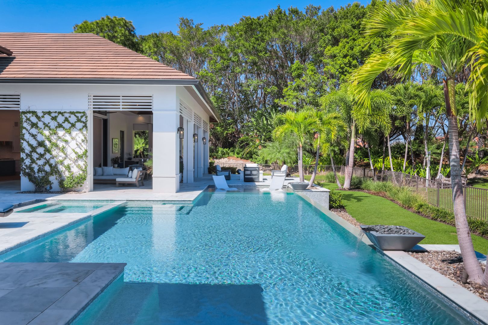 Nestled on a private and serene .73-acre lake-view cul de sac homesite within the prestigious Estates section of Grey Oaks Golf & Country Club, this single-story luxury estate built in 2021 by Diamond Custom Homes, artfully designed by Stofft Cooney Architecture, with interior design by Collins and Dupont, presents an unmatched fusion of contemporary design and resort-style living. Expansive glass doors and windows flood the interior with abundant natural light and a seamless indoor-outdoor flow framing picturesque lake and garden vistas.Inside, the residence spans over 6300 square feet and is graced by an elegant palette of premium finishes and custom detailing.Legno Bastone french oak wood floors adorn the interior, while polished nickel fixtures and quartzite and marble countertops imbue the space with refined character.The 14' volume ceilings boast impressive custom backlit treatments adding ambiance to the spacious split living area.The gourmet kitchen is appointed with custom cabinetry and top-of-the-line appliances, including dual Miele dishwashers, Sub-Zero refrigeration, a 48" Wolf gas cooktop, wall ovens, and steam oven.Entertaining is effortless, with features such as a hidden walk-in pantry, an integrated coffee bar, and a wet bar complete with ice maker and dual beverage drawers. A generously proportioned center island, topped with Carrara marble, offers ample workspace and casual dining. A wine bar and glass enclosed, climate controlled wine closet add to the entertaining experience. Adjacent to the kitchen, an enclosed flex space den with custom cabinetry, quartz counters, and extra workstation, presents an opportunity for a second office, workout room, or media/theater space. This den hosts a wall of french doors leading to a secluded outdoor patio space, an ideal nook for intimate conversation or quiet reflection. The luxurious primary suite features oversized picture windows framing a cozy seating area, a sumptuous marble-appointed bathroom, built in wet bar, and extensive custom closets. Outdoor living is at its finest where tumbled Carrara marble tiles surround the infinity-edge pool with integrated spa.The expansive covered living area features generous spaces for both alfresco dining and lounging beside the outdoor kitchen, gas fireplace, versatex ceilings, retractable screens, and a rainfall detecting auto hurricane shutter system for peace of mind. A convenient pool bath serves outdoor guests, while a cozy fire-pit lounge, detached pergola, and an ample pet friendly fenced grass area finish this exceptionally functional space.This extraordinary property, blending sophisticated finishes with unparalleled amenities, exemplifies luxury Florida living and offers the epitome of elegance, comfort, and refined style.Members of Grey Oaks Country Club experience world class resort style amenities, 3 18-Hole Championship golf courses, pickleball and tennis, state of the art fitness center, spa services, and multiple dining options.