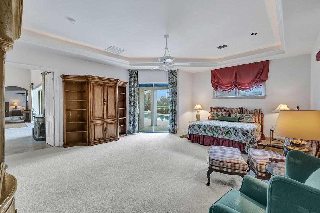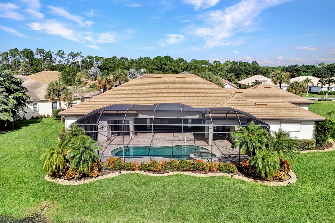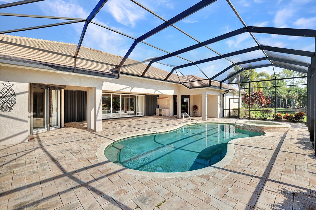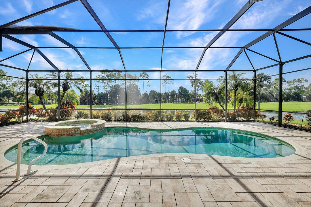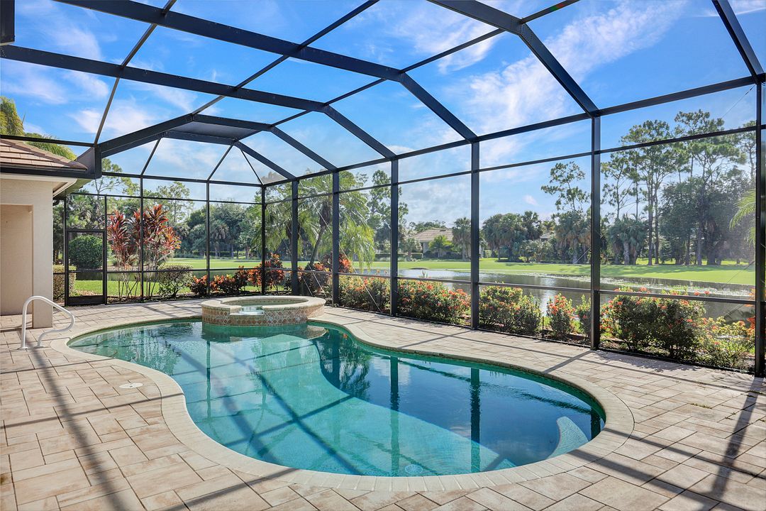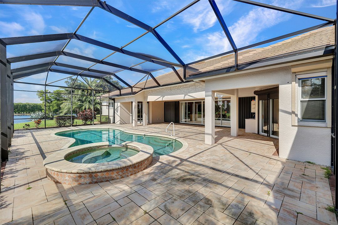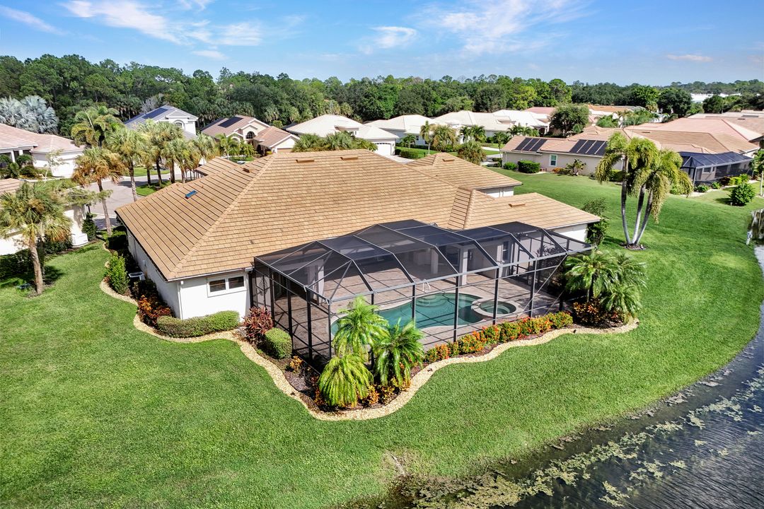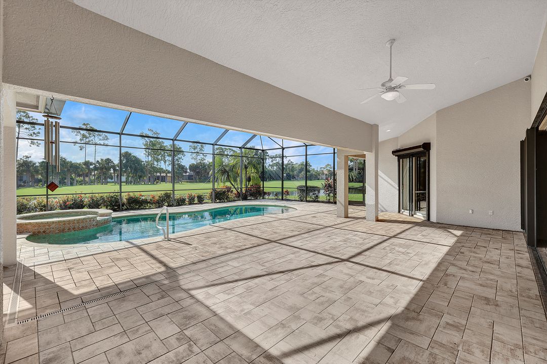 This stunning large home, situated on a spacious homesite, offers 4 bedrooms and 5 baths, including two luxurious main ensuites. The expansive open floor plan is perfect for modern living, featuring a new roof installed in 2021 and a complete whole-home generator for peace of mind. Electric hurricane shutters protect all windows and glass doors, ensuring safety and security. The outdoor living space is a true retreat, with an expansive lanai, a sparkling pool with a spillover spa, and breathtaking views of the serene lake and golf course. As a bonus, a golf membership valued at $50,000 is included, making this home a golfer's dream! Hunters Ridge is very friendly, casual, and offers a large variety of social activities. 24 hour security in our safe gated community. Only 6 miles from Barefoot Beach Preserve! Just minutes to the best shopping, dining, entertainment, and the RSW Airport. 18 hole championship golf course, golf simulators, large community swimming pool with food & beverage service, activity center, fitness center, clubhouse, beautiful dining room and grill room, poolside cafe, tennis courts, pickleball courts and much more!