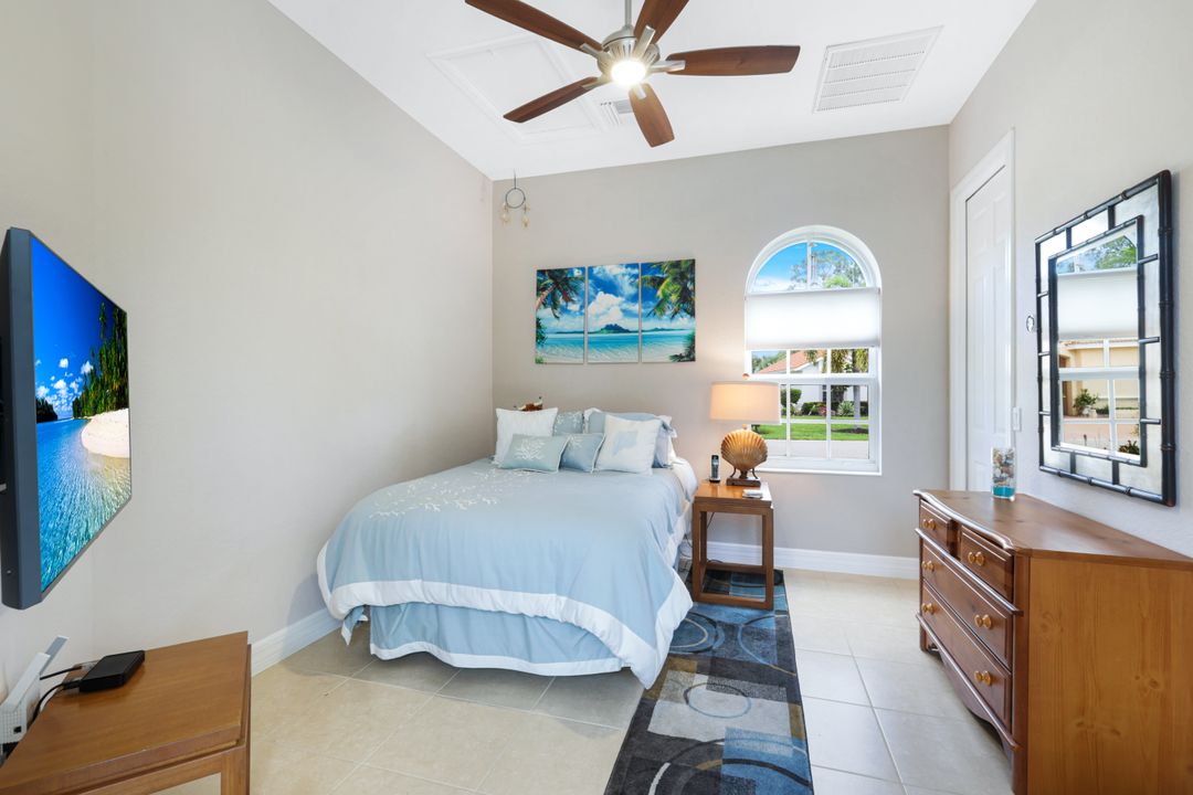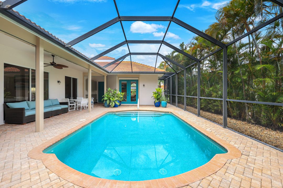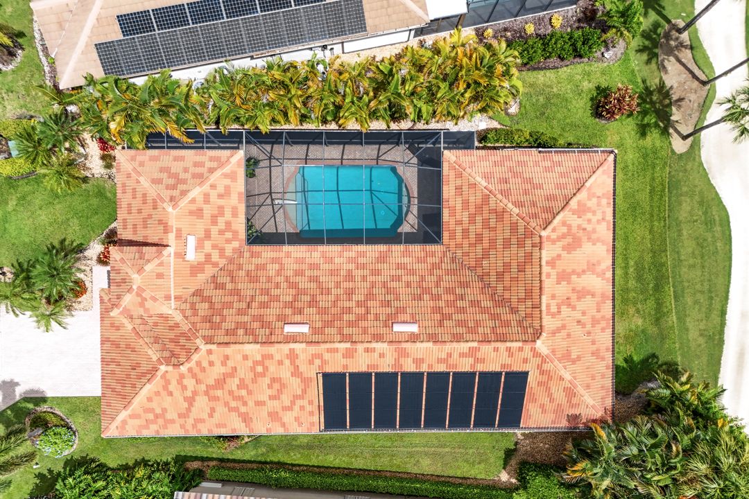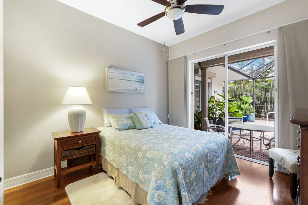 Elegant Courtyard Pool Home with Guest Cabana! GOLF MEMBERSHIP INCLUDED! This beautifully updated and furnished courtyard pool home features 2 bedrooms and 2 baths in the main house, plus a detached cabana suite with full bath ideal for guests or a private office. The kitchen shines with quartz countertops, powered granite sink, backsplash, under-cabinet lighting, added outlets, and a newer GE appliances. Bathrooms include upgraded shower doors, fixtures, and safety grab bars. The private pool courtyard has been enhanced with a new heat pump, filter, pump, timer, drain covers, and solar heating, completed alongside a new roof with gutters and back door. Protection comes with Imagen power hurricane shutters. Major mechanical updates include a new 5-ton A/C system for the main home, full cabana system replacement, smart thermostats, upgraded alarm sensors, and whole-home water filtration. Added touches: WiFi garage opener with backup battery, EV charging station, custom garage/lanai storage, and new Levolor blinds. Move-in ready and comprehensively upgraded, this home offers stylish comfort and effortless indoor-outdoor living. Hunters Ridge is a Private Golf & Country Club, not a bundled community with only 420 golf members, no Chelsea system and our golf member enthusiasts can play the course as often as they like! Hunters Ridge is very friendly, casual, and offers a large variety of social activities. Only 6 miles from Barefoot Beach Preserve! Just minutes to the best shopping, dining, entertainment, and the RSW Airport. 18 hole championship golf course, golf simulators, large community swimming pool with food & beverage service, community center, fitness center, clubhouse, beautiful dining room and grill room, poolside cafe, tennis courts, pickleball courts and much more!