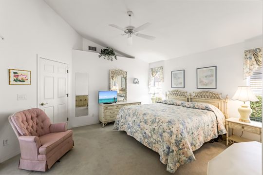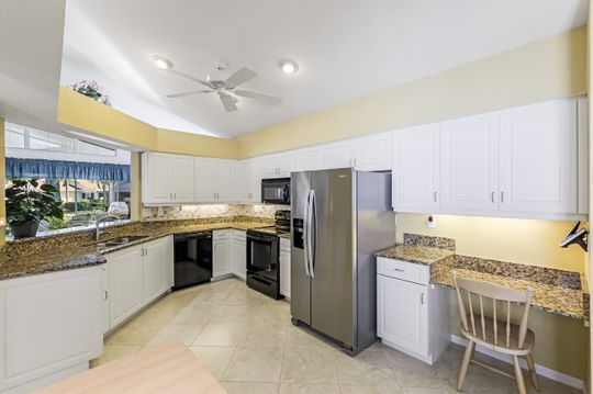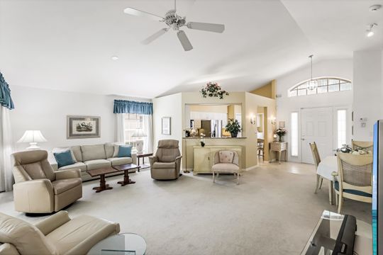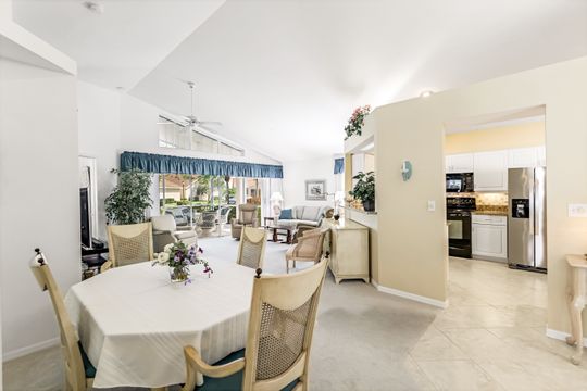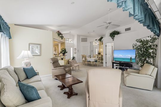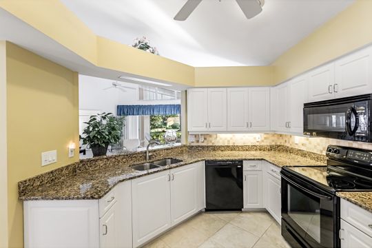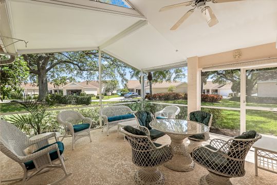 Lakesides prime location in North Naples ensures resident are in close proximity to the finest dining, entertainment, minutes for Naples pristine beaches and A+ school district. The home features an open floor plan with 3 spacious bedrooms, 2 full bathrooms, 2 car garage, an oversized driveway providing extra parking for family and guests. A welcoming entrance through a gated private courtyard, set with brick pavers and lush landscaping. From the courtyard you will access the foyer leading into the open living area. The main living area provides access to spacious southern facing covered lanai area perfect for entertaining family and friends, overlooking an inviting yard and landscape setting and partial lake view. The spacious master suite has walk-in closet, tastefully updated private bath, with large walk-in shower and vanity with dual sinks and quartz counter tops. The upgraded kitchen has built-in desk, plenty of cabinets, granite counter tops, large pantry and dining area overlooking the private courtyard. Lakeside of Naples is a gated community offering many amenities including private Clubhouse, with heated resort style pool/spa, tennis and pickleball courts, playground, fitness center, lap pool, walking trail and much more.