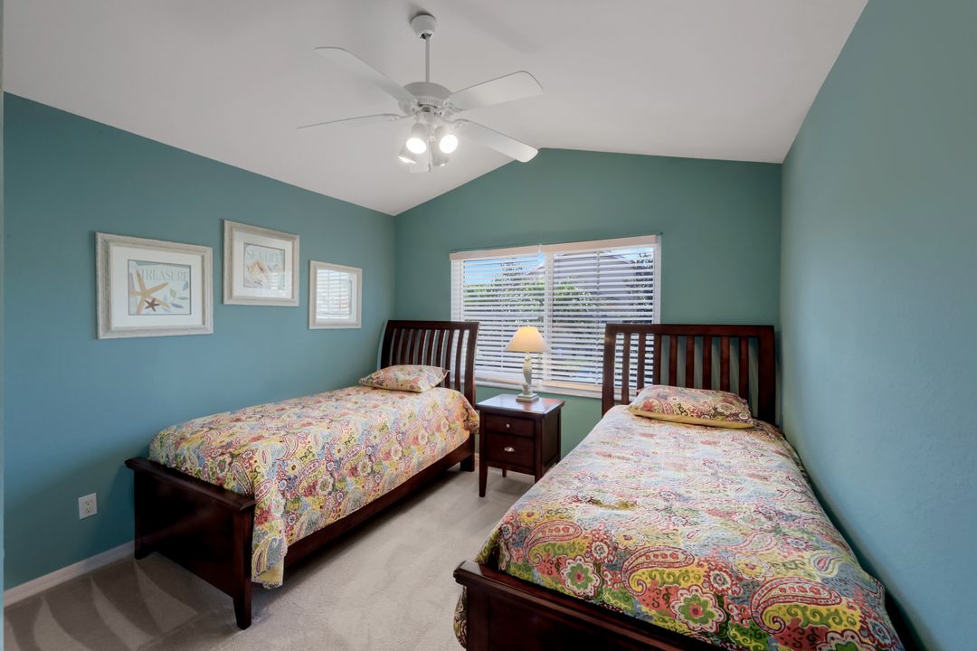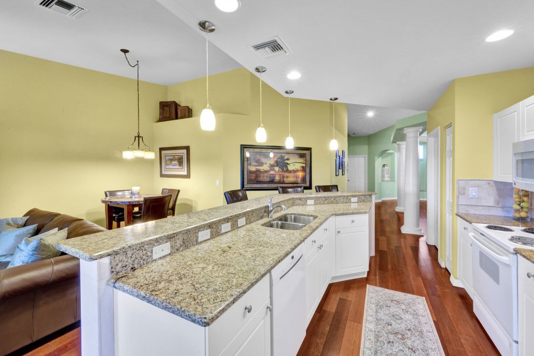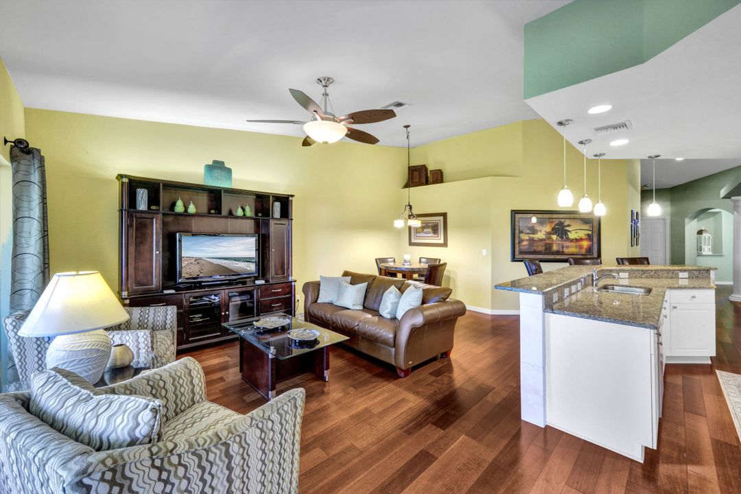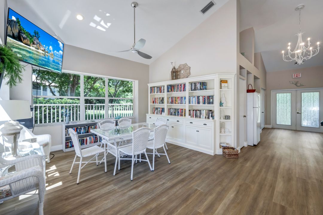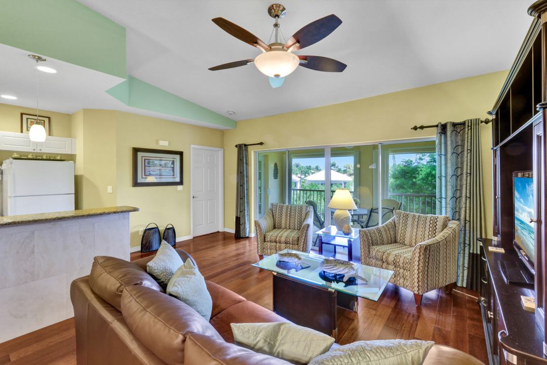 Captiva II in Carriage Homes at Woods Edge This spacious 3-bedroom, 2-bath second-floor condo with vaulted ceilings offers a wonderful opportunity to enjoy the Florida lifestyle in a friendly, social, and gated community just minutes from Bonita Beach. Offered furnished and turnkey, it’s ready to enjoy as-is or personalize to your taste. Warm colorful tones throughout the home create a cozy and welcoming feel. Designer touches include wainscoting along the staircase and crown molding in the family room, adding character and charm. The solid wood flooring in the main living areas adds richness, and the open layout offers plenty of space to relax, entertain, or create a home office or game area. Enjoy added peace of mind with impact-rated windows throughout, plus storm shutters on the lanai and primary bedroom for worry-free storm protection. The screened lanai provides a peaceful view of the protected nature preserve, a perfect place to unwind in privacy. The kitchen features classic white cabinetry and is ready to use or update to match your personal style. The primary suite includes lanai access, a walk-in closet, and an en suite bath with dual sinks and a walk-in shower. Two additional guest bedrooms are tucked away on the opposite side of the home for added privacy. An attached one-car garage adds convenience and extra storage for bikes, beach gear, or seasonal items. Located west of US-41, Carriage Homes at Woods Edge offers low HOA fees, a community pool, clubhouse, and a vibrant calendar of social events. With shopping, dining, and the Gulf beaches just minutes away, this home is ideal for full-time living, seasonal enjoyment, or your personal Southwest Florida retreat.