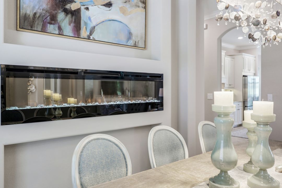 Two additional bedrooms share a beautifully designed bathroom. The expansive Great Room is filled with natural light, connecting to the sophisticated den and an elegant dining room with a built-in electric fireplace.