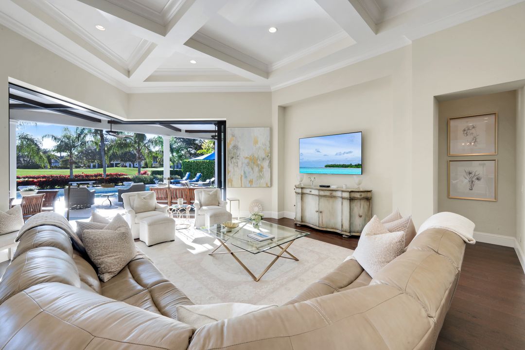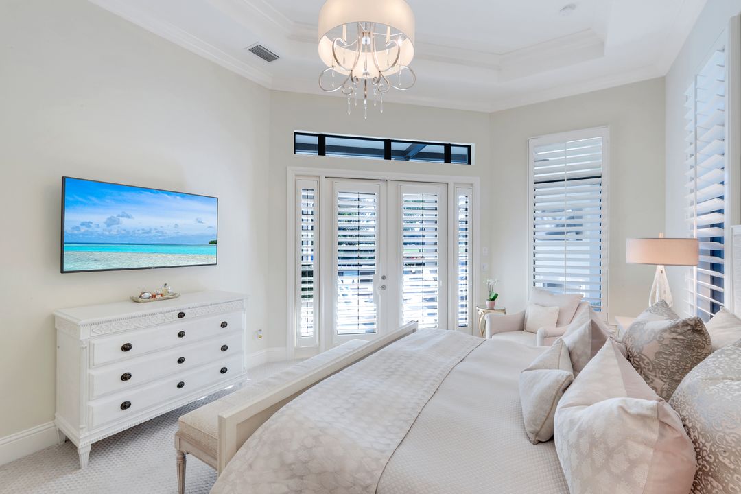 Be captivated while entering this luxury, beautifully furnished Marlowe model offering 4 ensuite bedrooms, 4 full baths plus powder room, den, and dining room featuring high tray ceilings, crown moldings, plantation shutters throughout, wood floors and neutral decor with one of the best oversized lots and views on the 4th green of the Lakes course in Escala neighborhood. Florida living at is best, relax in the salt water pool and spa. The split floor plan offers privacy for all..Spacious king owner’s suite with direct access to the outside lanai, features his and hers walk-in custom closets, dual vanities, and shower. The heart of the home is an entertainer’s dream with a 5-burner, gas countertop kitchen anchored by a large island perfect for entertaining family and friends; quartz counters, wall oven, microwave, stainless-steel appliances and walk-in pantry. Leading from the living room with impact windows and doors and pocket sliders is a fantastic outdoor living space offering stunning southwestern sunsets around the covered lanai, multiple sitting areas, built-in gas fireplace, beverage refrigerator, sink, grill, and al fresco dining. The remaining ensuite bedrooms, with 2nd king and 2 queens bedrooms offer serene peace and tranquility. Upgrades include: new Wi-fi controlled A/C, a Wi-fi controlled water heater, SpeedQueen commercial washer, sonos, mosquito misters and gas dryer. The 3 car garage features loads of extra storage and golf cart parking. Escala in Quail West includes lawn/pool maintenance as well as exterior pest protection. Amenity-rich Quail West, a hidden gem in North Naples, holds the exclusive Platinum Club® status which is the pinnacle of recognition for Private Clubs around the world recognizing the top 1% globally. The world-class amenities include two championship Arthur Hill golf courses, 100,000 sq ft elegant clubhouse with a variety of dining options, a racquet sports complex, tennis, pickleball, bocce courts, playground, indoor pool, hot tub, sauna, 12,000 sq ft state-of-the-art fitness center, full-service salon/spa and unending activities for every interest. Located Minutes to RSW, Downtown Naples, New Midtown Coming in 2026-2027, Mercato, & Waterside, and Don't Forget The Stunning Beaches! Immediate Golf Membership Available and Seller To Provide List of Exclusions and Inventory.
