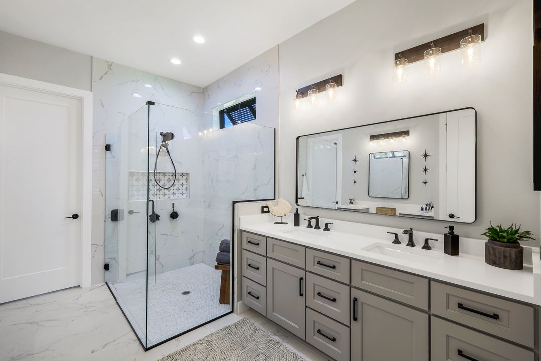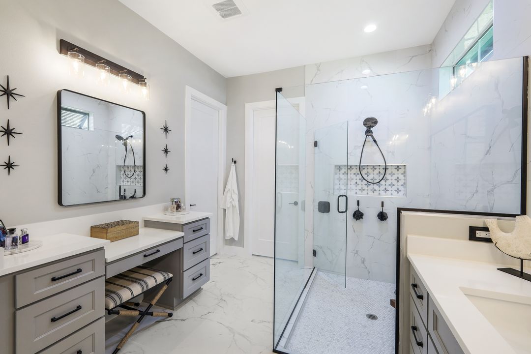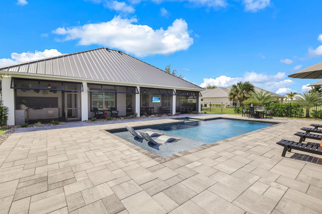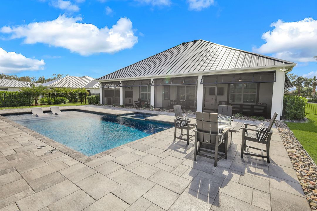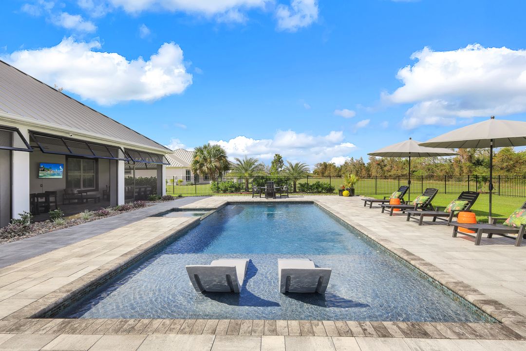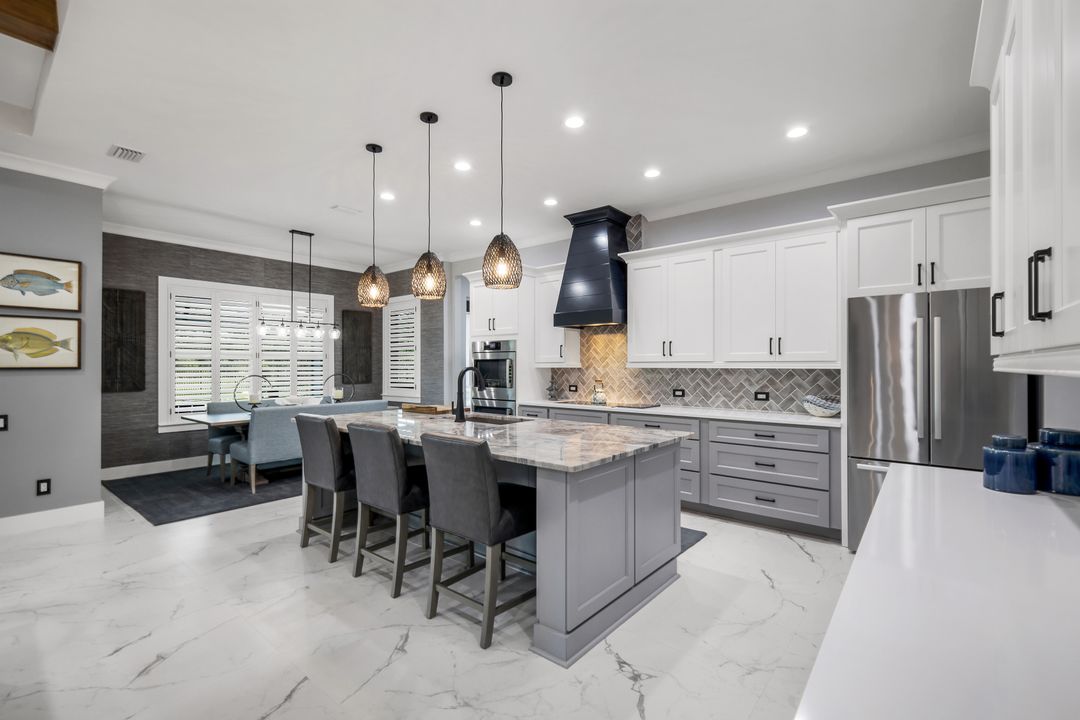 From the moment you enter, you’ll notice the careful attention to detail. All-impact doors and windows open into a bright, open interior featuring beautiful tile flooring and a stunning custom fireplace wall that serves as the heart of the great room. Above, custom wood beams span the ceiling, adding warmth and character to the space. Throughout the home, designer light fixtures, elegant trim work, and custom cabinetry elevate each room with style and function. Plus, abundant closet and storage space in every room makes organizing a breeze, adding a layer of practicality to the luxurious design.