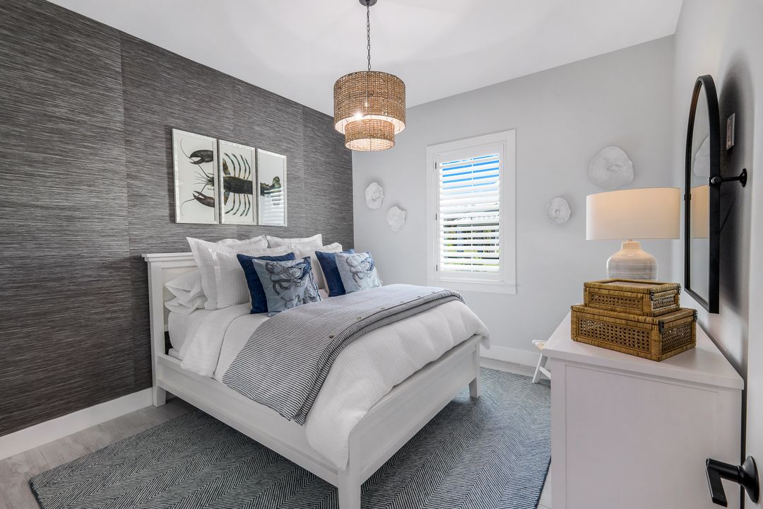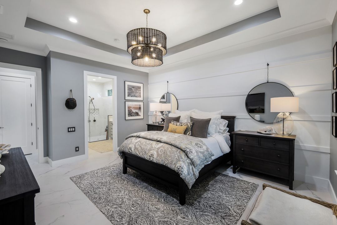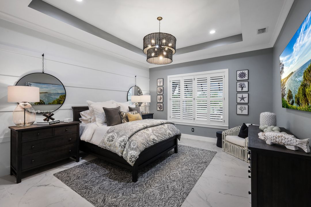 The master bedroom retreat offers an unparalleled sanctuary, featuring an elegant spa-like bath with dual vanities, an additional personal vanity area, a walk-in shower, and a generously sized walk-in closet for all your wardrobe needs. An impressive, private home office provides a sophisticated work environment, ideal for remote work or personal projects. Two additional luxurious full baths and two well-sized guest rooms, each with ample closet space, offer ultimate comfort for family and friends, ensuring everyone enjoys their stay in style.