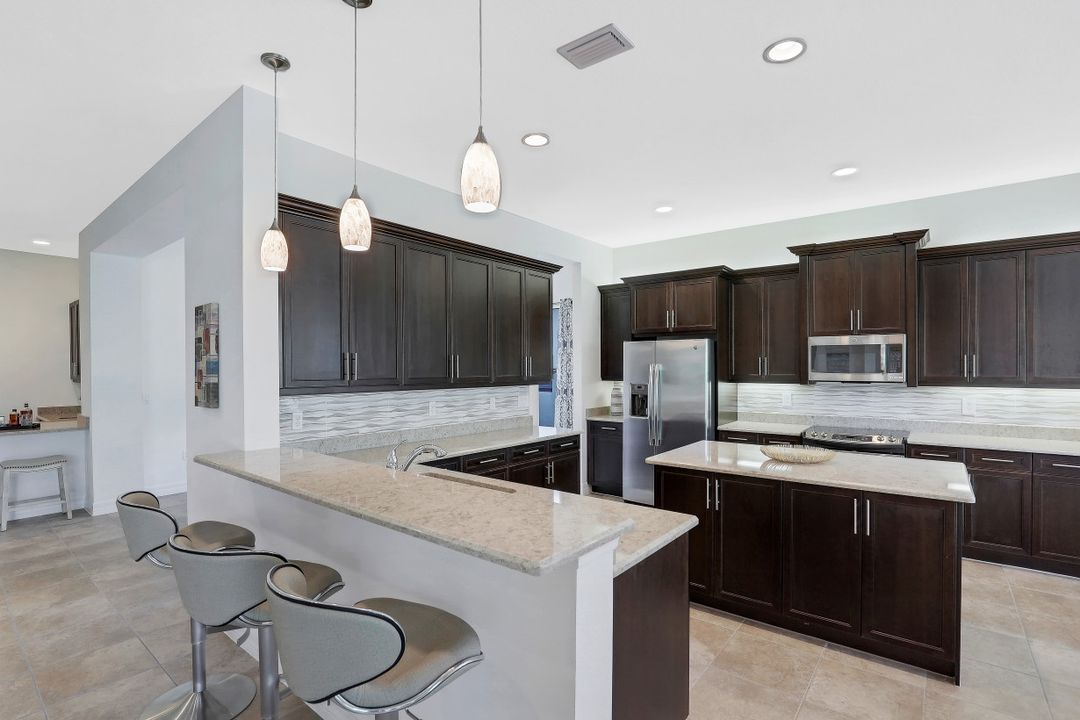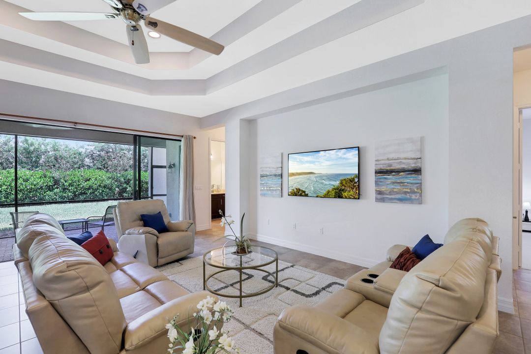 Enter the gated courtyard and open the double entry doors to be greeted to an entertainer's dream Carlyle floor plan home where the wet bar, spacious great room, formal dining and kitchen all flow nicely to the outdoors. Relax in the screened lanai with ample seating space overlooking a private backyard with plenty of room for kids to play, dogs to run or a future pool. The well appointed kitchen has a 42 inch raised counter, center island, abundant cabinets with ambient lighting, beautiful quartz counters, decorative backsplash and upgraded stainless appliances. The unique Club Room works well as an office, guest space or extra living room. The master suite has a sitting area, His & Her walk-in closets and a luxurious bath. Both guest rooms have walk-in closets and en-suite baths. Riverstone offers a social, vacation-inspired lifestyle for all ages. Located in North Naples & in an "A" rated school district. Recreation area includes a fitness center, social hall, resort & lap pools, spa, 5 Har-Tru tennis courts, basketball & pickleball court and tot lot. With a full-time activities director it is easy to make new friends.
