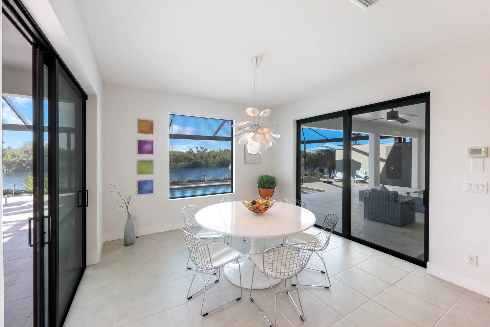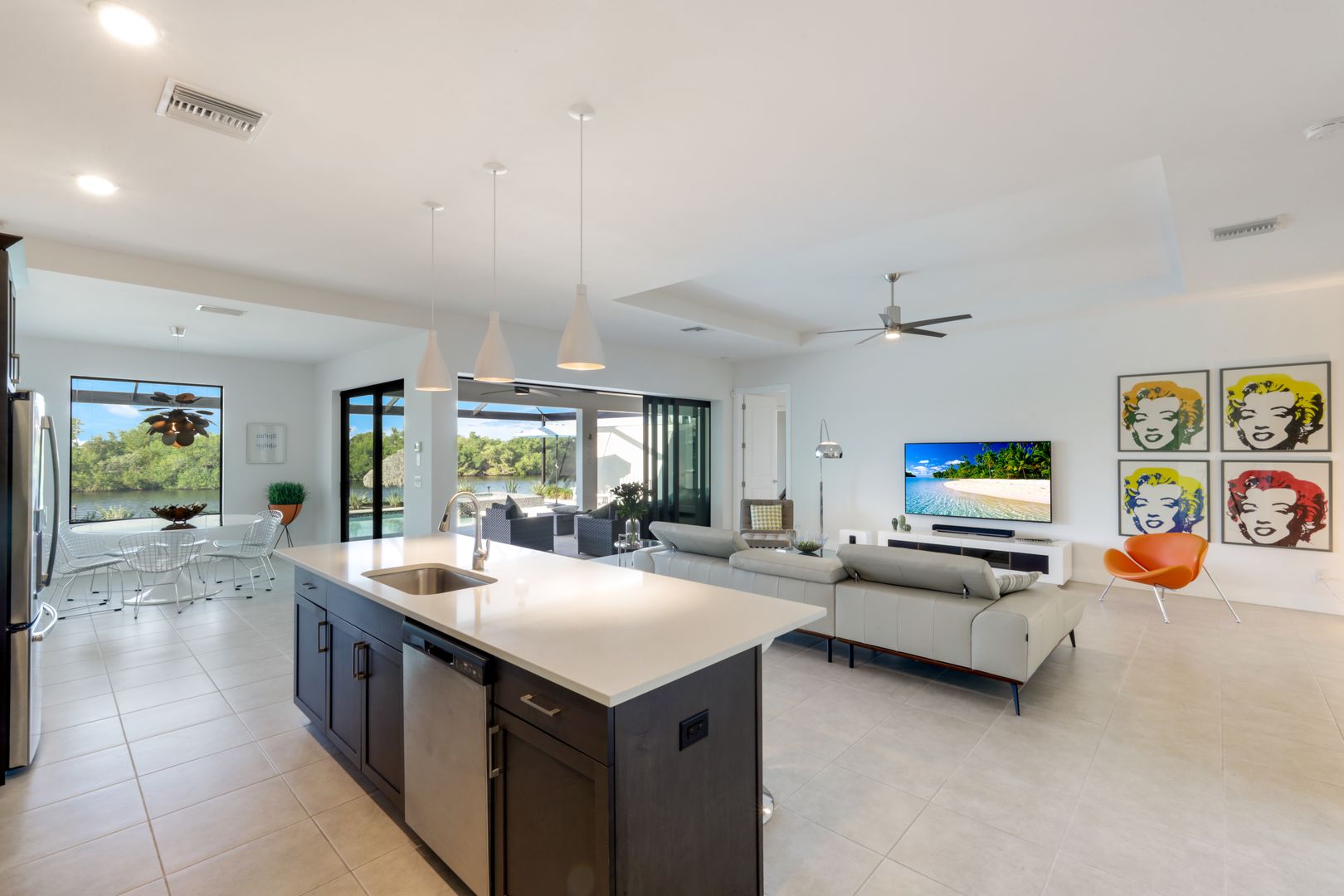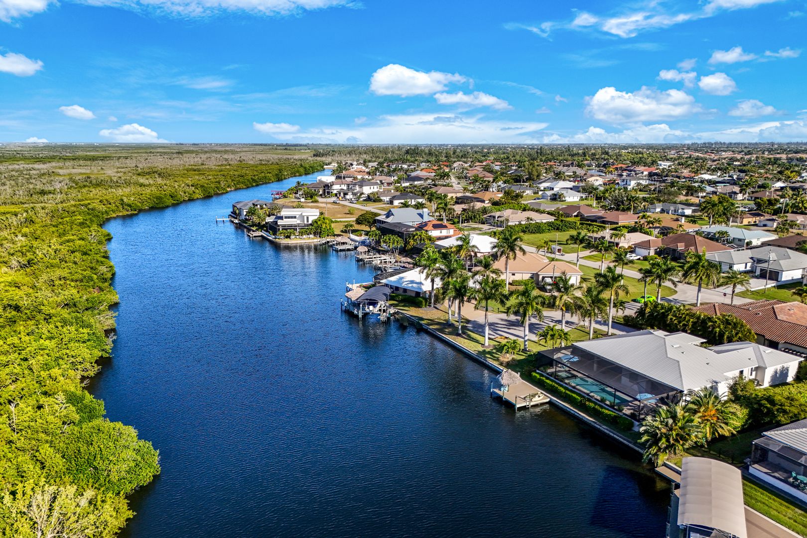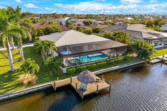 Experience a quieter kind of luxury in this Direct Gulf-Access Home with panoramic views of the Spreader Waterway and Conservation Nature Preserve. Custom-built by renowned luxury home builder Aubuchon Homes, perfectly positioned on an oversized .36-acre corner lot at the end of a peaceful cul-de-sac. Offering 155 feet of seawall (nearly double the frontage of standard lots), this rare waterfront estate captures panoramic views of the 200 ft+ Spreader Canal, uninterrupted preserve scenery, and complete privacy with no neighbors in sight. It’s the ultimate retreat for those seeking tranquility, nature, and effortless access to world-class boating, fishing, and waterfront dining. Inside, nearly every room showcases long-water and preserve views, blending modern luxury with a subtle touch of retro charm. Spacious living areas are filled with natural light, and the thoughtfully designed floor plan includes a primary suite and a junior suite, ensuring privacy and comfort for you and your guests. With 3 bedrooms, a private den/office, and 3 full baths, the home offers flexibility for hosting, working remotely, or simply unwinding in total serenity. Offered furnished - move right in and start enjoying immediately! Designed around Southwest Florida’s iconic indoor/outdoor lifestyle, the home features a brand-new panoramic screen enclosure, an expansive travertine lanai, and a resort-style pool area with a heated pool & spa ideal for staying active and swimming laps or simply relaxing waterside. Enjoy unforgettable evenings under your tiki hut, quiet afternoons on your private dock, or rinse off after a day on the water in the open-air outdoor shower. A rarely found SW exposure! With SW exposure, your pool area is bathed in sunlight throughout the day, delivering spectacular, postcard-worthy sunsets every evening. Two covered outdoor living areas create distinct spaces for entertainment and relaxation, one ideal for al fresco dining, the other for lounging breezily by the water. Whether you’re watching dolphins cruise the canal, admiring the vibrant birdlife of the protected preserve, or enjoying a quiet sunset cocktail, every moment feels like a natural escape. Best of all, while the home feels secluded and tucked away in nature, you're still only a few minutes from top restaurants, local cafés, grocery stores, boutique shops, and daily conveniences - offering the perfect blend of privacy and accessibility. With direct sailboat access and no bridges, you can head out to Sanibel, Captiva, Fort Myers Beach, or the Gulf directly from your backyard. Recent Improvements Include: New Air Conditioning installed in June 2025; New Pool Screen and Cage installed in April 2024; New Pool Pump installed in January 2023; New Pentair Intellichlor IC20 Pool salt cell installed in January 2025. Beautifully maintained and a private luxury oasis that feels like a vacation every day.