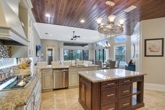 Built in 2015, this impressive "Dubonnet Grande" offers almost 5000 Sq Ft, 6 Bedrooms+Loft, 6 Baths, 3 covered lanais and is situated on a private, oversized lot (1/3 acre)! You will be impressed the moment you walk in the door to 20' ceilings, floor to ceiling windows, tile & wood floors throughout, rich moldings, custom kitchen including built-in refrigerator, wall oven, and wood ceiling detail! The Master Suite is on the first floor and upstairs offers three bedrooms, loft, and Bonus Room/6th bedroom with balcony, full bath, and WIC. There is also an additional guest room and two full baths on the ground floor. Outside, you will find a massive 20'x34' heated pool with raised spa and 1500 sq ft of deck space for sunbathing and entertaining family & friends. Riverstone offers new modern living along with an amazing clubhouse, which features a Resort Style Pool, Lap Pool, Hot Tub, Kiddie Water Park, Outdoor Party Pavilion, Tennis Courts, Tot Lot, A/C Indoor Sports Court, Soccer Field, Social Rooms, Billiards Room, Dance Studio, & more! Riverstone is conveniently located just 5 min from I75, 20 min to the Beach, and 20 min to 5th Ave/Coconut Point/RSW Airport.