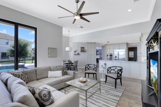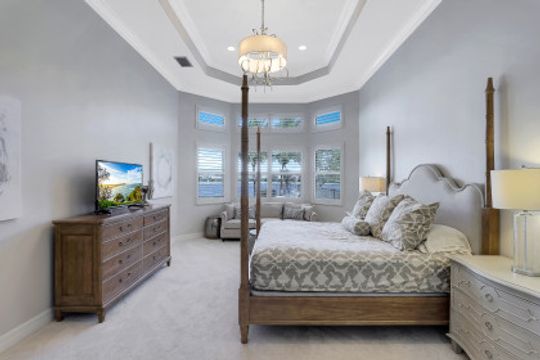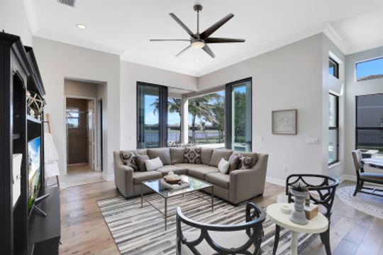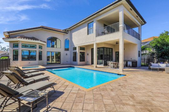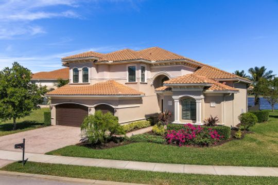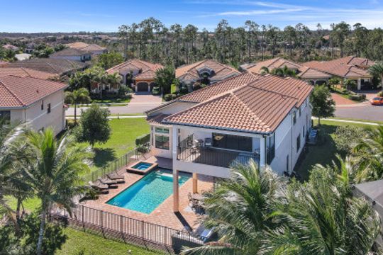 Built in 2015, this impressive "Dubonnet Grande" offers almost 5000 Sq Ft, 4 Bedrooms+Den+Loft+Bonus Room, 6 Baths, 2 covered lanais, and is situated on an oversized lot (1/3 acre) overlooking the lake! You will be impressed the moment you walk in the door to 20' ceilings, floor to ceiling windows, wood floors, rich moldings, custom kitchen including Monogram built-in refrigerator & wall oven, and zero corner sliding glass doors. The Master Suite is on the first floor and upstairs offers three bedrooms, loft, and bonus room with balcony and full bath. Outside, you will find an oversized heated pool/spa and ample deck space for sunbathing and entertaining family & friends. Other fine appointments include IMPACT WINDOWS & DOORS, wet bar, plantation shutters, and more! Riverstone offers new modern living along with an amazing clubhouse, which features a Resort Style Pool, Lap Pool, Hot Tub, Kiddie Water Park, Outdoor Party Pavilion, Tennis Courts, Tot Lot, A/C Indoor Sports Court, Soccer Field, Social Rooms, Billiards Room, Dance Studio, & more! Riverstone is conveniently located just 5 min from I75, 20 min to the Beach, and 20 min to 5th Ave/Coconut Point/RSW Airport.