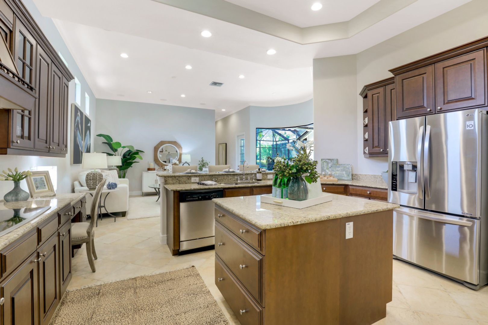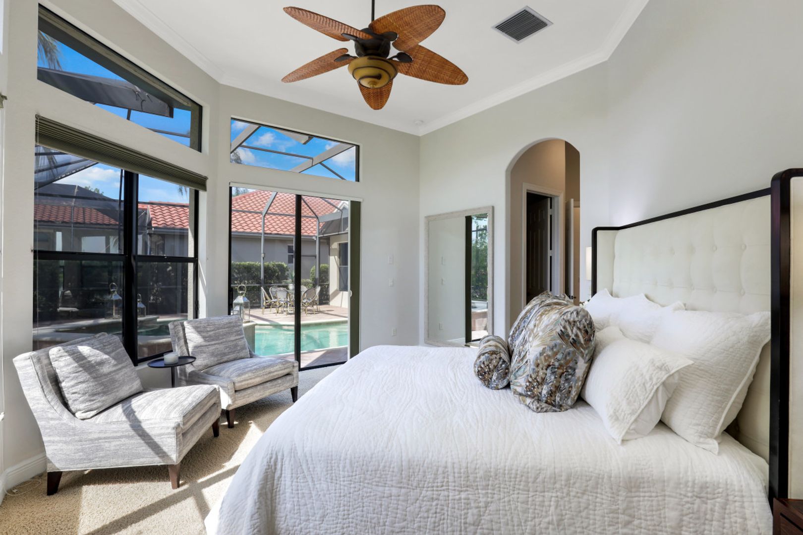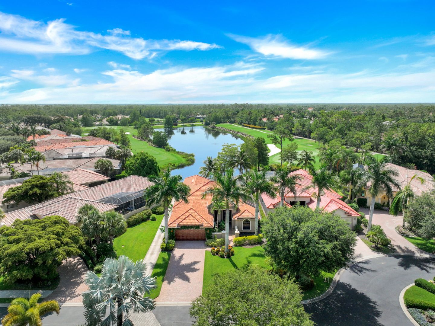 IT'S ALL ABOUT THE VIEW! Located in the upscale gated community of Olde Cypress, this spacious property is nestled on a quaint cul-de-sac street and offers picturesque long lake, golf course, and preserve views with no other homes in sight! This grand floorplan includes 3 bedrooms+den, 3 full baths, oversized 2 car garage (23'x24'), and just over 2800 sq ft under air. From the moment you walk in the door, you are greeted with 12'-13' ceilings throughout, 9' sliding glass doors, spacious rooms, tons of windows, fresh interior paint throughout, and more! NEW ROOF (2020). Enjoy the FL sun around the electric and solar heated pool/spa with ample deck space for entertaining. The kitchen is a chef's dream with center island, double wall ovens, walk in pantry, solid wood cabinetry, and ample counter space. Conveniently located just 1 mile East of I75 and only 12 min to Mercato, 15 min to the Beach, 20 min to Miromar Outlets/Coconut Point/RSW Airport, and 25 min to 5th Ave/Olde Naples. The Club at Olde Cypress offers luxury amenities such as Grande Clubhouse with 2 Restaurants, Social Classes & Events, Pool, Gym, & Tennis Courts. Golf Memberships are available but NOT MANDATORY!