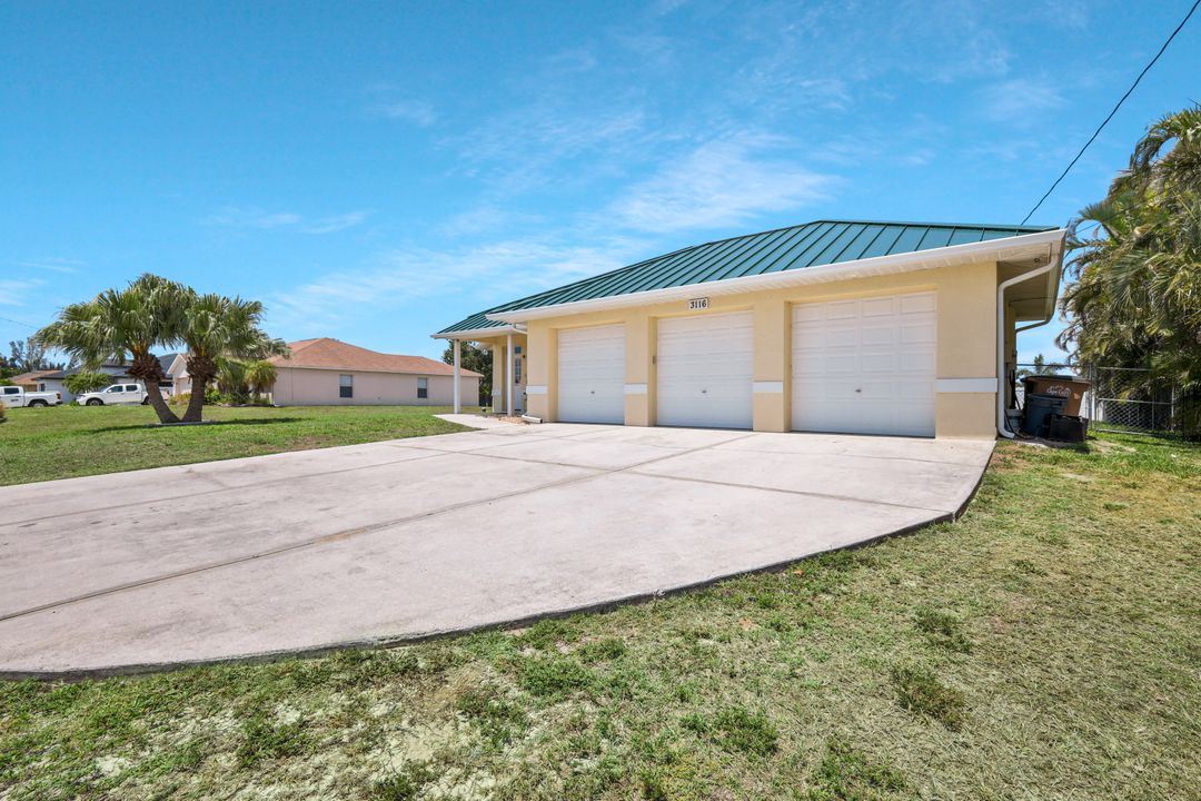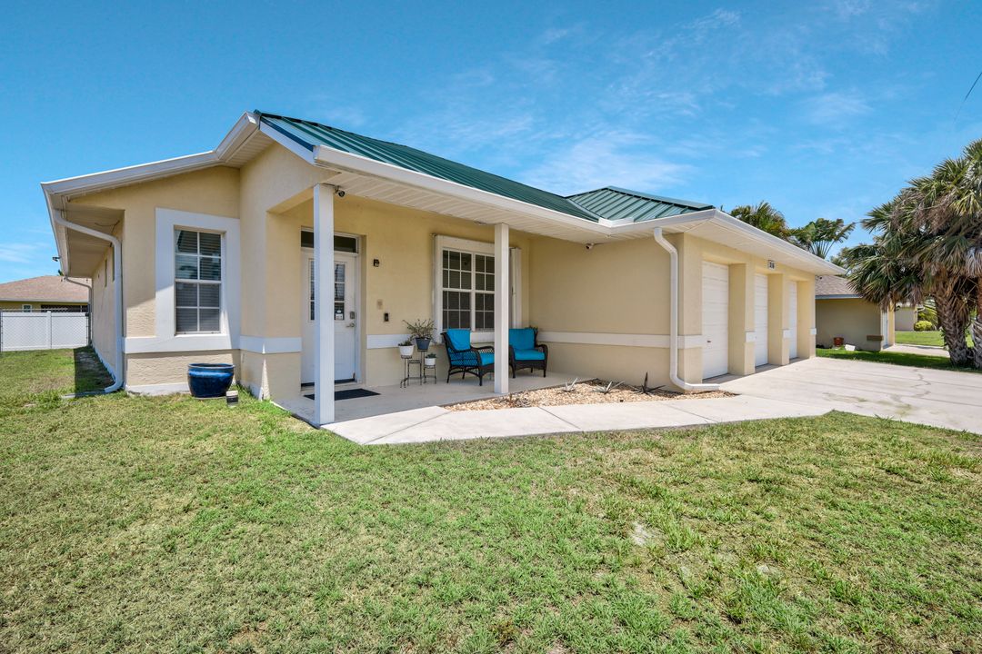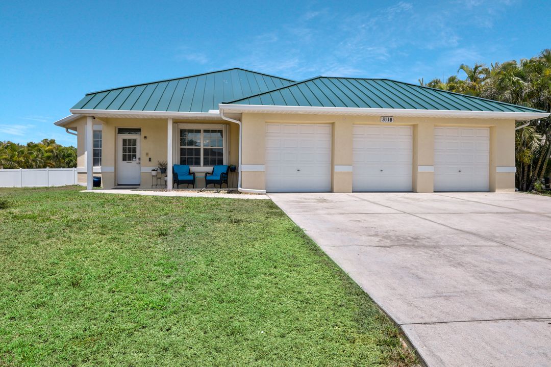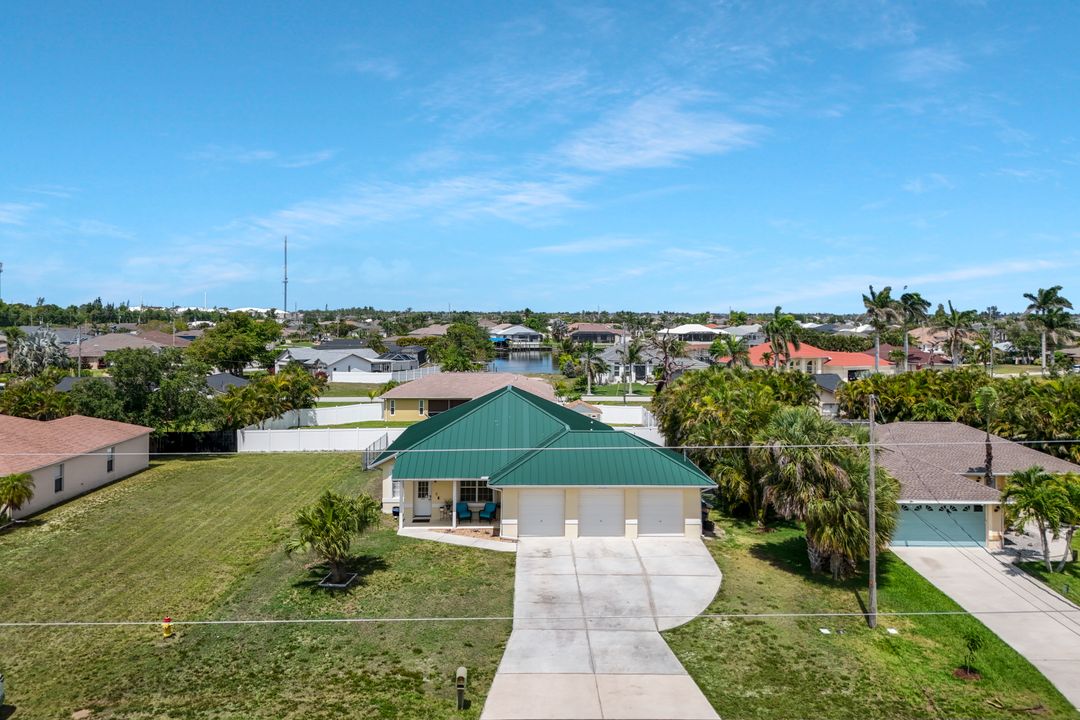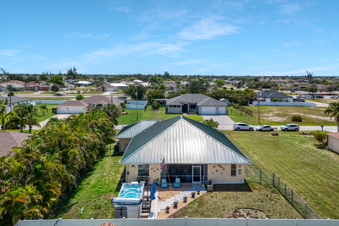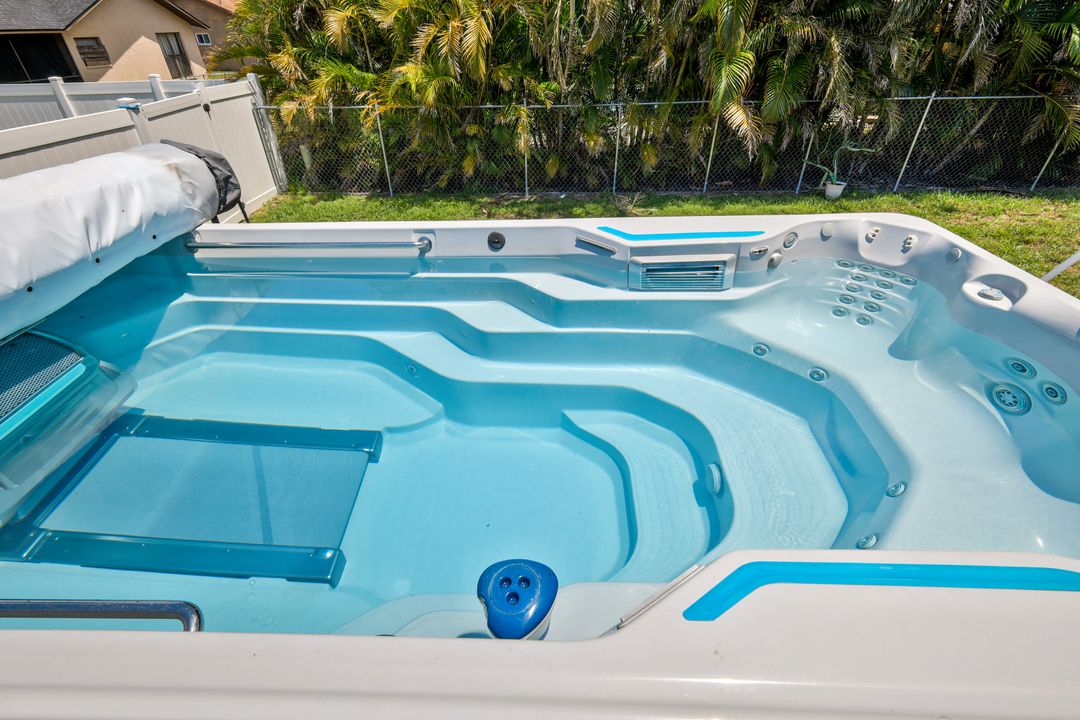 MUST SEE 3-Car Garage Home with Swim Spa! Located in Southwest Cape Coral, this Beautiful and Spacious ICF Constructed Home offers 1,784 sq ft of Living area, 3 Bedrooms, 2 Baths, 3-Car Garage, Heated Swim Spa, and is Move-in Ready. The Large Kitchen is sure to please the Chef of the house with Stainless Steel Appliances, Solid surface Countertops, an Abundance of Cabinets and Counter space, an Island, Breakfast Bar, and Desk. The Fenced Backyard is Ideal for pets and children, and you will Love spending time in your Heated Swim Spa – Perfect for Exercise, Relaxation, and All-season Enjoyment. The Good-sized Owners Suite has a Big Walk-in Closet, Dual Sinks, Nice-sized Walk-in Shower, Water Closet, and Linen Closet. There is Tile throughout and Carpet in the Primary Bedroom. The Guest Bath was Updated in 2024 with a New Vanity and New Toilet. Other Features include a New Metal Roof 2023, New Swim Spa 2022, Water Heater approximately 3 years old, New Plank Tile in Guest Bedrooms 2022, New Carpet in Primary Bedroom 2021, New Fence 2018, Volume Ceilings, Recessed Lighting, Laundry Room with Utility Tub and Extra Pantry, Drop-down Stair access to a Huge Attic with Lots of Storage space, and 2 Garage door springs were Replaced in 2024. The Living room, Family room, All Bedrooms, and Lanai are equipped with Ceiling Fans. Currently, the Dining room is being utilized as an office and the Family room is being utilized as a dining room. Great location close to Dining, Shopping and Beaches, with easy access to Fort Myers, RSW International Airport and the Punta Gorda Airport. This Home has had NO flooding. THIS HOME DOES NOT REQUIRE FLOOD INSURANCE! Make an Offer Today!