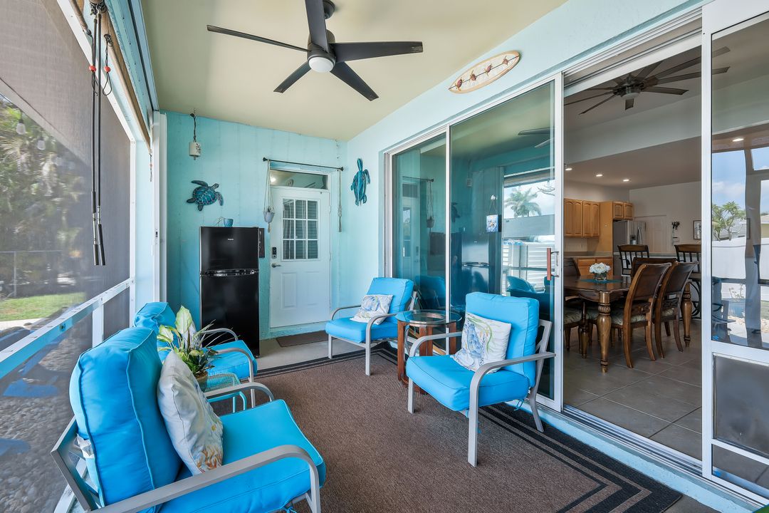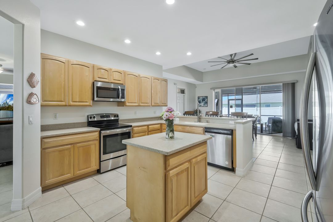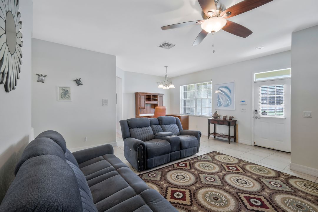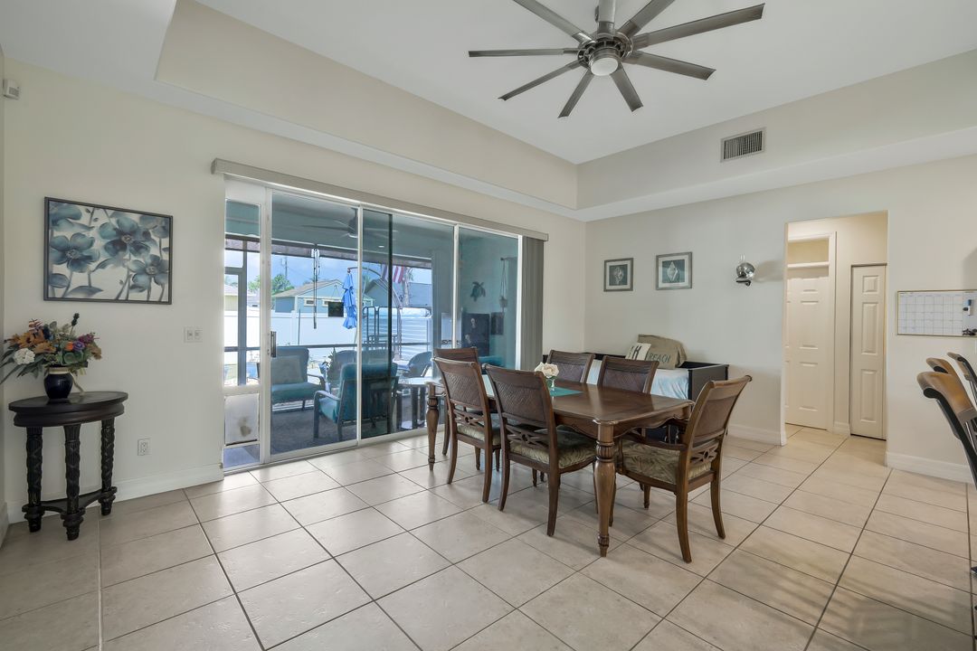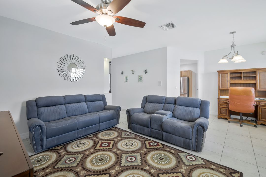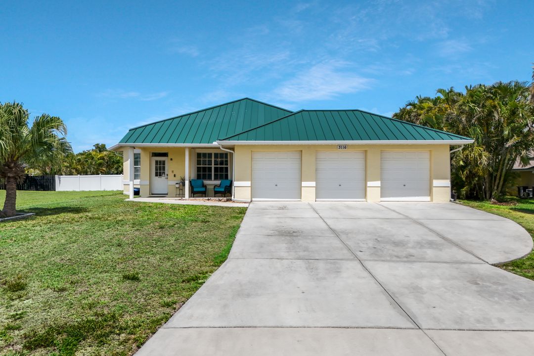MUST SEE 3-Car Garage Home with Swim Spa! Located in Southwest Cape Coral, this Beautiful and Spacious ICF Constructed Home offers 1,784 sq ft of Living area, 3 Bedrooms, 2 Baths, 3-Car Garage, Heated Swim Spa, and is Move-in Ready. The Large Kitchen is sure to please the Chef of the house with Stainless Steel Appliances, Solid surface Countertops, an Abundance of Cabinets and Counter space, an Island, Breakfast Bar, and Desk. The Fenced Backyard is Ideal for pets and children, and you will Love spending time in your Heated Swim Spa – Perfect for Exercise, Relaxation, and All-season Enjoyment. The Good-sized Owners Suite has a Big Walk-in Closet, Dual Sinks, Nice-sized Walk-in Shower, Water Closet, and Linen Closet. There is Tile throughout and Carpet in the Primary Bedroom. The Guest Bath was Updated in 2024 with a New Vanity and New Toilet. Other Features include a New Metal Roof 2023, New Swim Spa 2022, Water Heater approximately 3 years old, New Plank Tile in Guest Bedrooms 2022, New Carpet in Primary Bedroom 2021, New Fence 2018, Volume Ceilings, Recessed Lighting, Laundry Room with Utility Tub and Extra Pantry, Drop-down Stair access to a Huge Attic with Lots of Storage space, and 2 Garage door springs were Replaced in 2024. The Living room, Family room, All Bedrooms, and Lanai are equipped with Ceiling Fans. Currently, the Dining room is being utilized as an office and the Family room is being utilized as a dining room. Great location close to Dining, Shopping and Beaches, with easy access to Fort Myers, RSW International Airport and the Punta Gorda Airport. This Home has had NO flooding. THIS HOME DOES NOT REQUIRE FLOOD INSURANCE! Make an Offer Today!