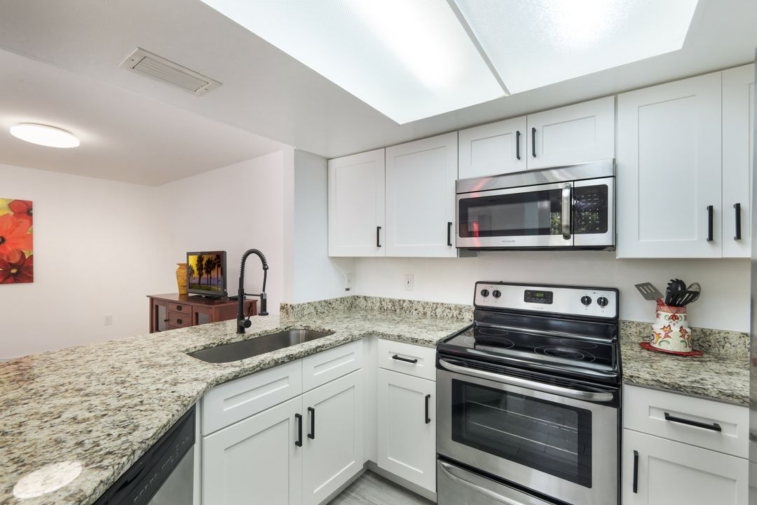 Welcome to the amenity rich community of Fountain Lakes! Meticulously maintained, first floor unit offers 1BR, 1BA, an assigned parking space & offered TURNKEY. Step inside to discover an inviting living space adorned with tile flooring that flows seamlessly throughout, enhancing the sense of an open floor plan! The kitchen is equipped with granite countertops, stainless steel appliances & a breakfast bar. The spacious master suite has a large closet & sliders to the outdoor living area. Experience and enjoy the comfort of indoor-outdoor living on your screened-in lanai. Whether you're sipping your morning coffee, or watching the most beautiful sunrises that SWFL has to offer, this versatile space offers the perfect backdrop for relaxation! Fountain Lakes is an active community with a 9 Hole Private Bundled Golf Course & putting green, tennis, pickleball, Bocce, shuffleboard, community pools & spa, playground, walking paths and so much more- with LOW HOA FEES! Conveniently located across the street from Coconut Point Mall, and just a short drive to Miramar Outlets, Mercato, Southwest Florida International Airport, FGCU, I-75, Shopping & Dining! Experience the Florida lifestyle like never before in this captivating condo, where every day feels like a vacation. Call to schedule your private viewing today!
