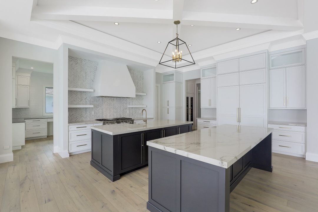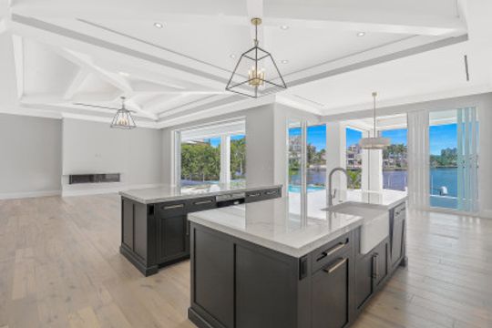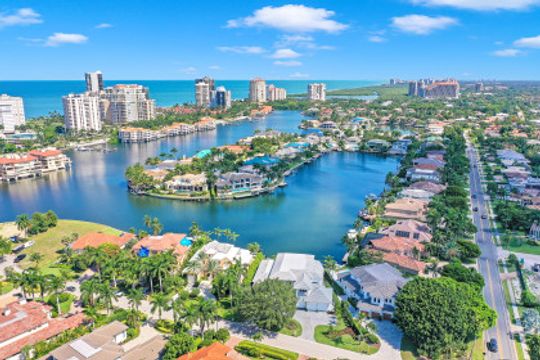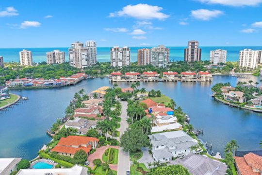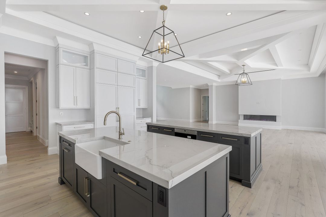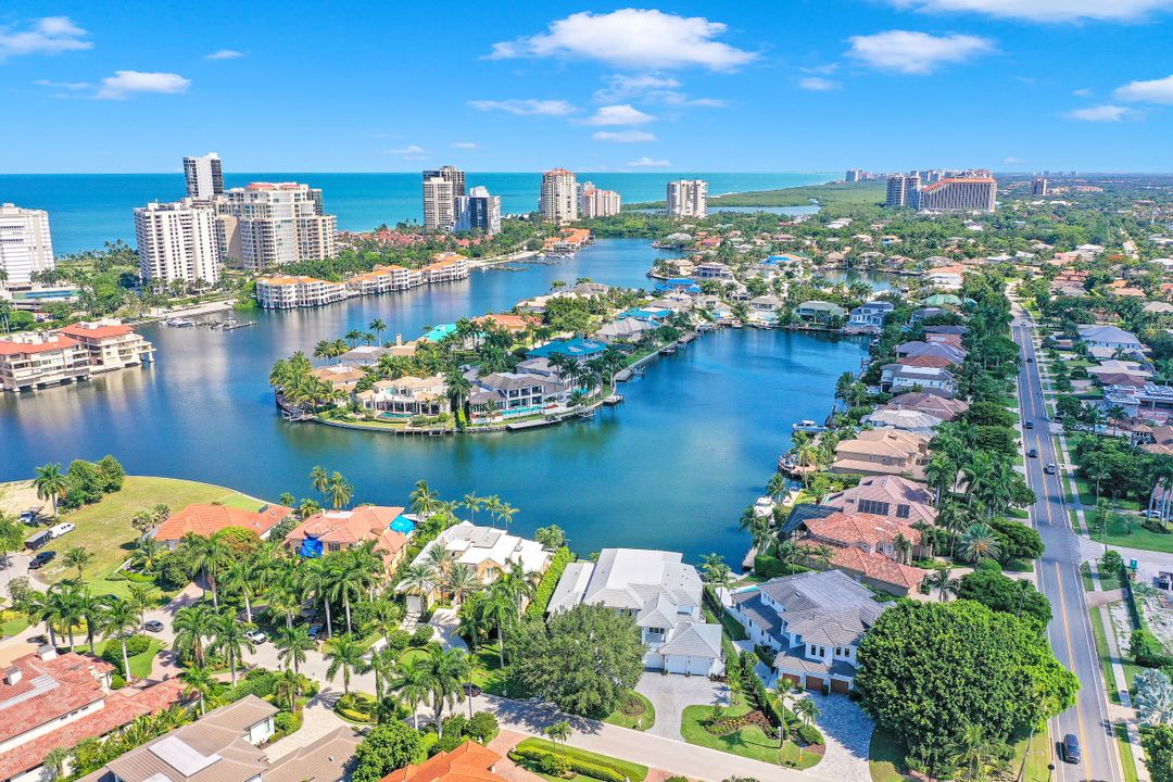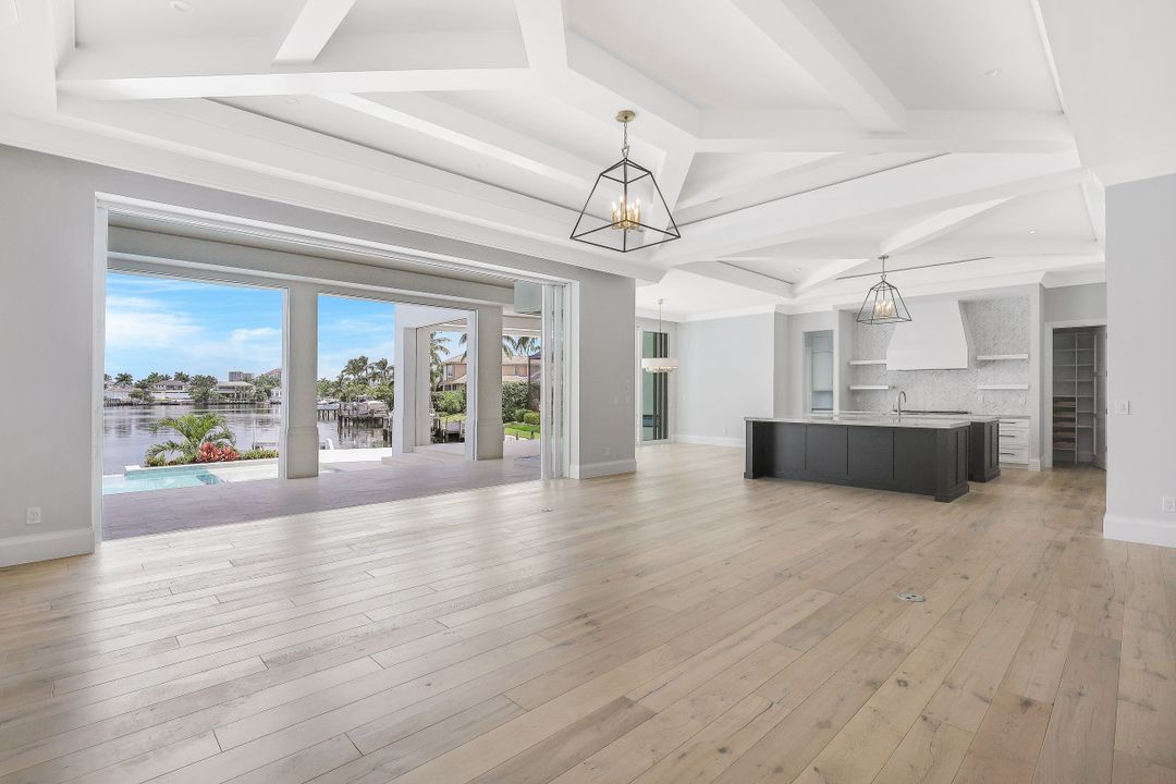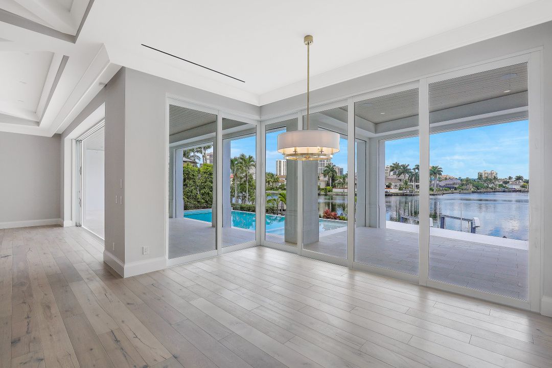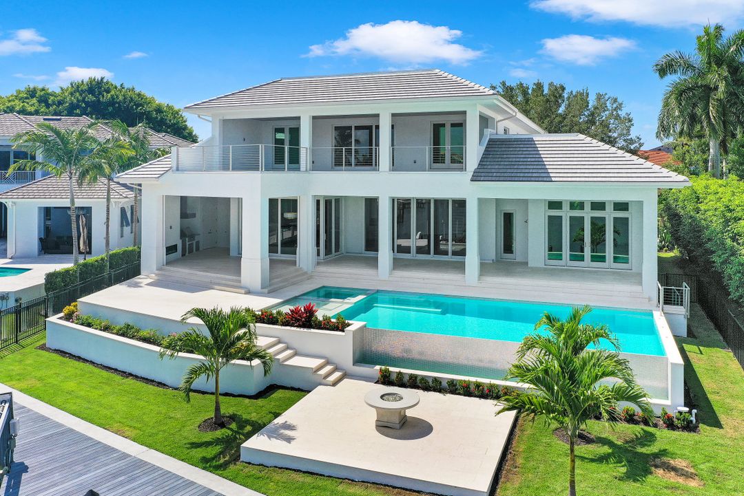 This Spectacular New Construction, Bay front Property welcomes you with breathtaking views & with the shortest walking distances to both Venetian village & Park shore private beach. This property presents an expansive open great room floor plan, flowing gracefully from one engaging space to another. The gourmet kitchen with oversized island offers top of the line appliances, Sub Zero-Miele-Wolff, will inspire your inner chef. Separate catering kitchen,Elevator, Smart home technology,3 car garage & 1000 Gallon propane tank. The crystal blue waters can be seen from nearly every room in the home. Owners can retreat to the generous master suite & Spa- like bath at the end of the day while their guest will enjoy their own private space on the 2nd level, which offers a second wet bar, sun deck & balcony. Generous pocket sliding doors open to the generous outdoor area showcasing a dramatic, negative-edge pool and spa, outdoor kitchen, fire pit, dining and lounging areas, affording the ideal retreat and entertainment area. Builder: T.B.Price Construction Architect: Boyatt Design, Designer: Linen Coast Interiors. Home is nearly Complete, Estimated July 2020
