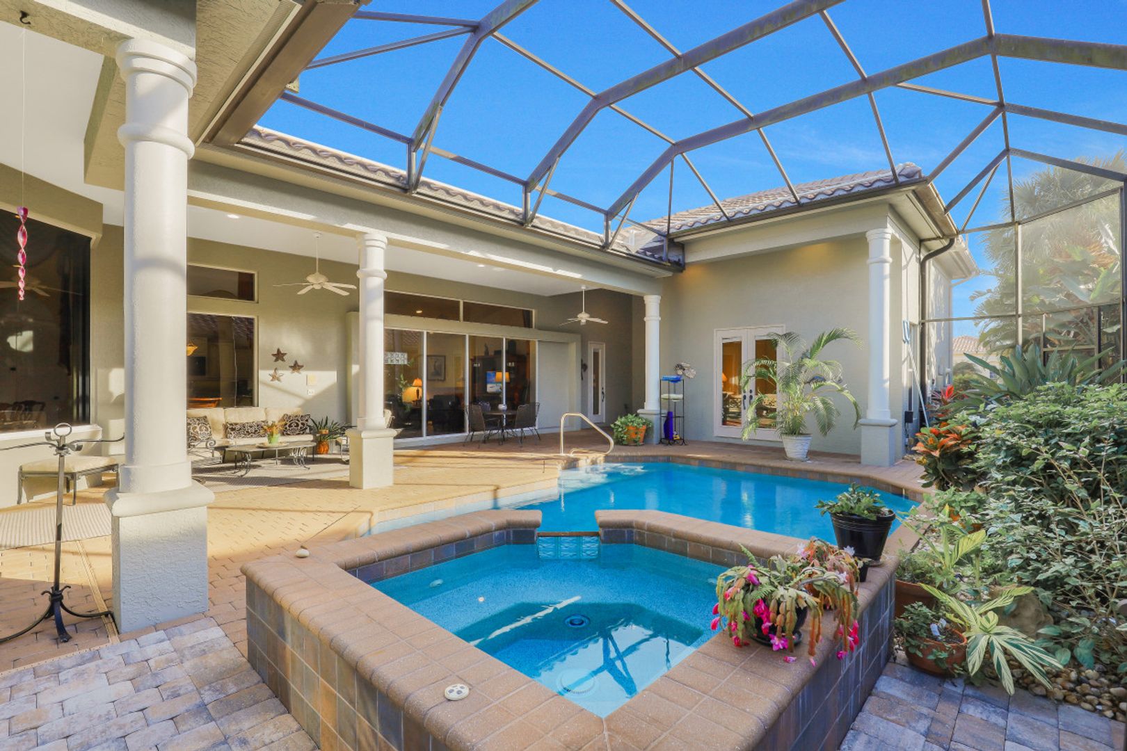 THIS HOME is not just about liking the home when you are Buying, THIS one is about LOVING this home when you are LIVING in it. EXPANDED Cadiz model, custom designed by an engineer and meticulously cared for courtyard home. Three car, side loading garage. Pool on the West side of the home and a lanai cage that is newly screened, over 4,000 sf and wraps completely around the courtyard and the golf course view of the home. Rear cage with panoramic screen is much larger and deeper than the typical Cadiz model. True comforts of home is when attention to every detail is in the well-conceived design, such as instant hot water, wifi connectivity whether you are in the Cabana or the far reaches of the lanai. Independent sprinkler system for the courtyard landscaping. Exterior lighting. Inside, each bedroom is in its own private area of the home. Great room, master bedroom, and cabana all are extended in size. Rare kitchen pantry for this model too. New flooring in the master and guest room, and Lutron lighting throughout. Newly painted interior and exterior. Cabana has very large storage space.
