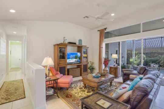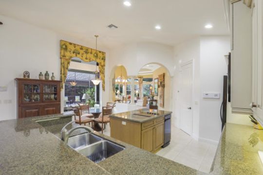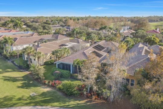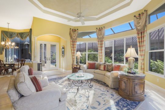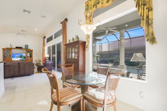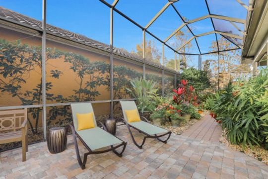 THIS HOME is not just about liking the home when you are Buying, THIS one is about LOVING this home when you are LIVING in it. EXPANDED Cadiz model, custom designed by an engineer and meticulously cared for courtyard home. Three car, side loading garage. Pool on the West side of the home and a lanai cage that is newly screened, over 4,000 sf and wraps completely around the courtyard and the golf course view of the home. Rear cage with panoramic screen is much larger and deeper than the typical Cadiz model. True comforts of home is when attention to every detail is in the well-conceived design, such as instant hot water, wifi connectivity whether you are in the Cabana or the far reaches of the lanai. Independent sprinkler system for the courtyard landscaping. Exterior lighting. Inside, each bedroom is in its own private area of the home. Great room, master bedroom, and cabana all are extended in size. Rare kitchen pantry for this model too. New flooring in the master and guest room, and Lutron lighting throughout. Newly painted interior and exterior. Cabana has very large storage space.