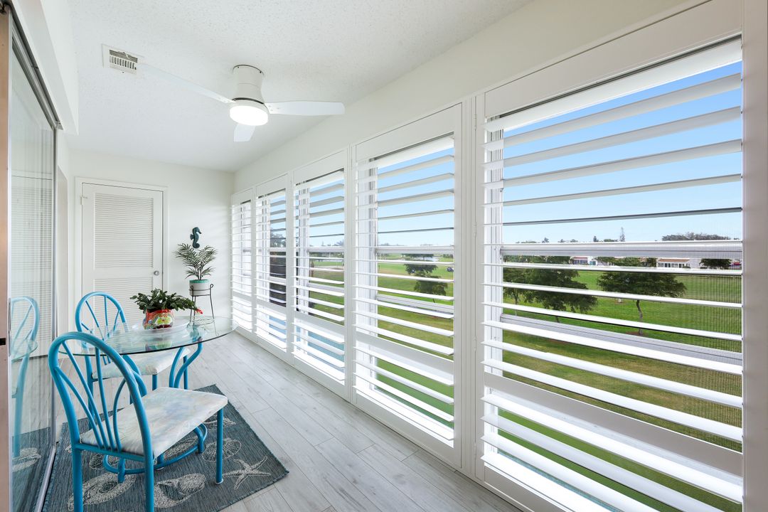 Enjoy tranquil golf course views and contemporary coastal style from this updated top-floor residence. Situated in Vista Palms, a vibrant 55-plus community between downtown Naples and Marco Island, this two-bedroom, two-bath home blends comfort with thoughtful design. Step inside to find engineered wood floors throughout, plantation shutters, and a bright, functional kitchen. Both baths have been fully renovated— featuring a walk-in shower with a folding seat designed for ease and security. A spacious Florida room offers panoramic vistas of the manicured greens, perfect for hosting guests or unwinding at the end of the day. Additional highlights include in-residence laundry, high-impact windows for added peace of mind, and a deeded covered parking space with extra storage. Vista Palms provides a dynamic range of amenities: a heated pool, shuffleboard courts, barbecue area, and a clubhouse offering cards, billiards, a TV lounge, and a curated library. With convenient access to white-sand beaches, upscale dining, and world-class shopping, this residence offers a compelling opportunity to enjoy the Naples lifestyle.