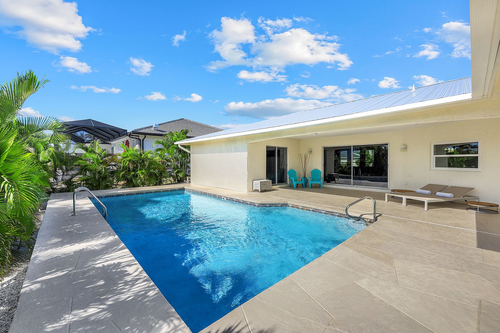 LOOKING FOR AN INVITING SW EXPOSURE MARCO ISLAND HOME - WITH 2558AC AND 4 BEDROOMS, 3 UPDATED BATHS, QUICK WATER DIRECT, SWEEPING CIRCULAR DRIVEWAY and OVERSIZE 100’ X 110’ PARCEL? Come tour "SHELL BEACH” a rambling reinvented MINIMALIST coastal ranch home – step into the large foyer and marvel at the expanse of the light and bright living room for entertaining and lounging. Need more entertainment space - overflow to the equally generous size family room. The up-to-date kitchen and dining area overlooks the expansive lanai, pool and beyond. Generous laundry room. The 2-car garage is enhanced with a 2018 hurricane rated garage door. 2021 NEW SEAWALL WITH OVERSIZE CAP, NEW TIE BACKS and ADDITIONAL PILINGS. COMPLETED 2023 DOCK WITH INTEGRATED STEP-DOWN KAYAK LAUNCH AND 7,000 LB ALL ALUMINUM GEAR DRIVEN LIFT. 2018 Metal roof with secondary water barrier was upgraded WITH additional roof attachment clips in attic added in 2023. A/C all ducts replaced in 2021. 4PT INSPECTION IN PLACE completed 2023. And this is not the entire list of upgrading and care this home has experienced. The home is being offered well-furnished - bring your toothbrush!! Welcome Home to PARADISE!!